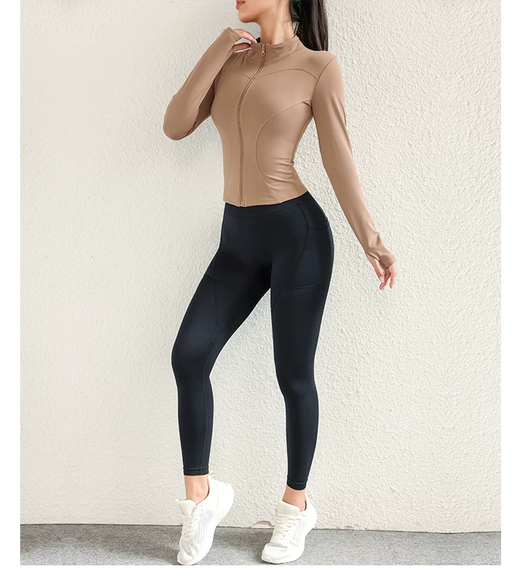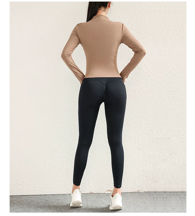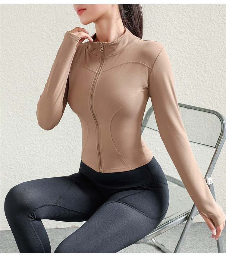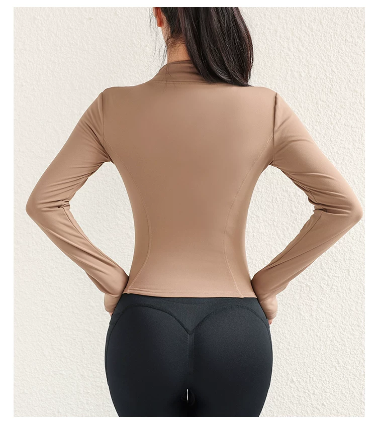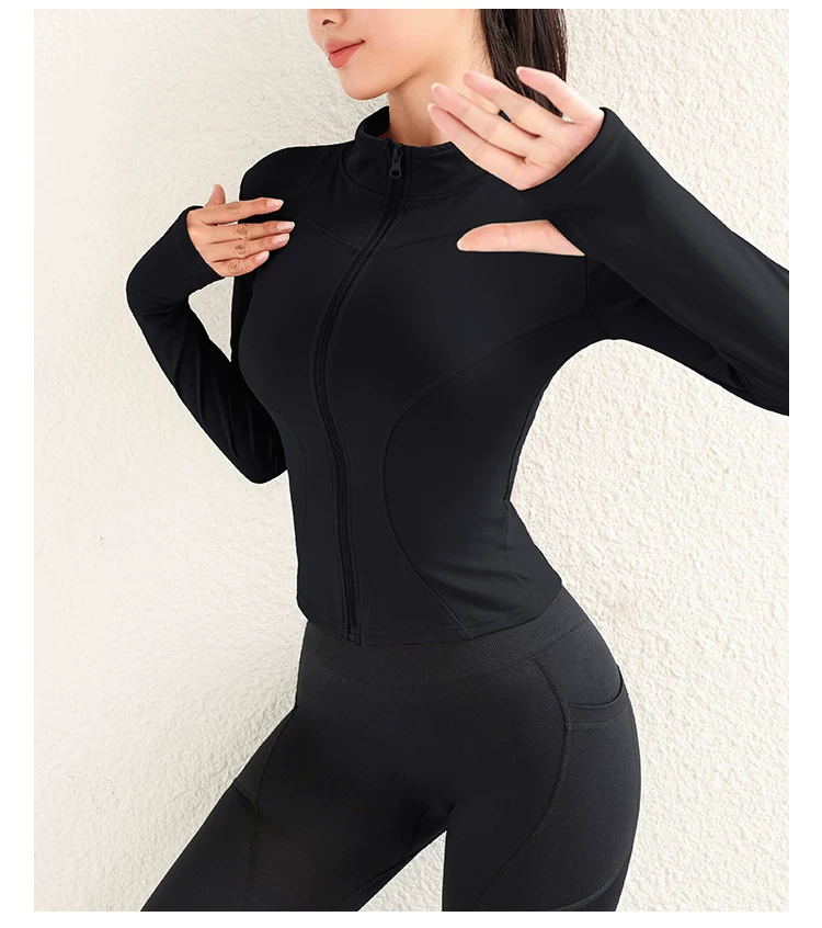 Áo khoác thể thao lót lông cừu, áo cổ đứng ôm sát, áo tập luyện thể thao chất liệu lông cừu mỏng dày dặn, áo dài tay nhanh khô mùa thu đông.