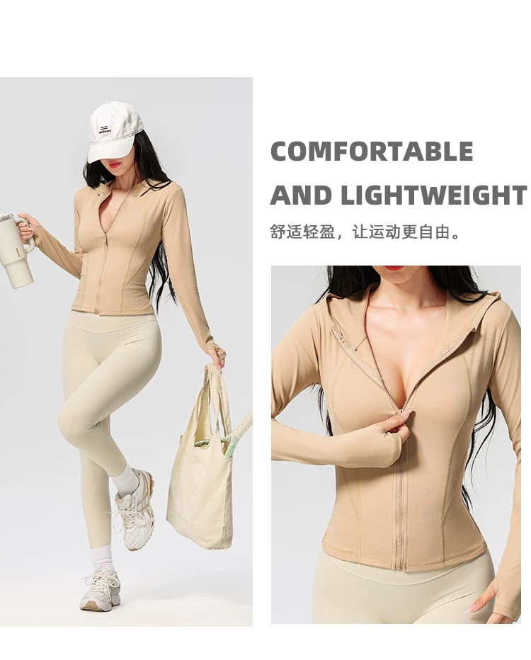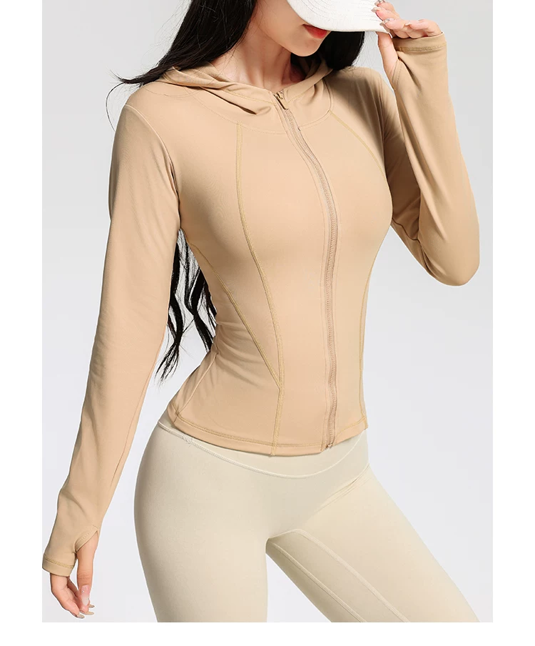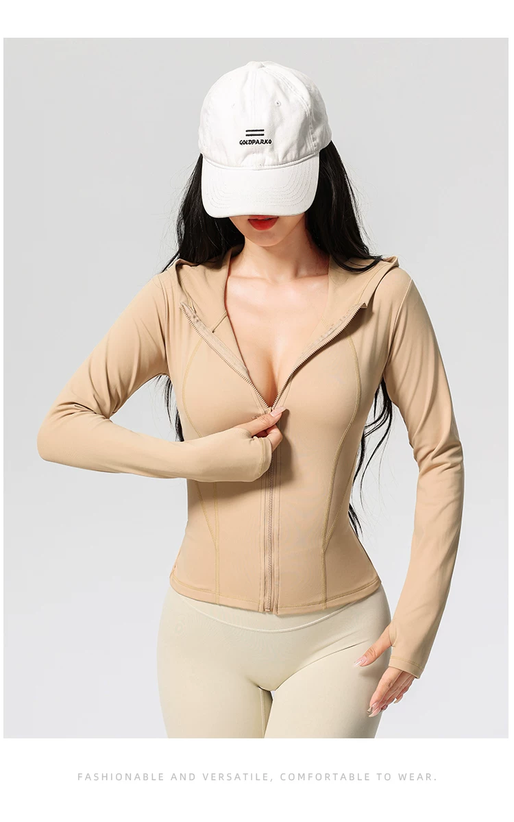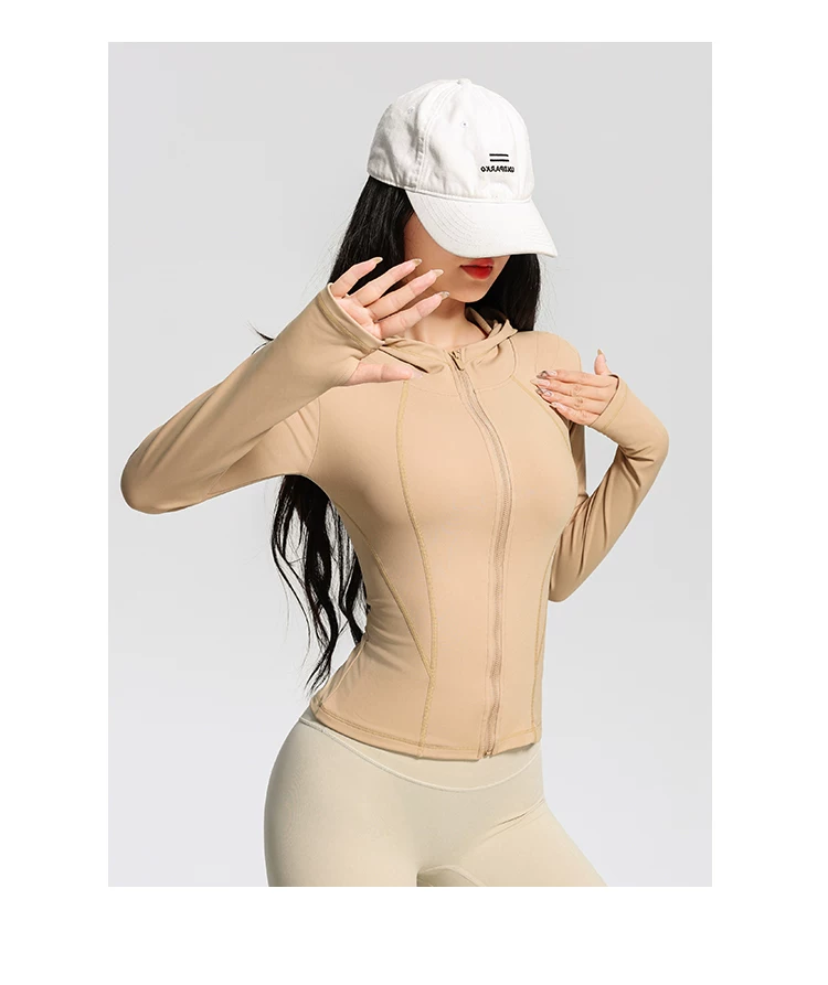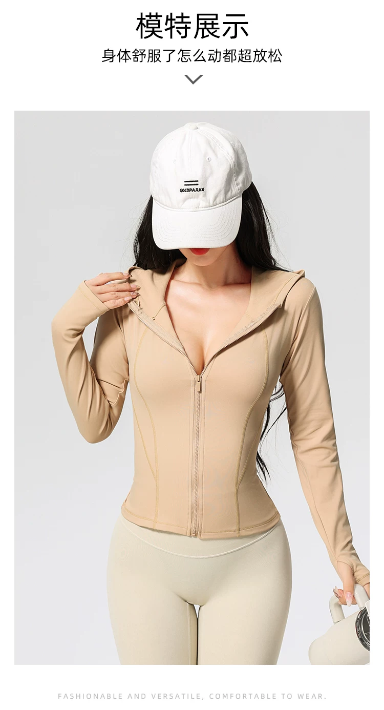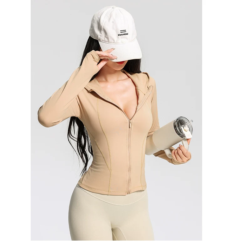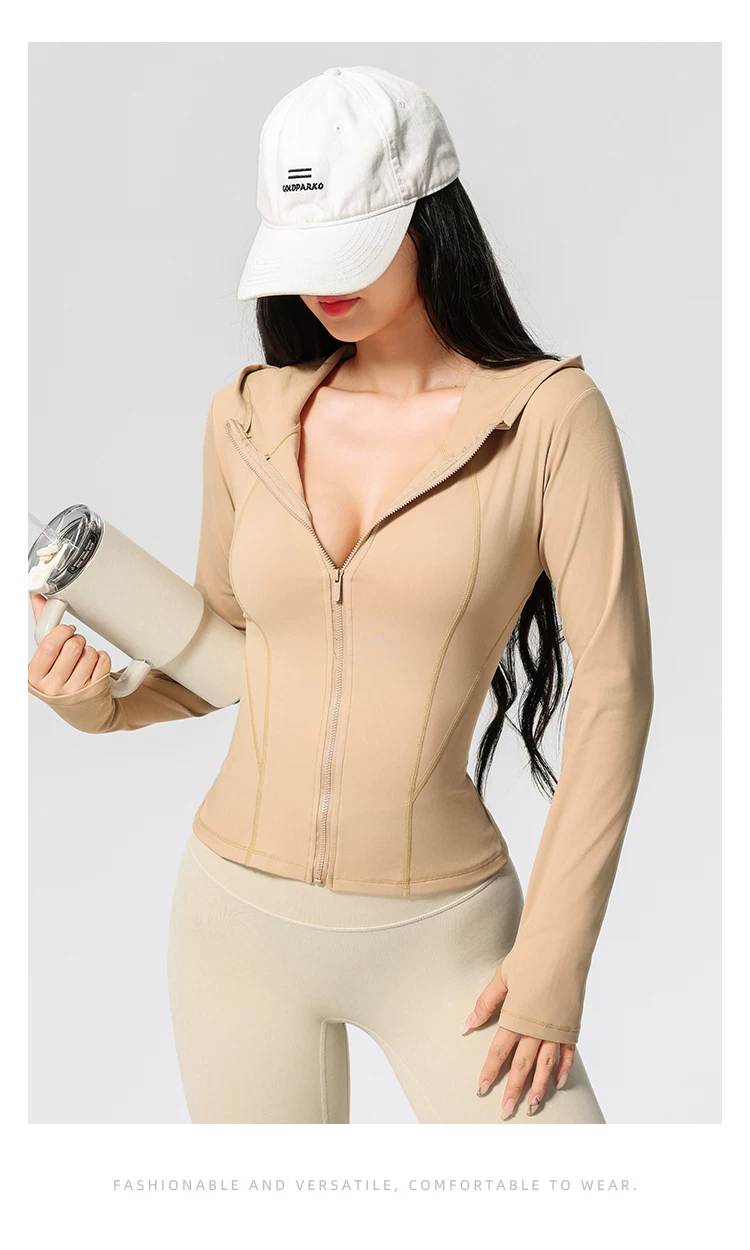 Áo khoác thể thao nhung mỏng dành cho nữ, trang phục tập yoga, áo khoác chạy bộ lót lông cừu tập thể dục, áo khoác dài tay mùa thu đông, áo có mũ trùm đầu tập luyện ngoài trời