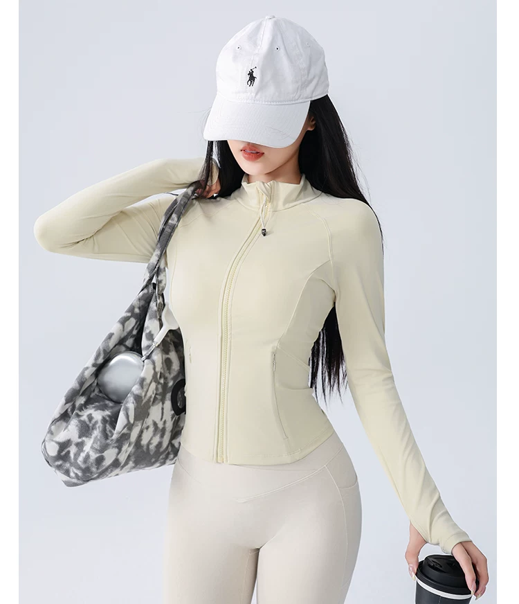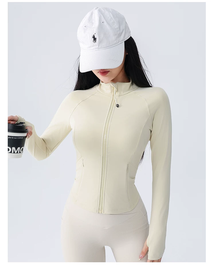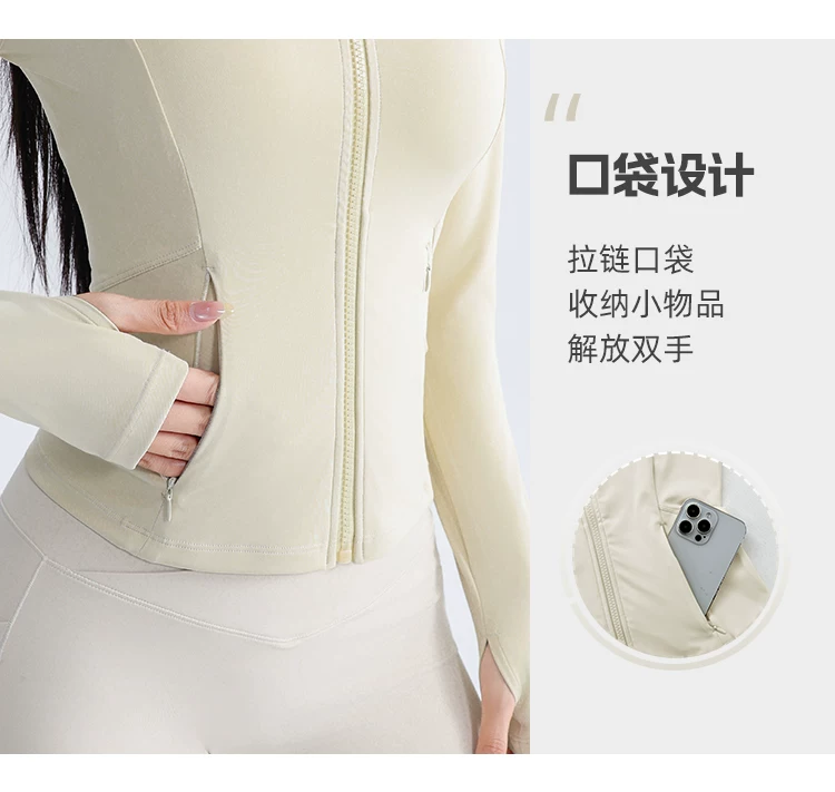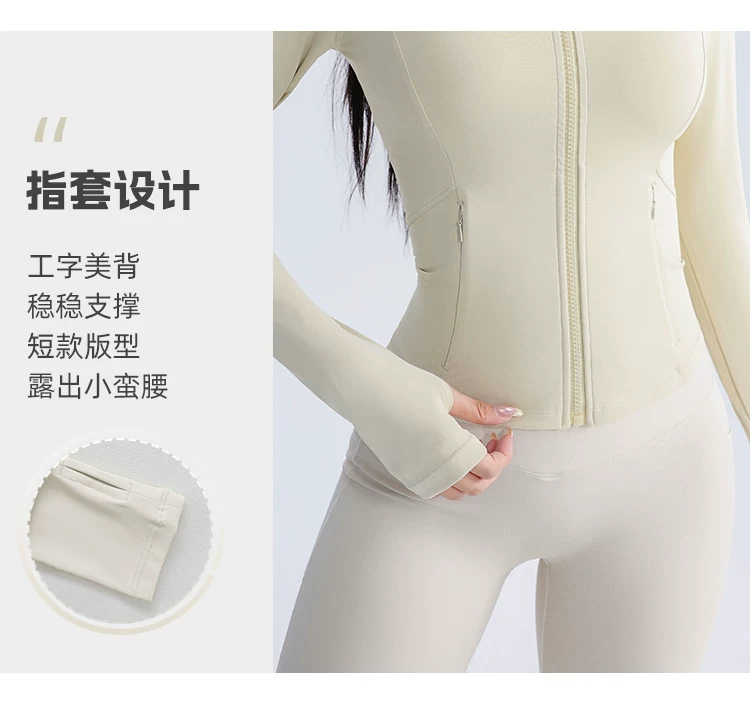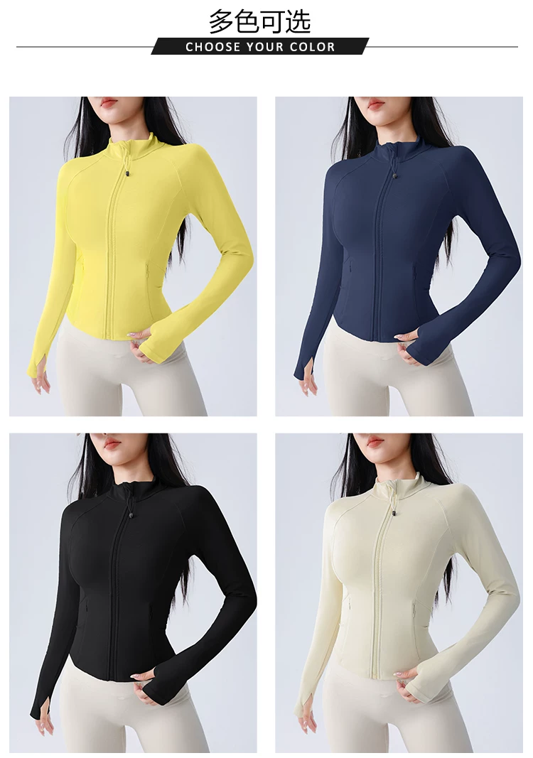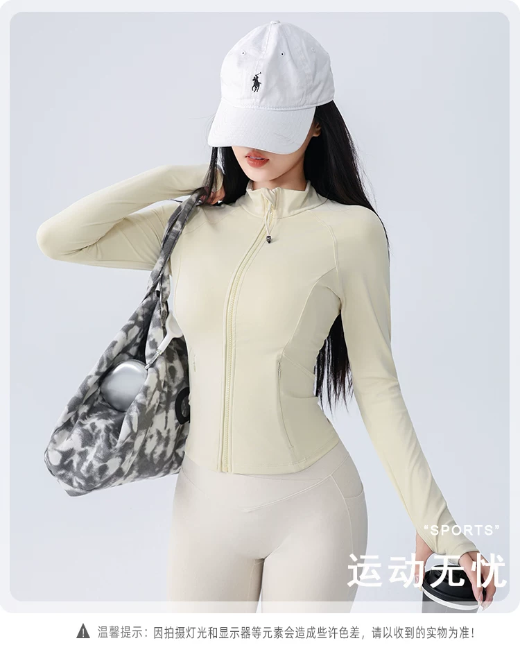 Áo khoác thể thao yoga Jiumai Yipin dành cho nữ, trang phục tập thể dục bó sát, tay dài, chạy bộ mùa thu đông, áo khoác ngoài nhanh khô