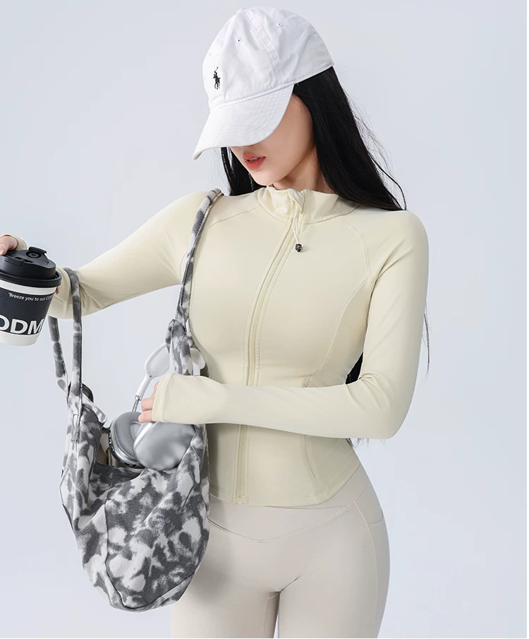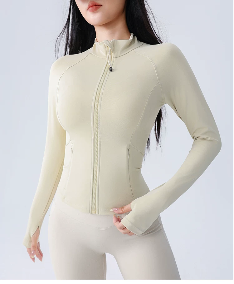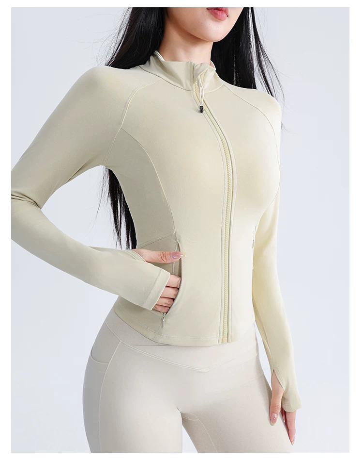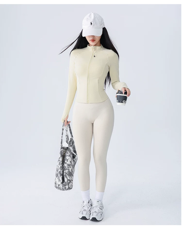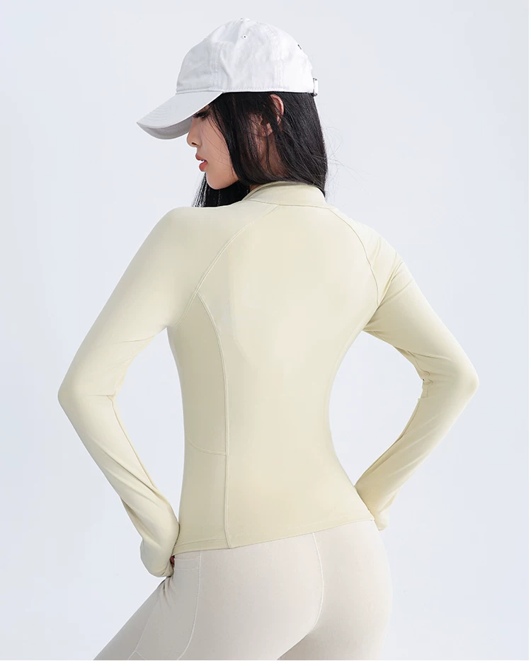 Áo khoác thể thao yoga Jiumai Yipin dành cho nữ, trang phục tập thể dục bó sát, tay dài, chạy bộ mùa thu đông, áo khoác ngoài nhanh khô