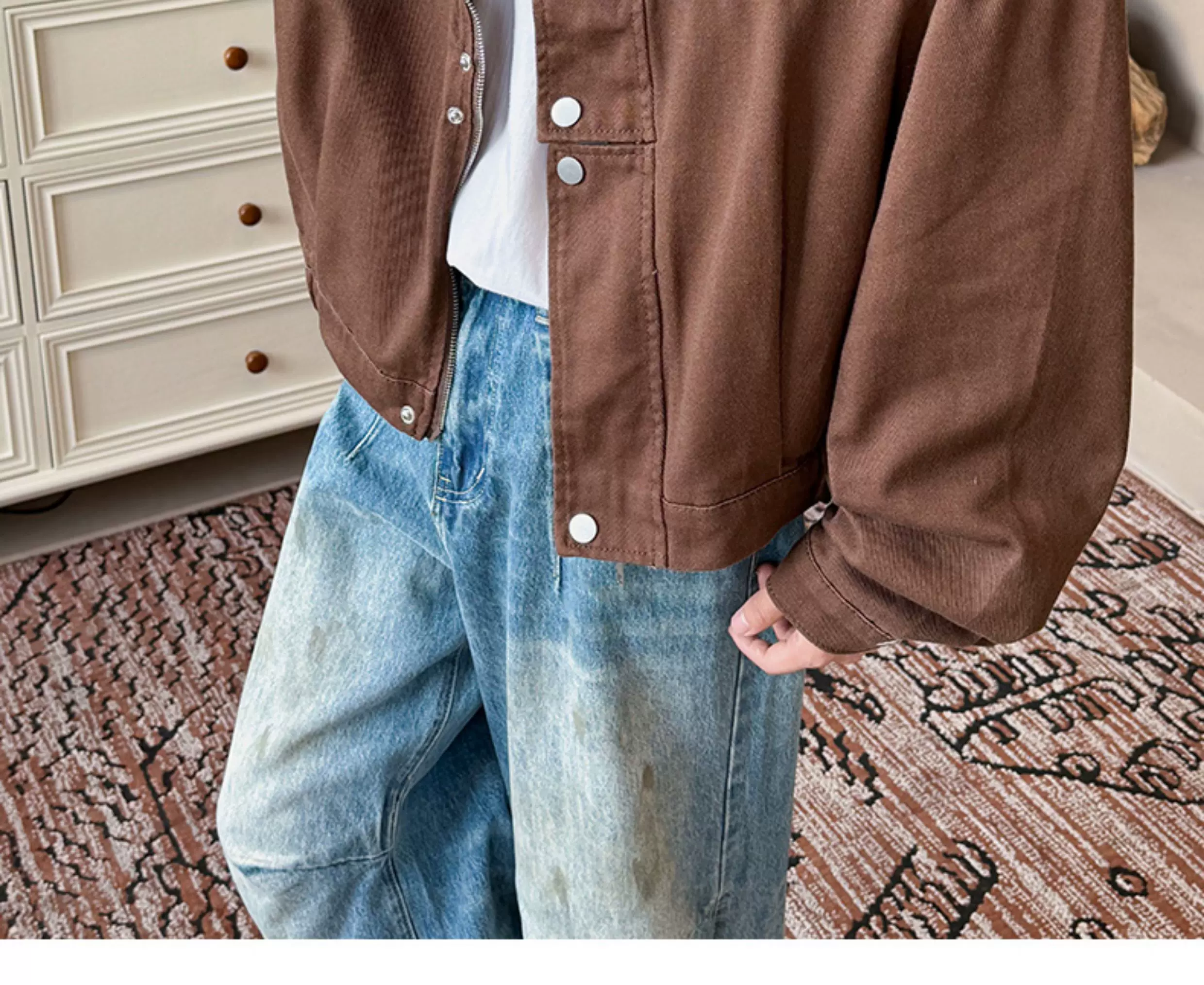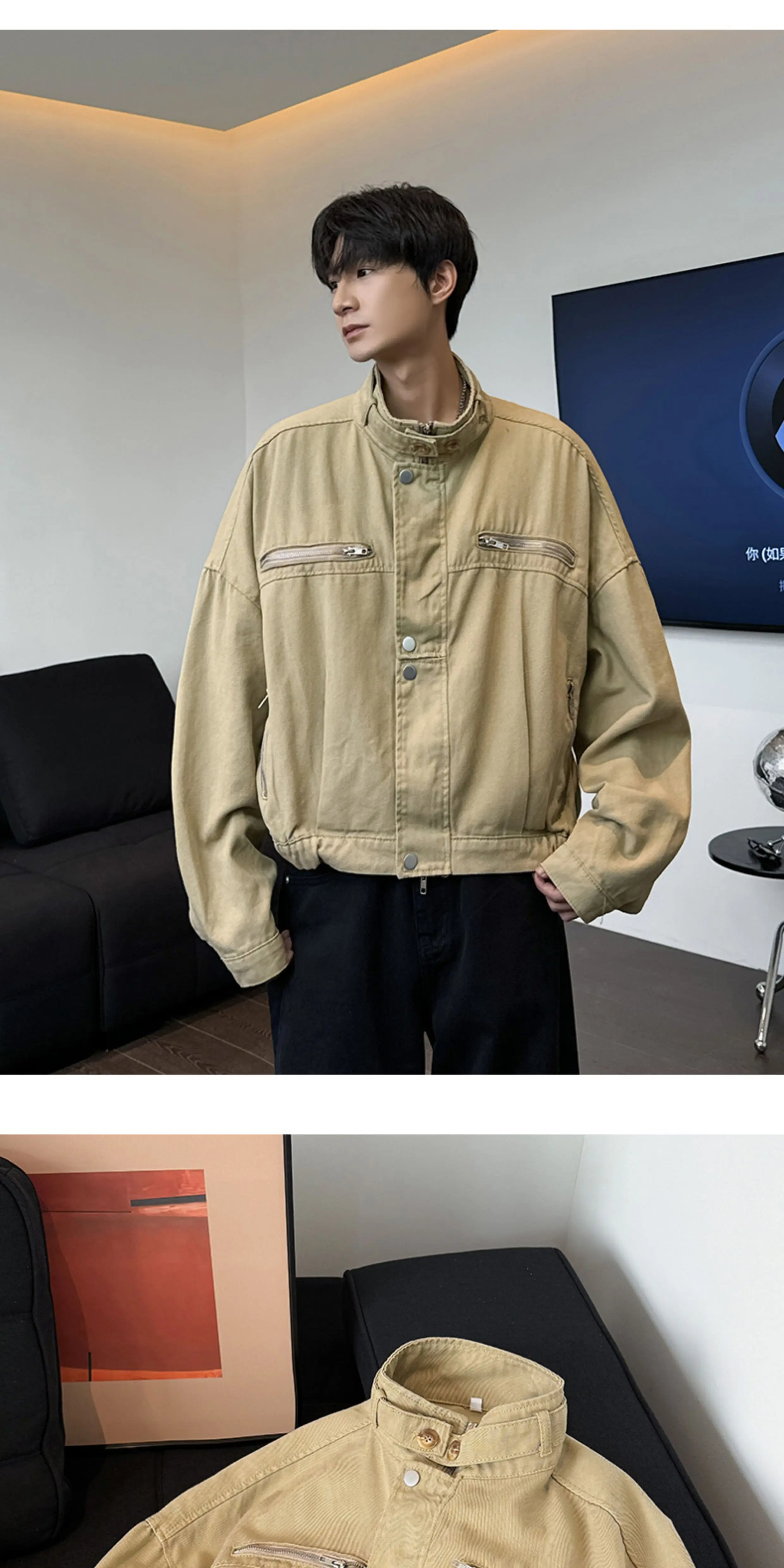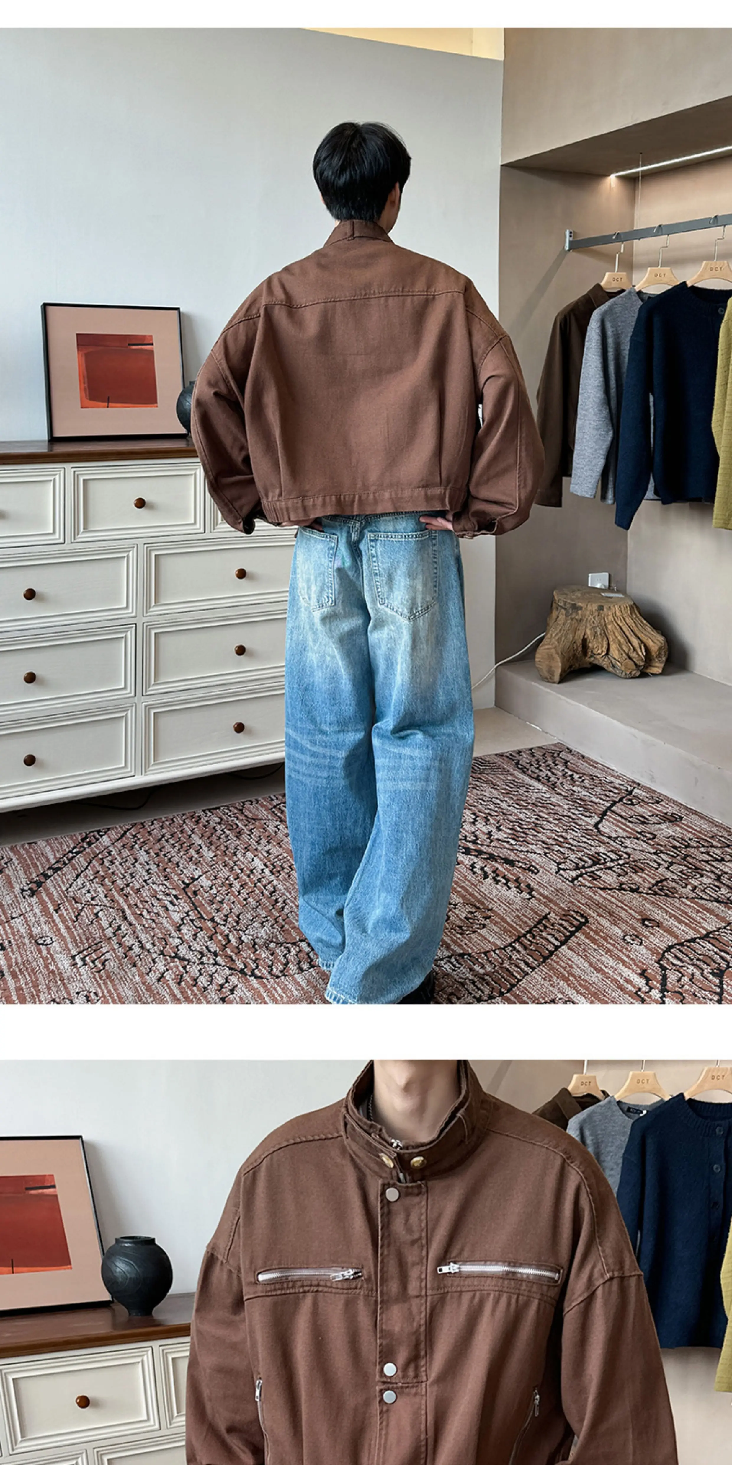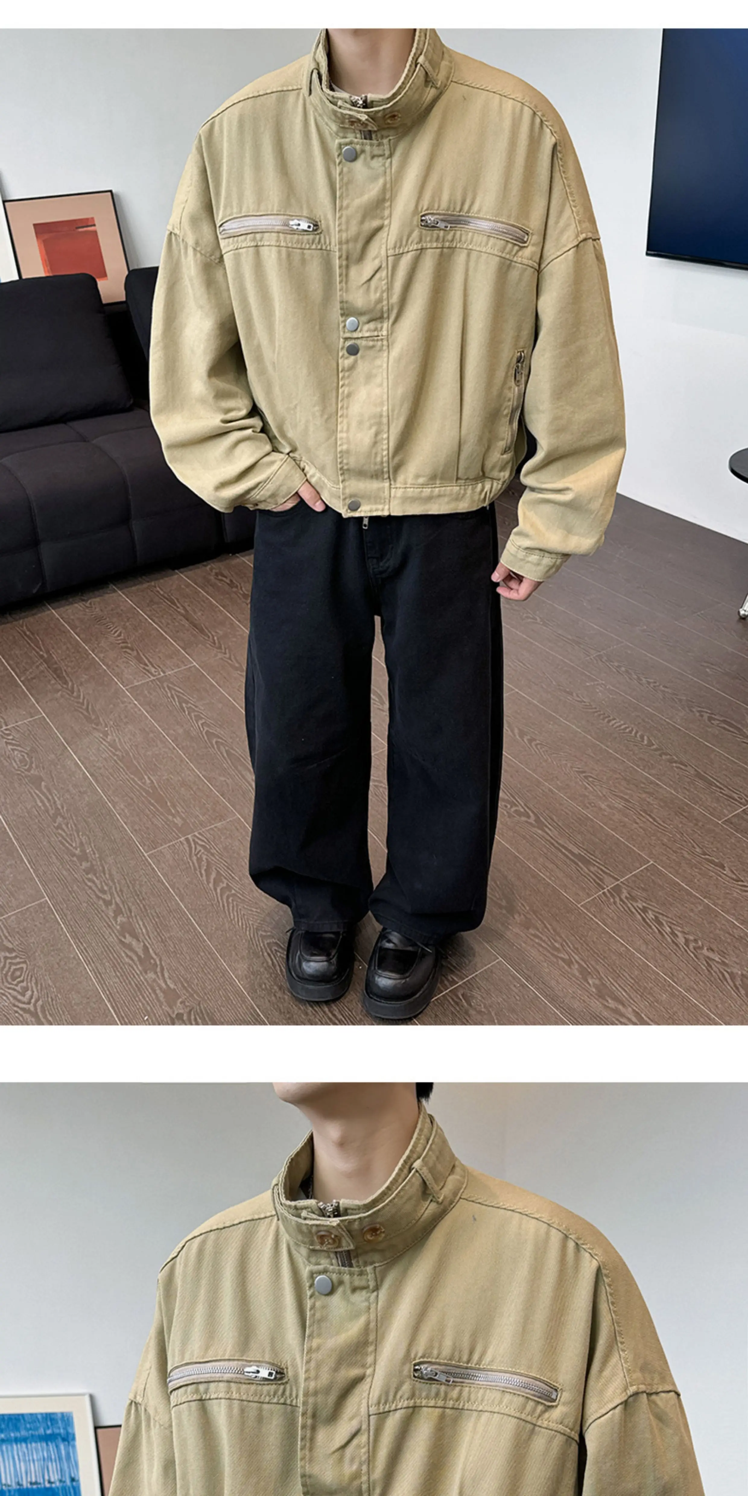 - Áo khoác workwear nam kiểu Mỹ cổ điển, phong cách retro, chất liệu dày dặn, dáng rộng, thời trang thu đông, kiểu biker ngắn.