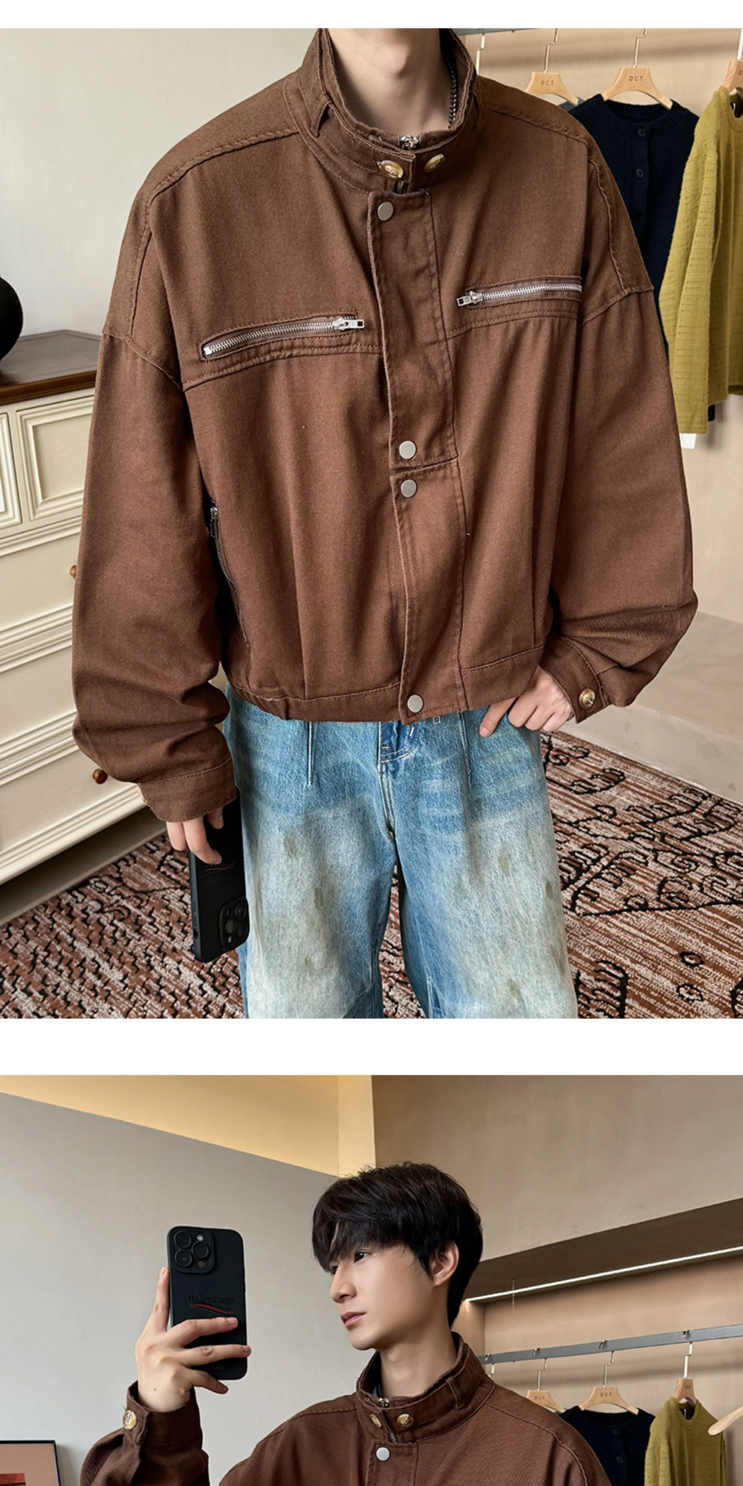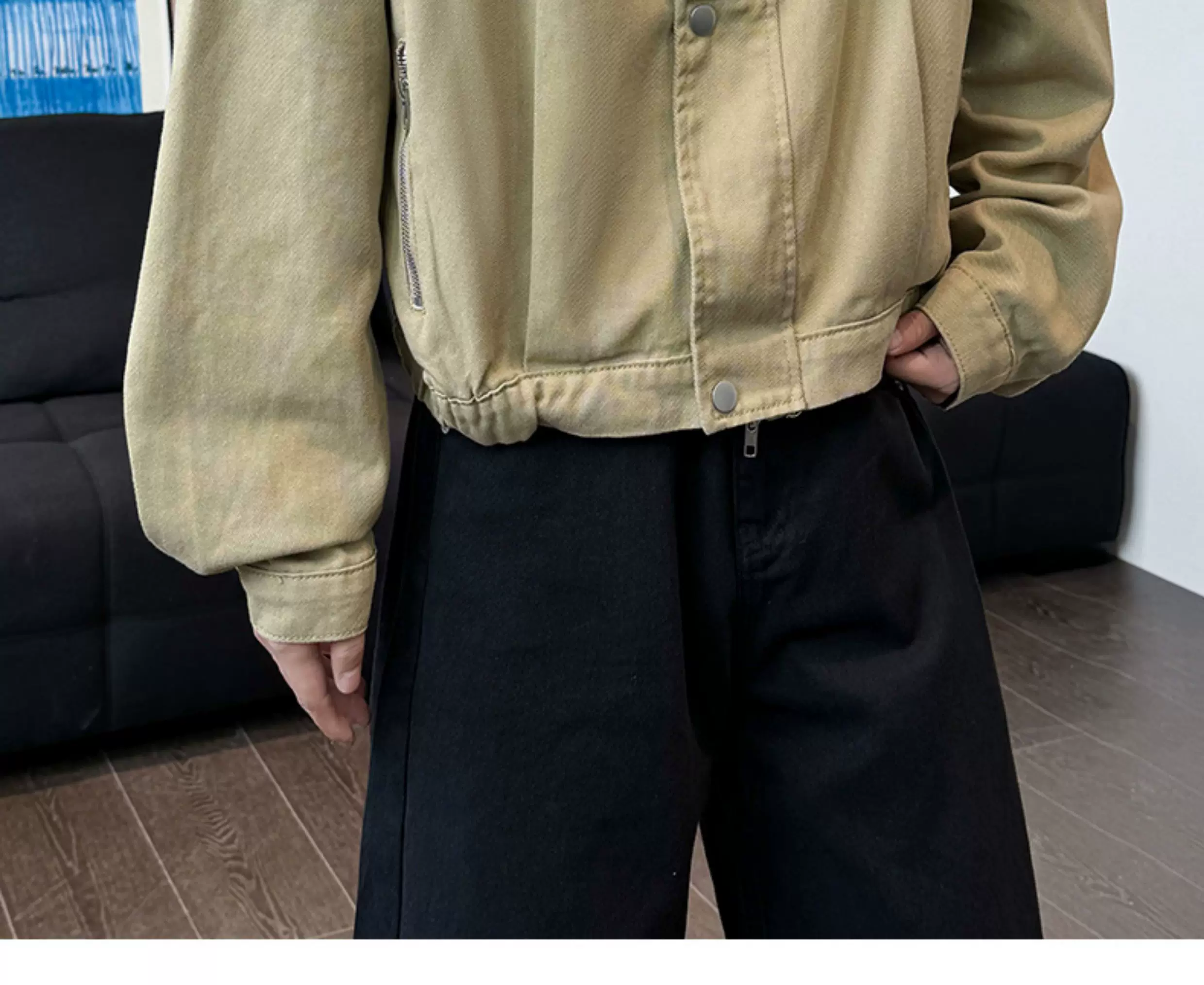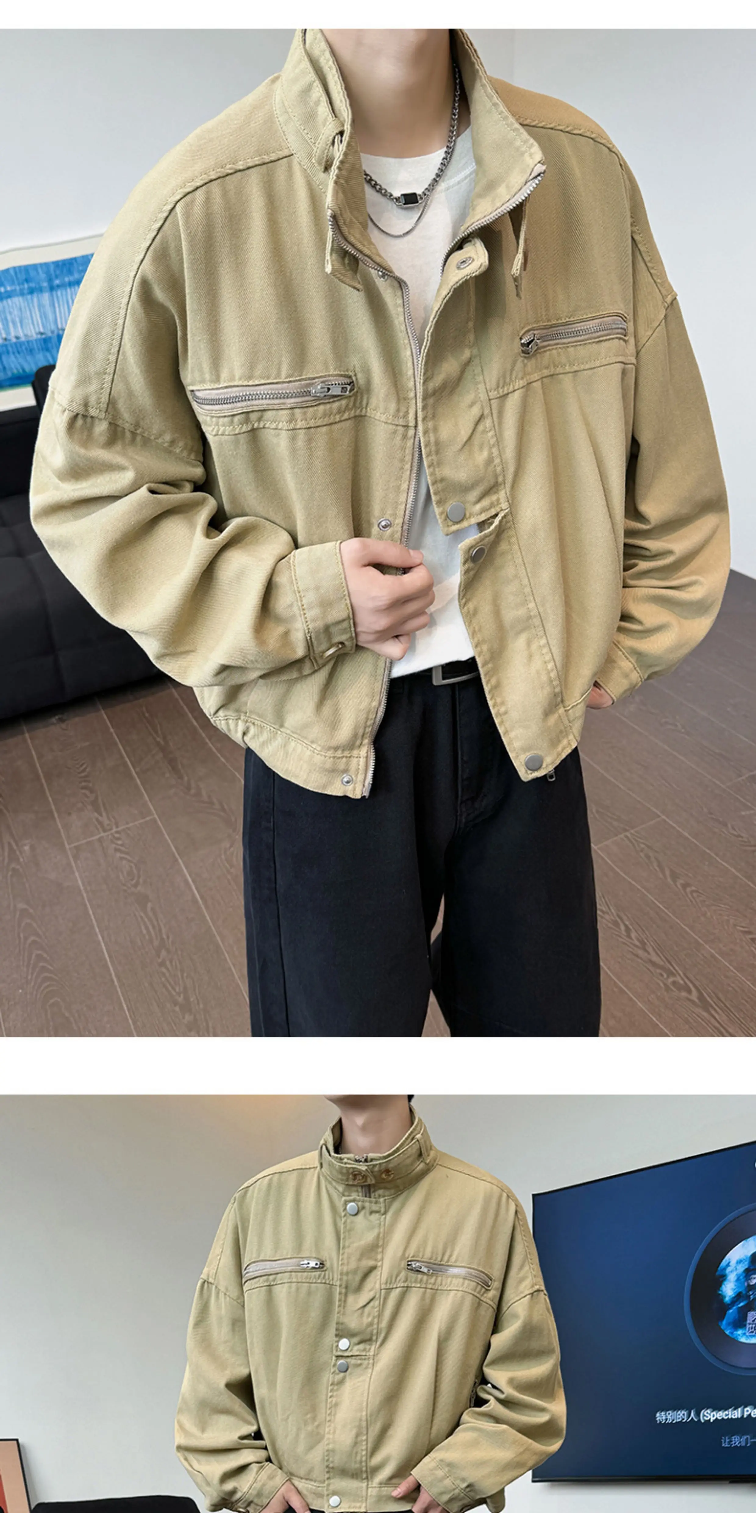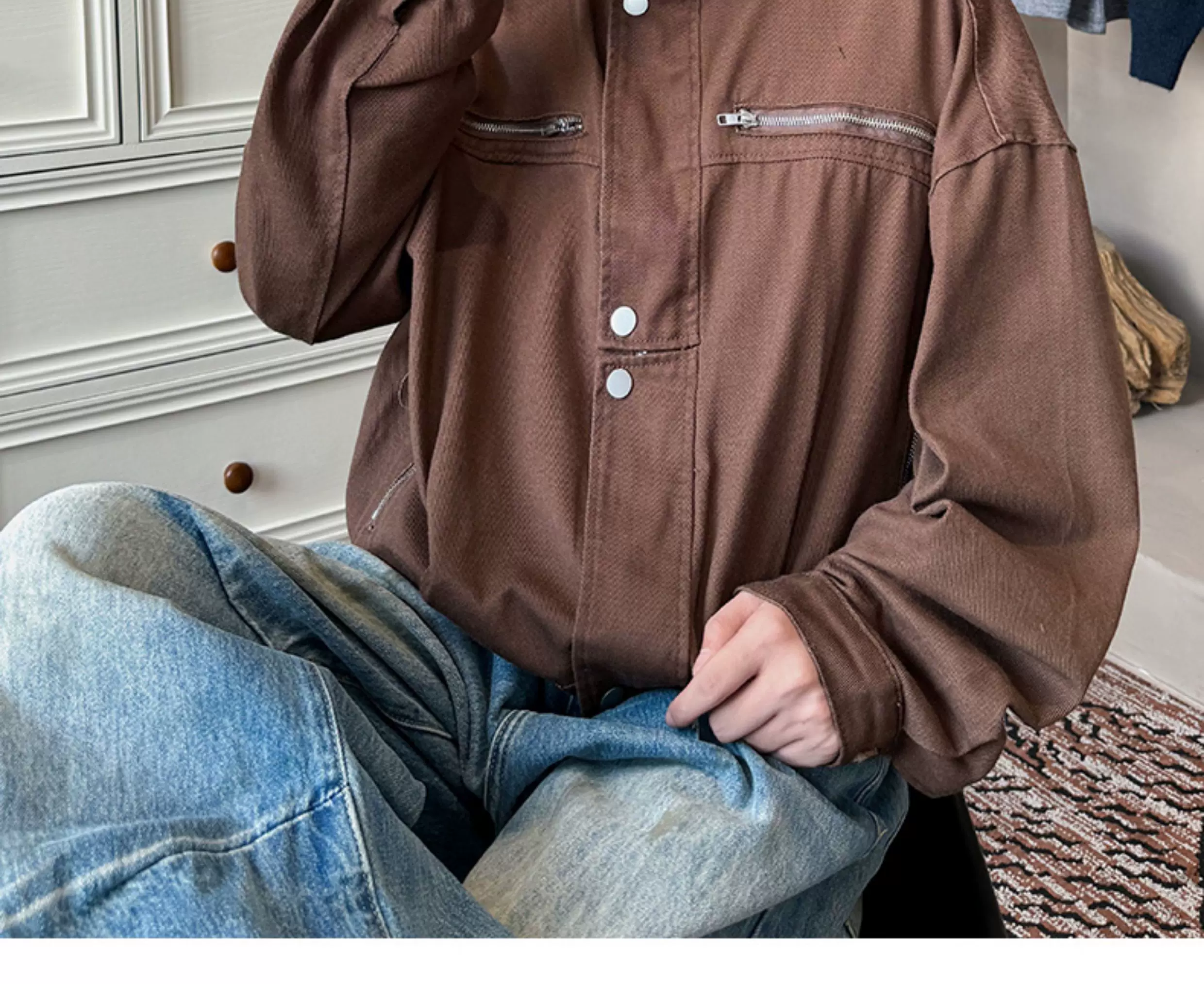 - Áo khoác workwear nam kiểu Mỹ cổ điển, phong cách retro, chất liệu dày dặn, dáng rộng, thời trang thu đông, kiểu biker ngắn.