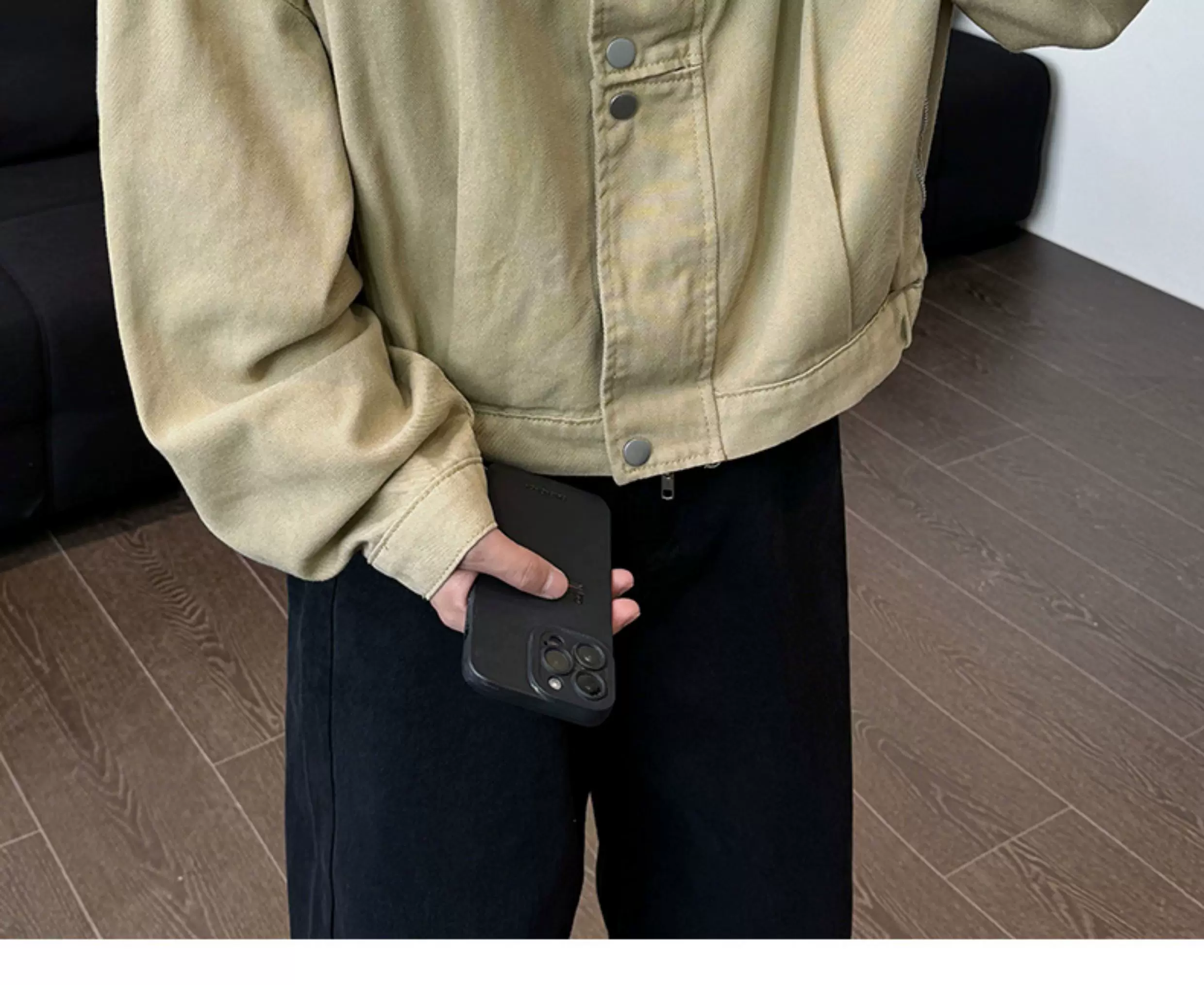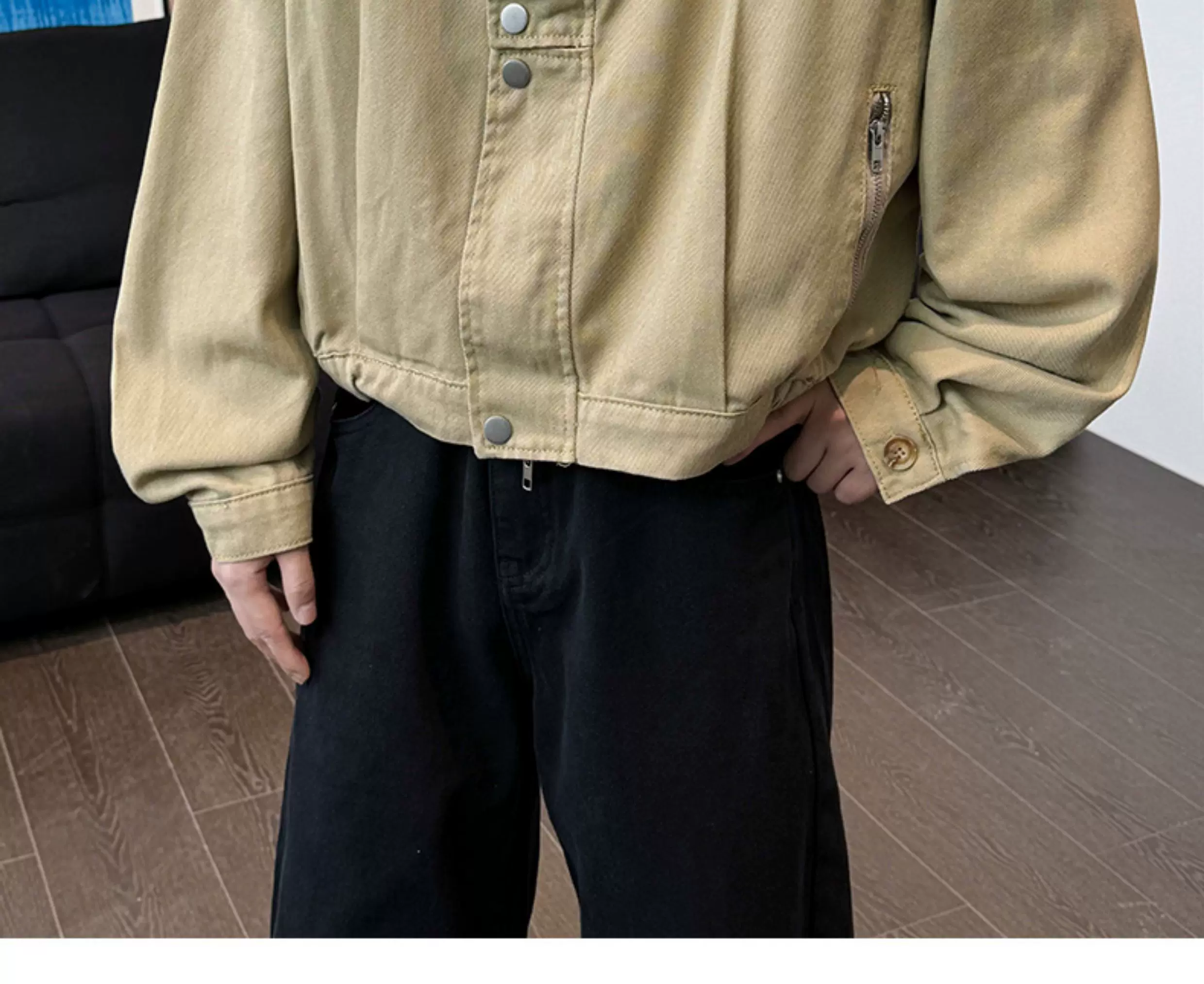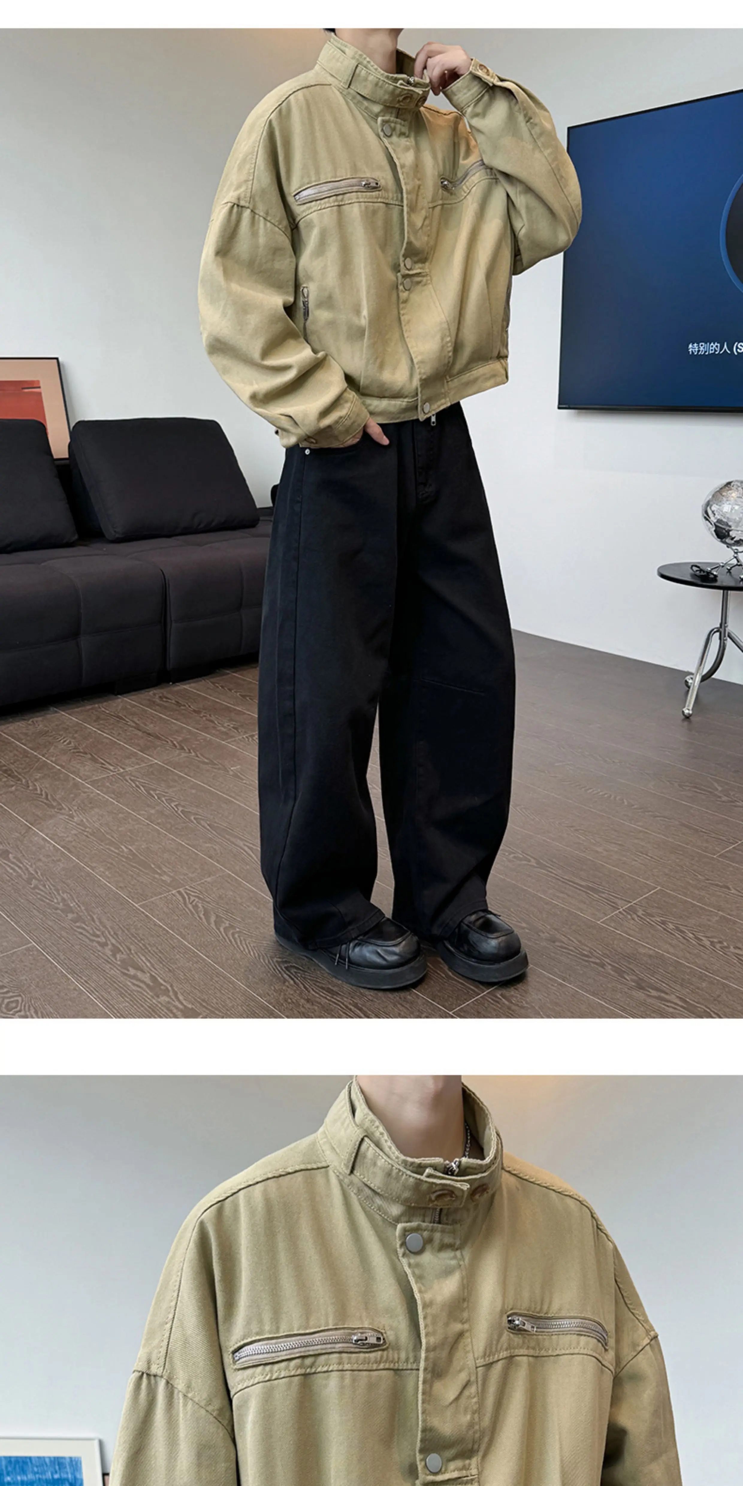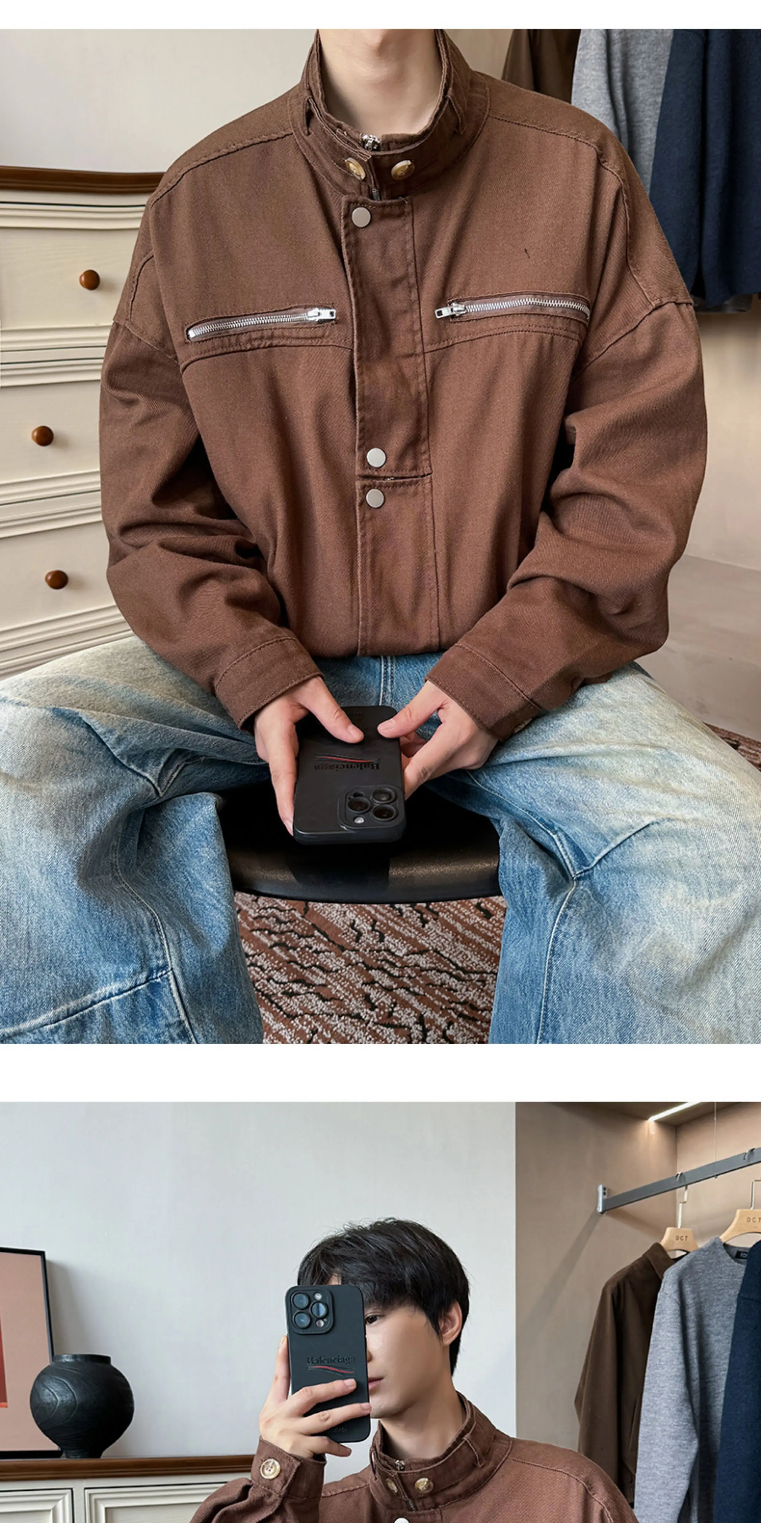- Áo khoác workwear nam kiểu Mỹ cổ điển, phong cách retro, chất liệu dày dặn, dáng rộng, thời trang thu đông, kiểu biker ngắn.