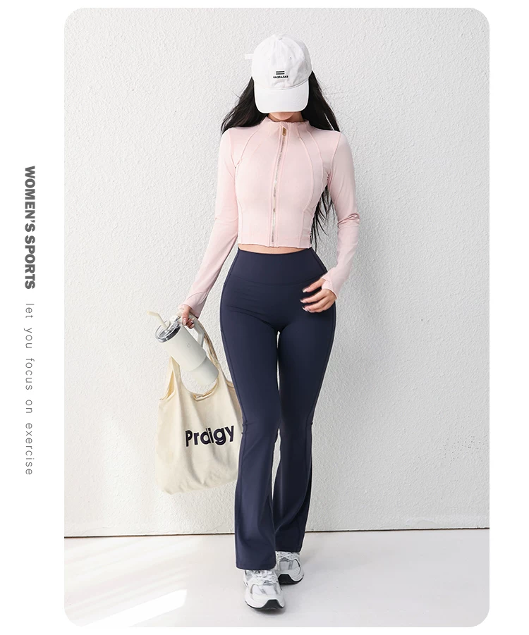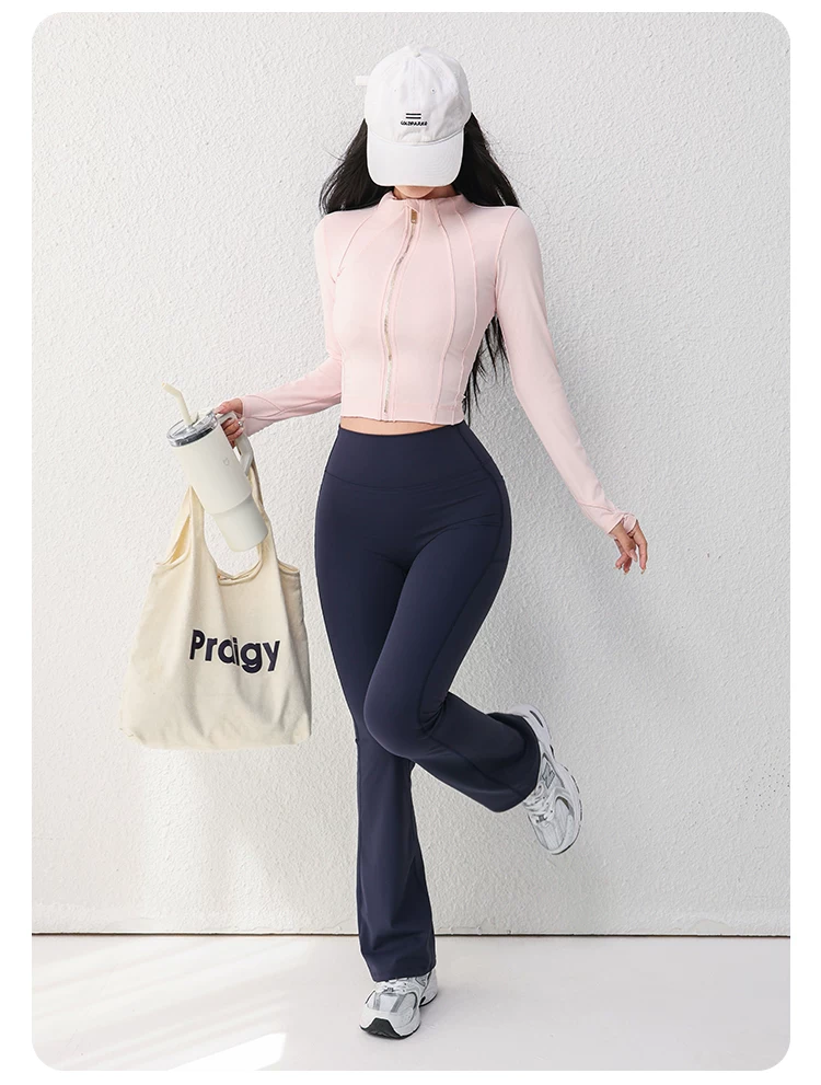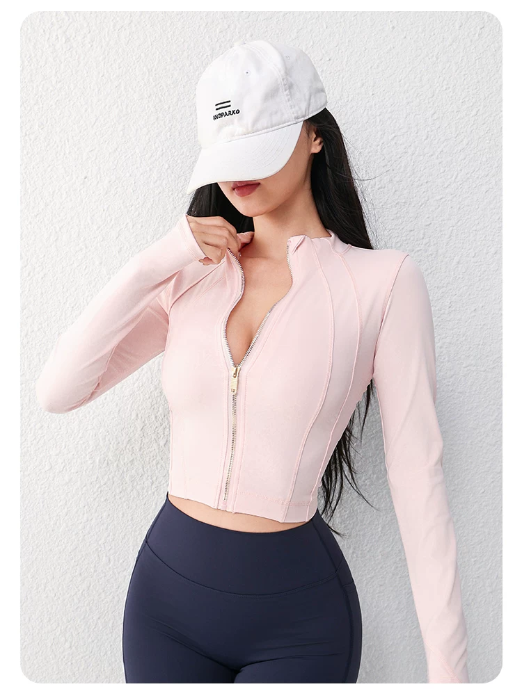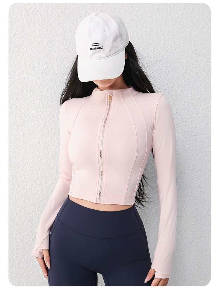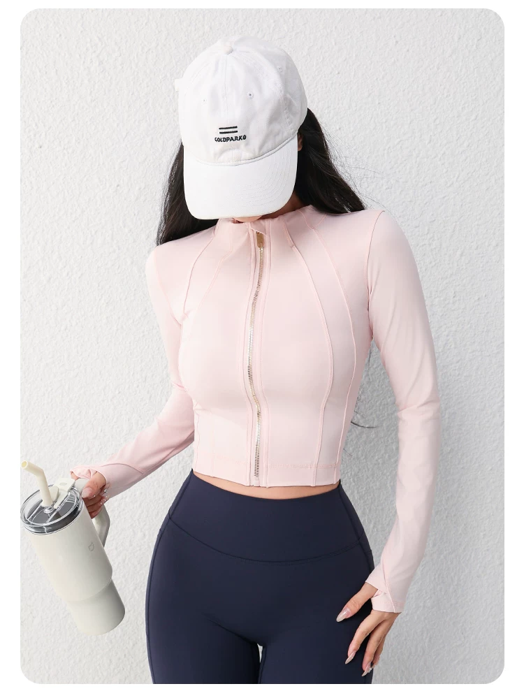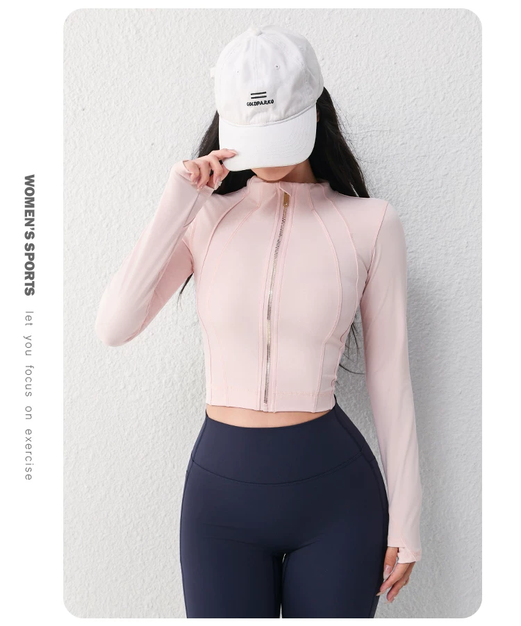 Áo khoác yoga cổ đứng dành cho nữ, áo tập thể dục có khóa kéo ôm sát mùa thu đông, áo thể thao dài tay tập Pilates giúp thon gọn vóc dáng.