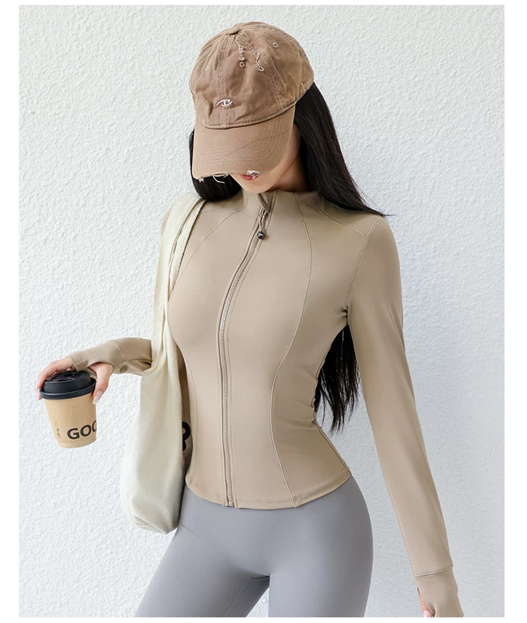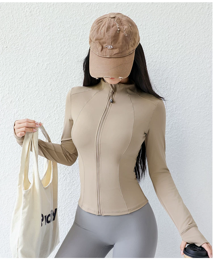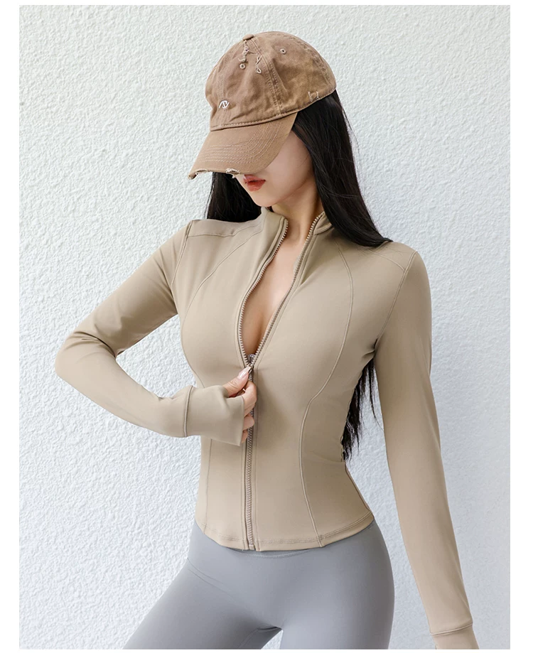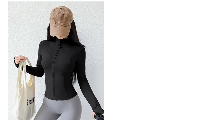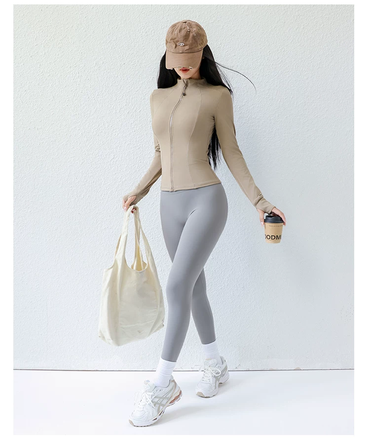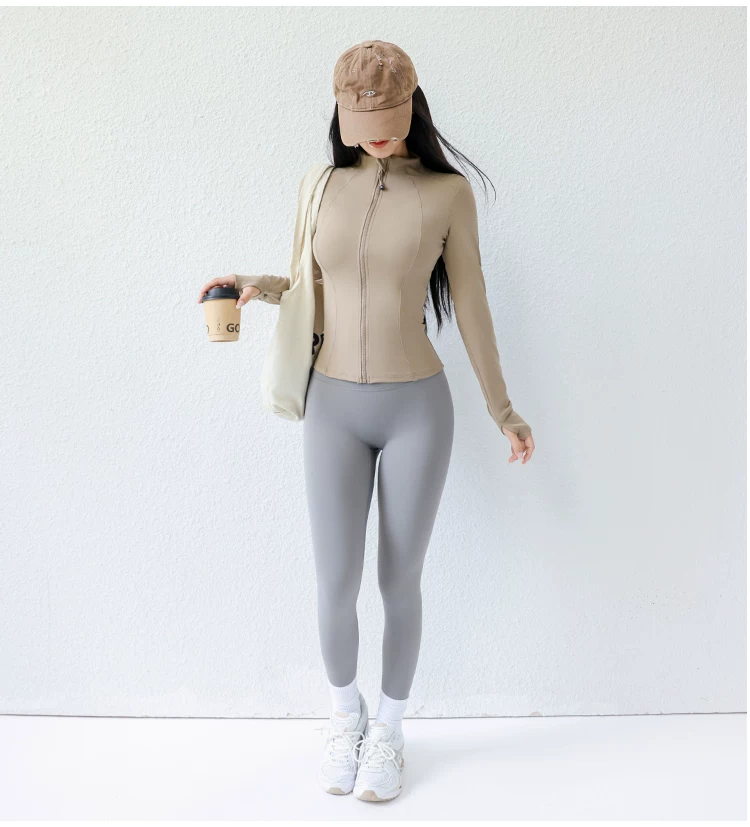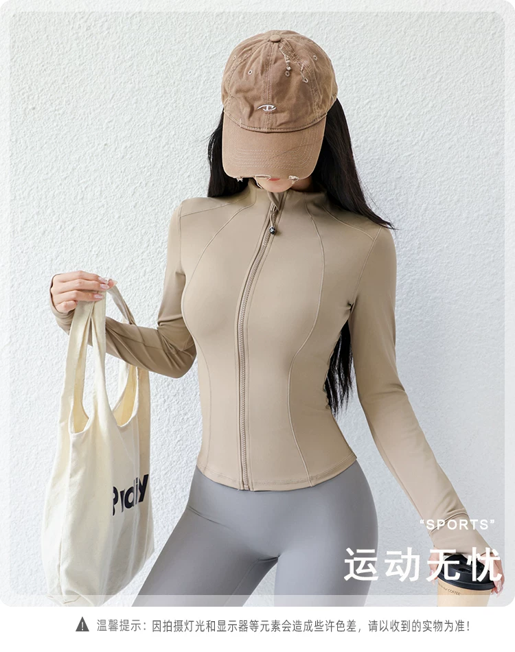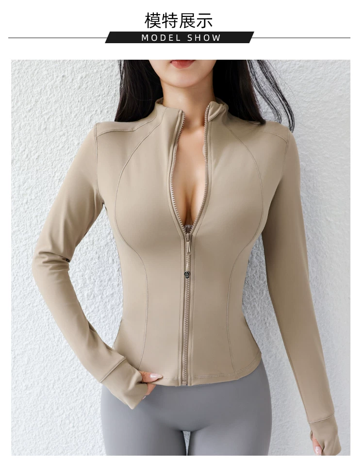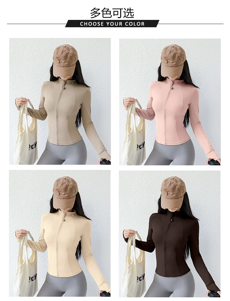 - Áo khoác yoga nữ hè 2026 kiểu mới cổ đứng, áo thể thao ôm dáng, áo tập luyện chạy bộ, áo tập gym