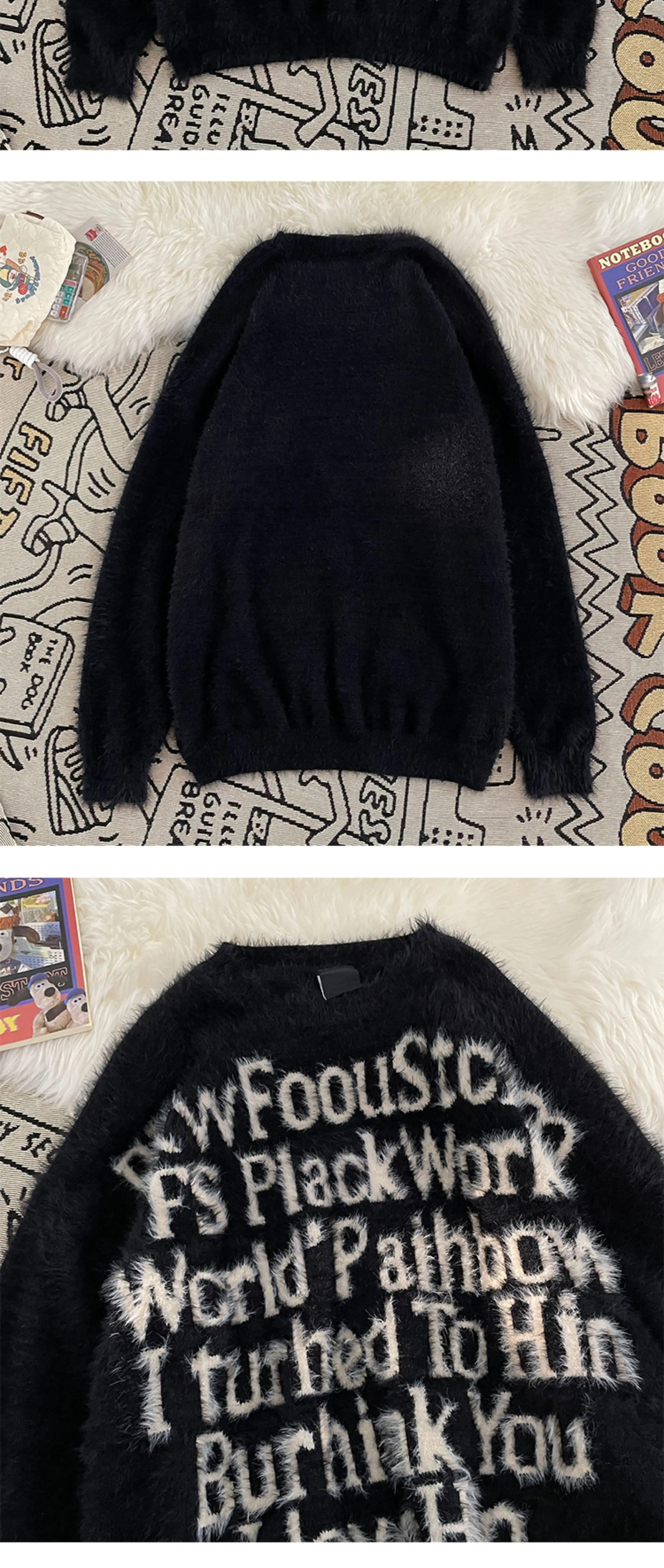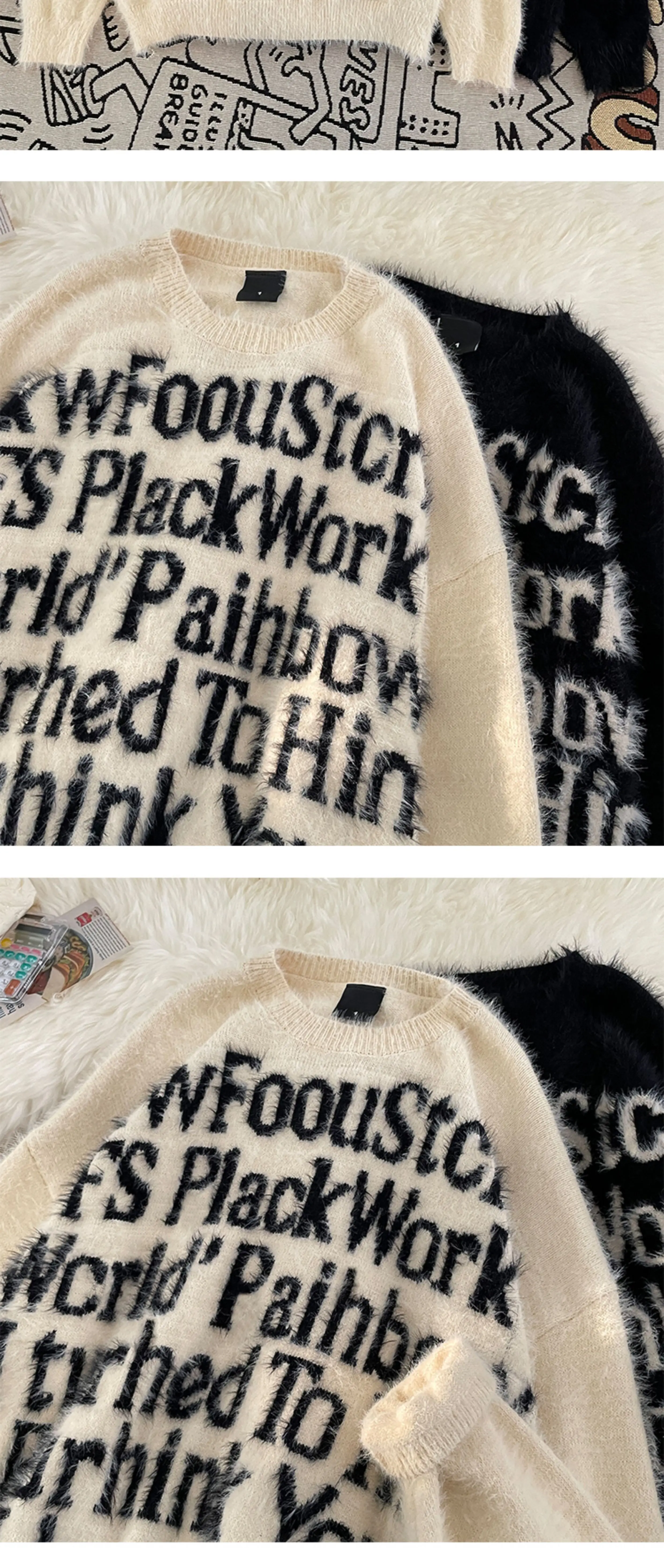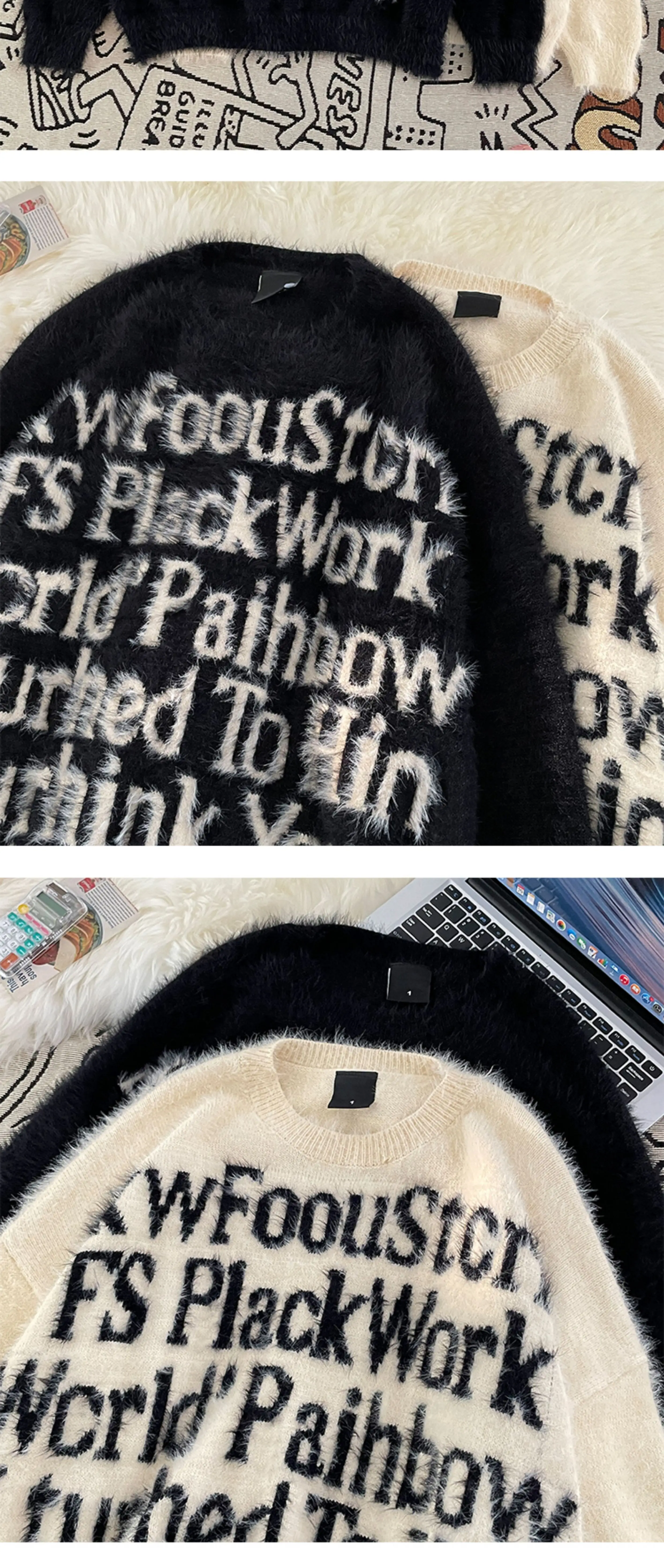 - Áo len cặp đôi in chữ, phong cách Mỹ, thời trang thu đông, kiểu dáng rộng rãi, chất liệu dệt kim, áo khoác len phong cách lười biếng dành cho nam
