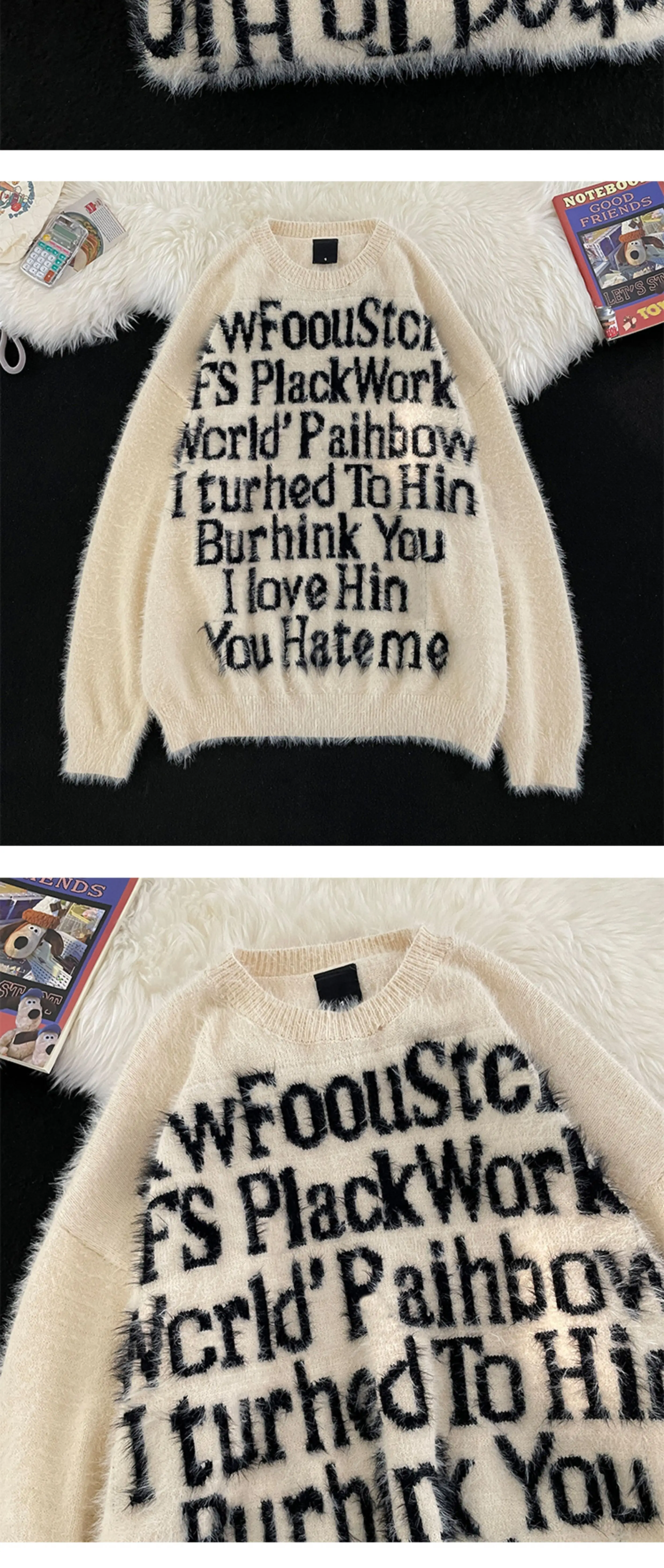 Áo len cặp đôi in chữ, phong cách Mỹ, thời trang thu đông, kiểu dáng rộng rãi, chất liệu dệt kim, áo khoác len phong cách lười biếng dành cho nam