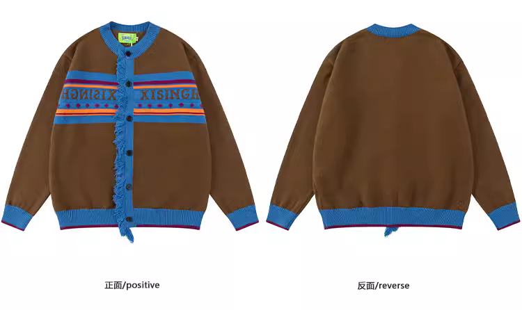 Áo len cặp đôi phong cách retro Mỹ, sọc xanh, kiểu preppy, áo khoác len cổ điển nam nữ
