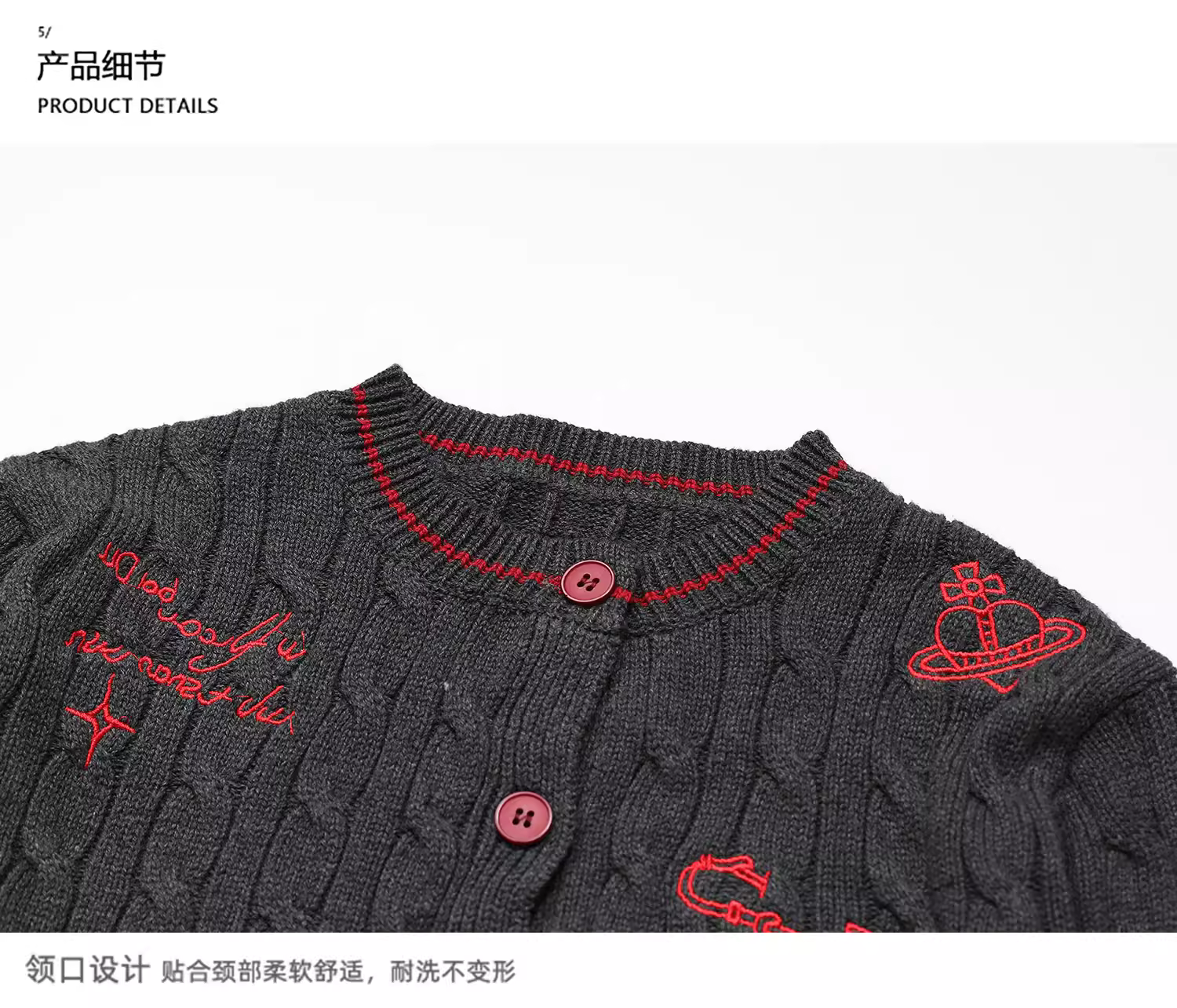 - Áo len cardigan cổ tròn thêu kiểu Mỹ cổ điển K787 dành cho nữ, ôm dáng, eo thon, áo khoác ngắn dệt kim