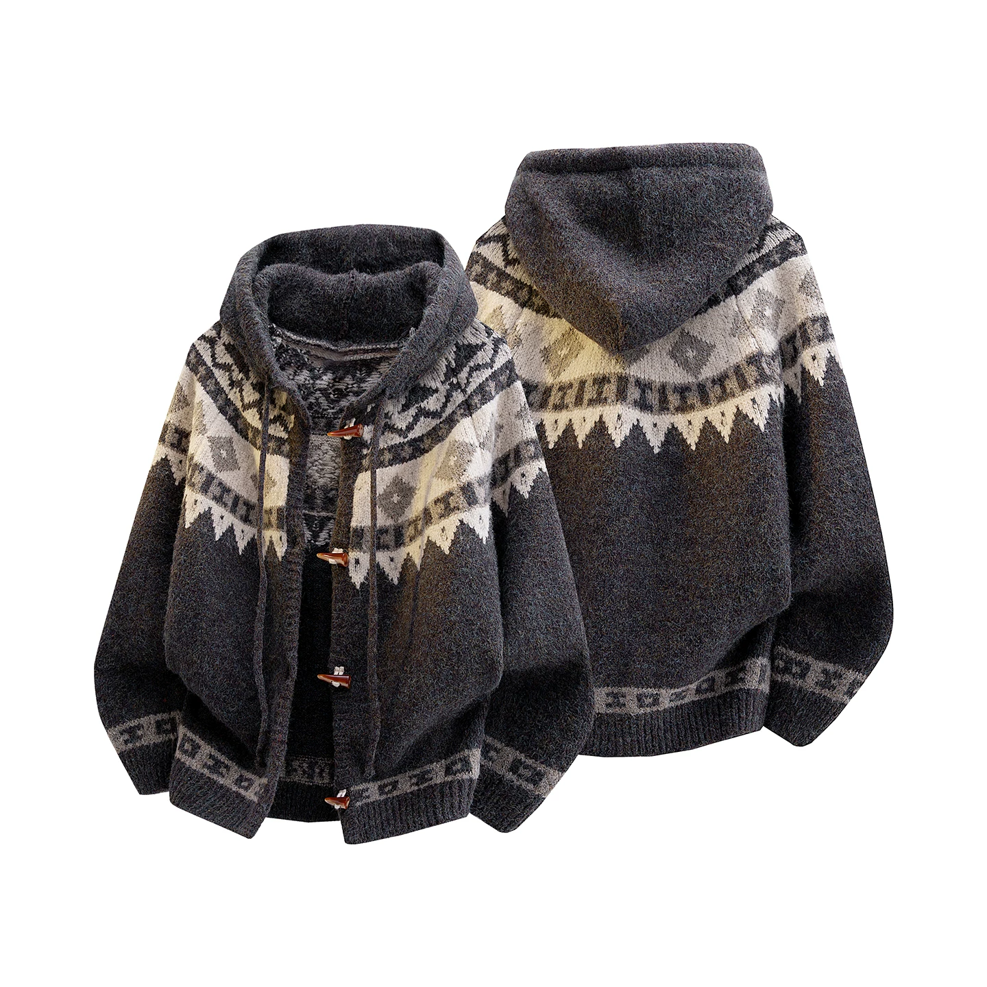- Áo len cardigan Jacquard dành cho nam, thương hiệu thời trang mùa đông, áo len dệt kim dày có mũ, áo khoác len Fair Isle phong cách retro Mỹ.