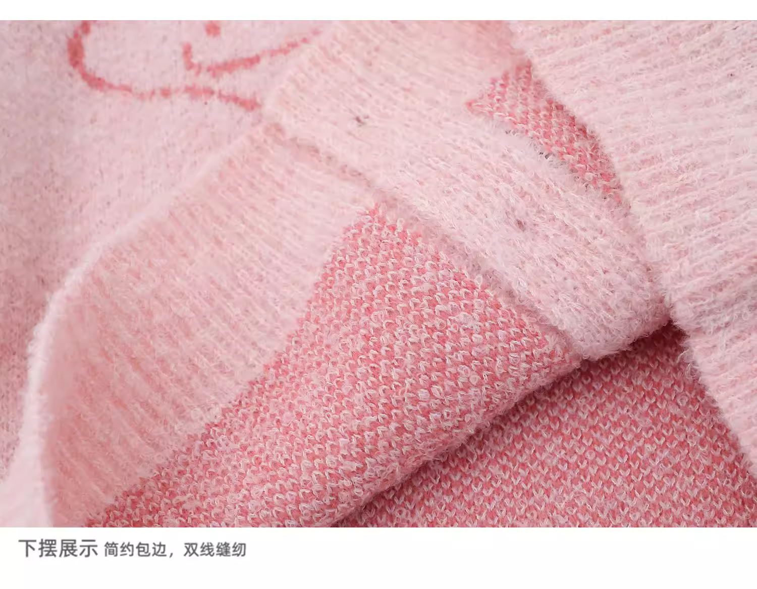 Áo len cardigan mèo hoạt hình dễ thương K787 dành cho nữ, kiểu dáng rộng rãi, thoải mái, phong cách lười biếng, màu hồng, chất liệu len ngắn, mùa thu