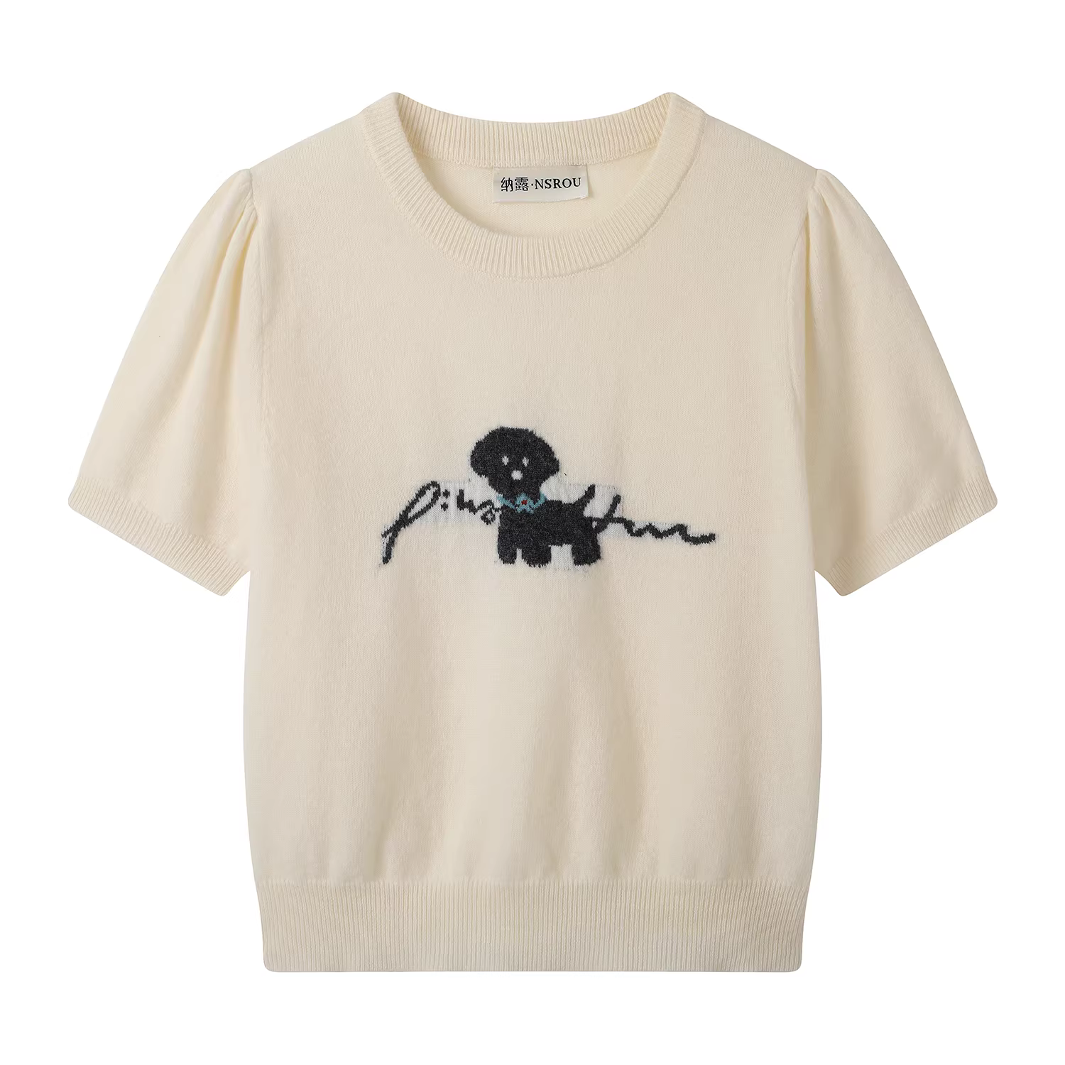 - Áo len cashmere ngắn tay thêu hình chó con cổ điển phong cách Hàn Quốc dành cho nữ, áo dệt kim mềm mại và ấm cúng cho đầu mùa thu.