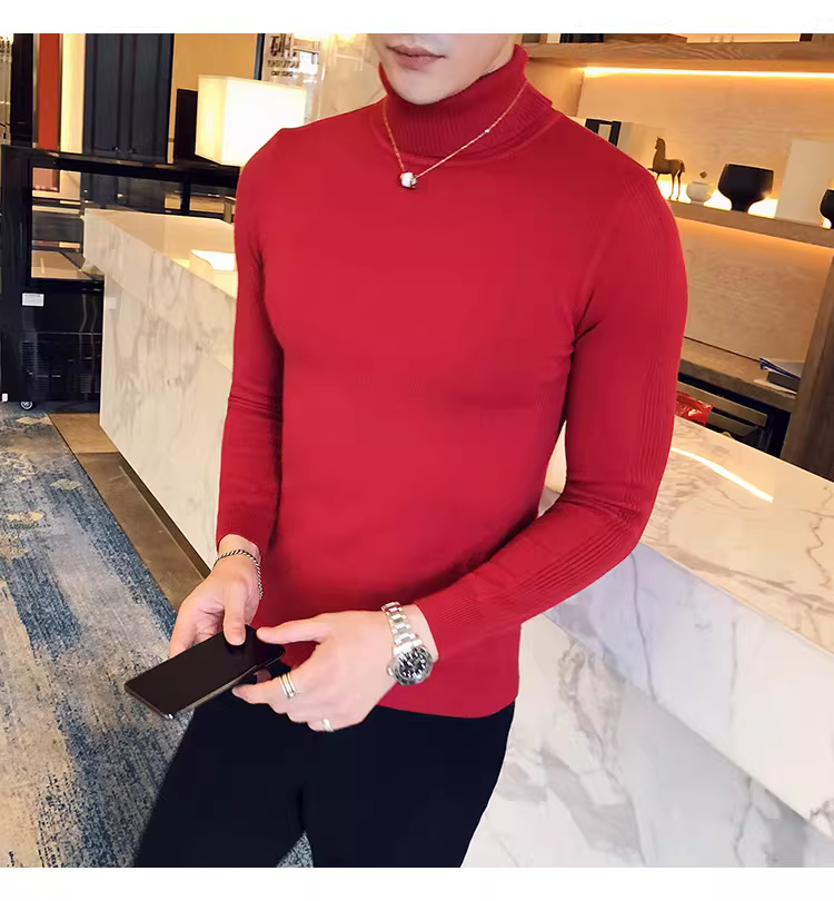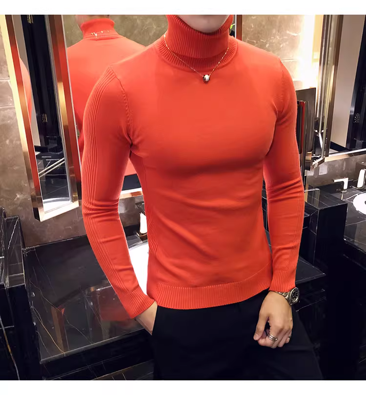 - Áo len cổ lọ nam cho mùa thu đông, lót lông cừu, dày dặn, ấm áp, kiểu dáng ôm sát, tay dài, lớp lót bên trong bằng vải dệt kim.