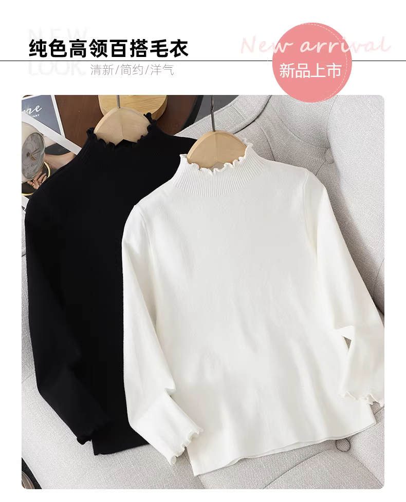 - Áo len cổ lọ nửa cao cho bé gái, mẫu mới 2025, thời trang thu đông, áo len trắng trẻ em, áo len dệt kim cho bé gái