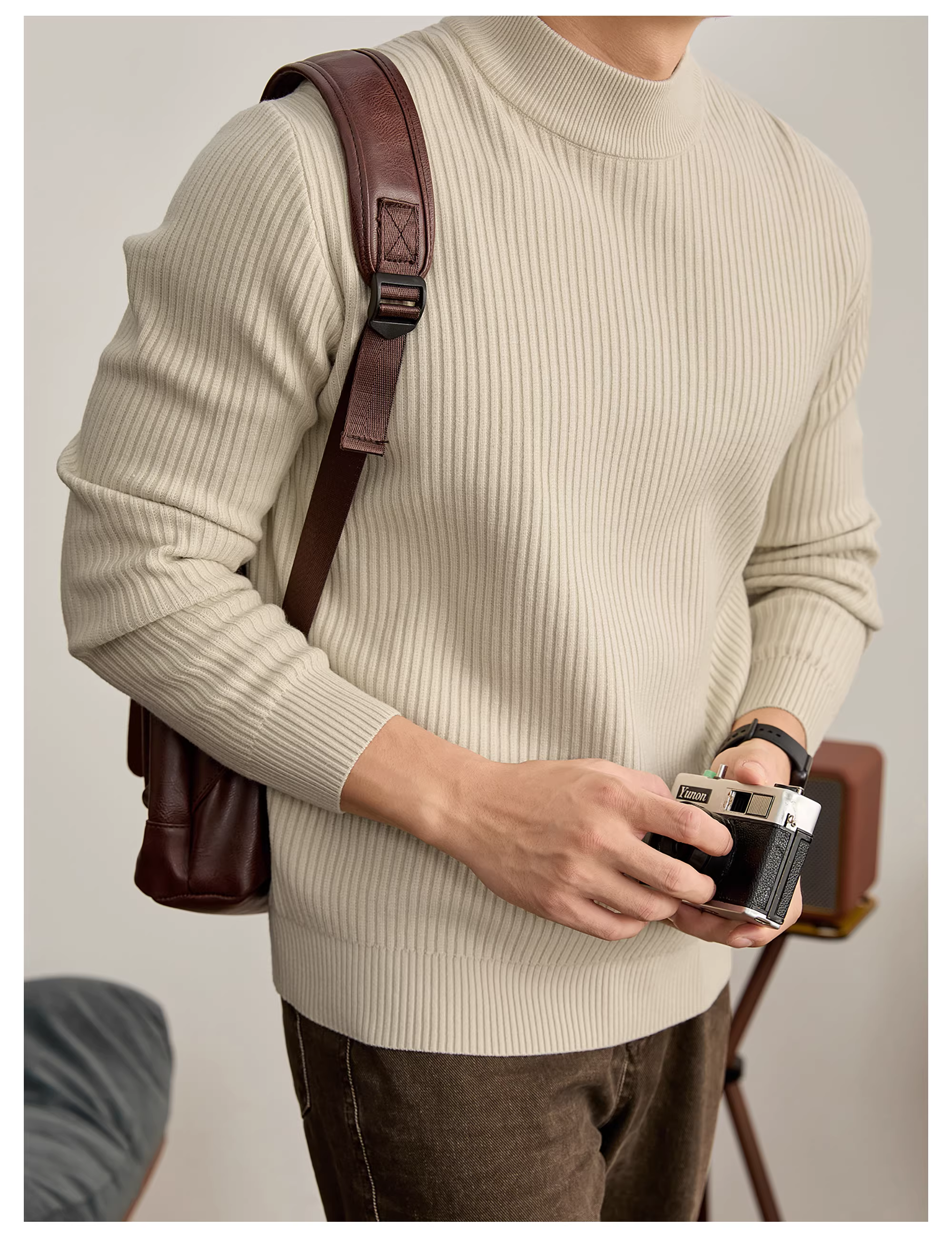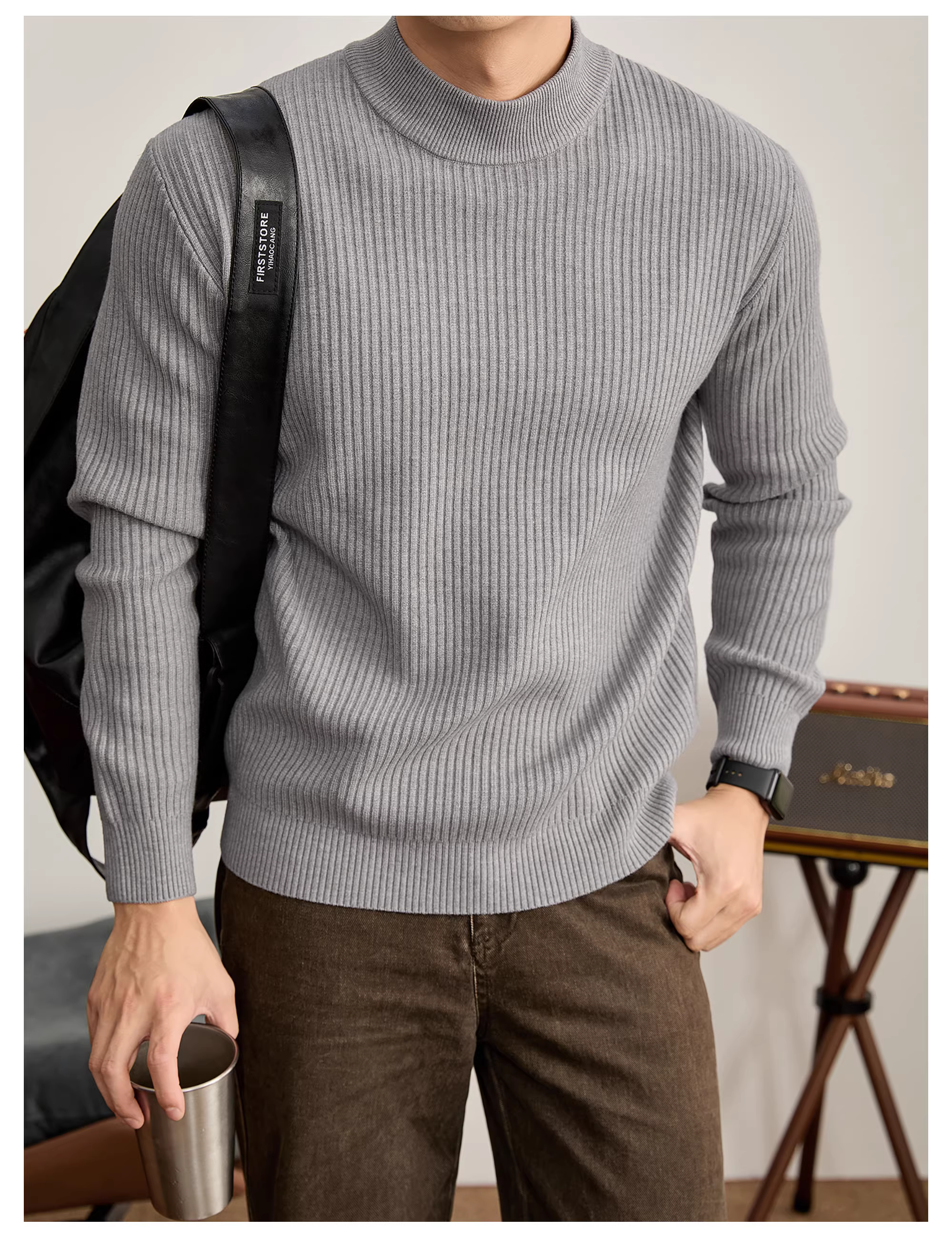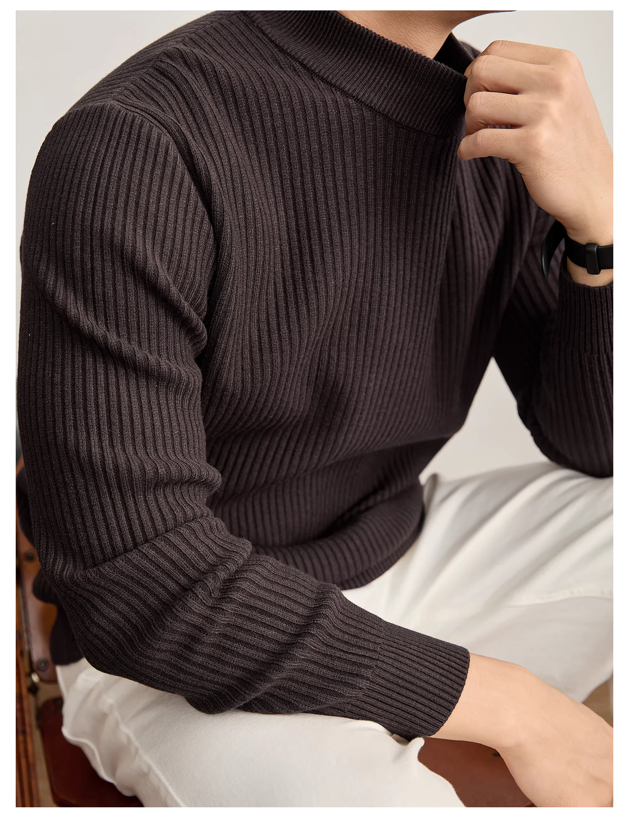 - Áo len có lớp nền có gân có họa tiết thanh lịch và mát mẻ của LUUD dành cho nam giới, đồ dệt kim cổ lọ nửa cổ ấm áp mùa đông.
