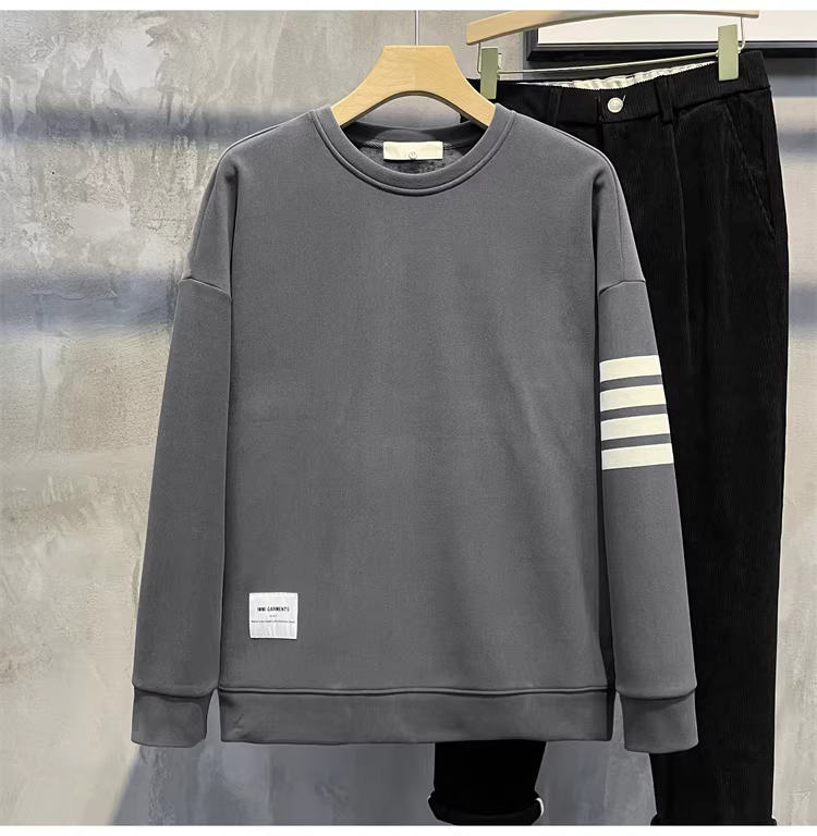Áo len cổ tròn dày dặn có lót lông cừu mùa đông LUUD dành cho nam giới Áo len cổ tròn dày dặn ấm áp thương hiệu thời trang châu Âu in ba sọc áo dài tay