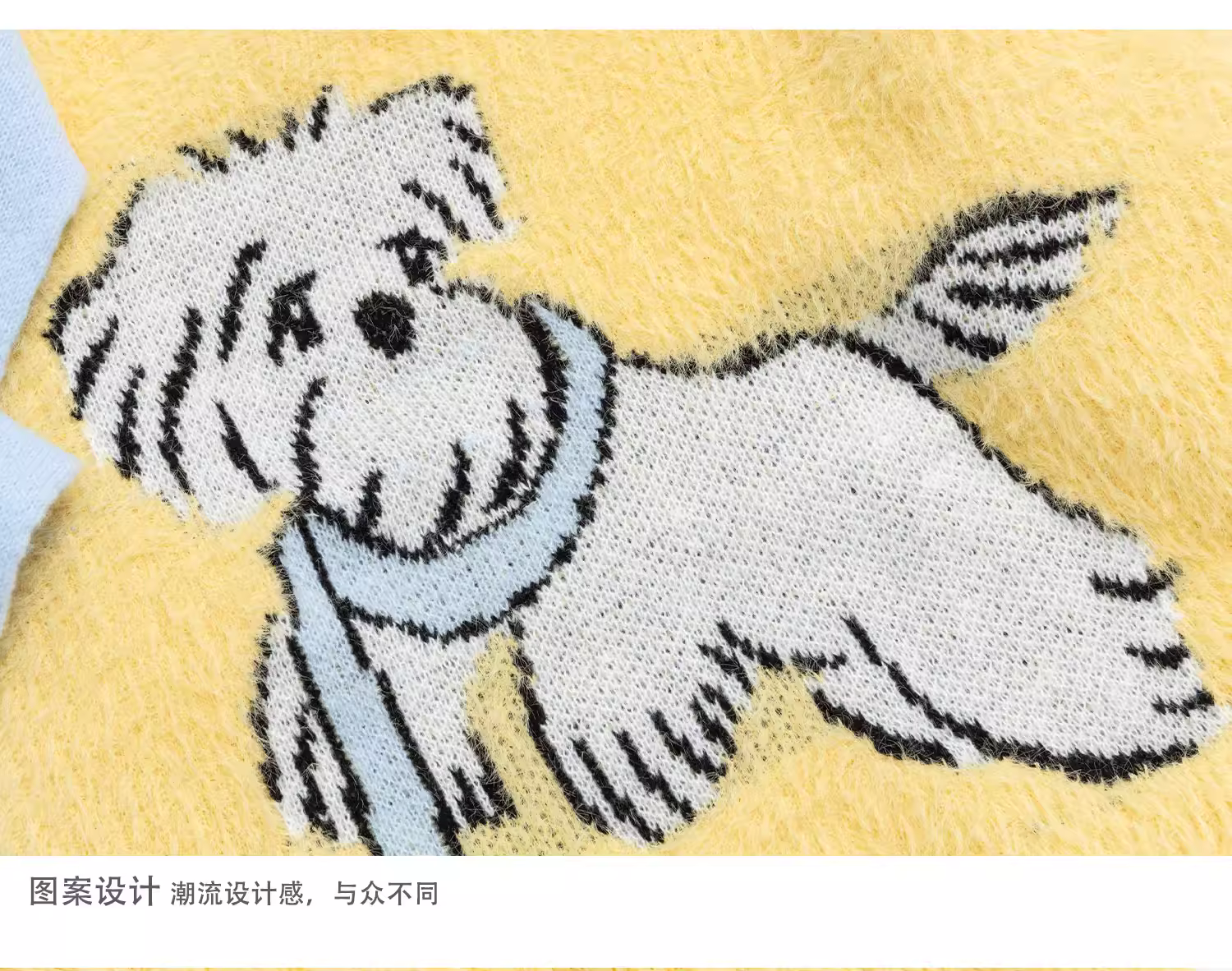 Áo len cổ tròn kiểu dáng retro Mỹ K787 dành cho nam và nữ, họa tiết chó dễ thương, kiểu dáng rộng rãi, áo len cặp đôi