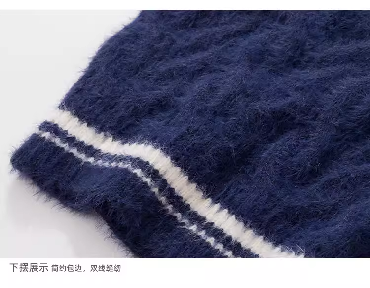 - Áo len cổ tròn kiểu Nhật Bản cổ điển K787 dành cho nữ, phong cách vintage sọc, kiểu áo len đại học, áo len đa năng