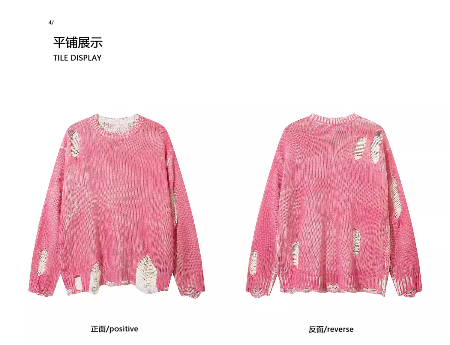 Áo len cổ tròn rách kiểu Mỹ K787 dành cho nam và nữ, dáng rộng, oversize, trẻ trung, phong cách lười biếng, đồ đôi dệt kim