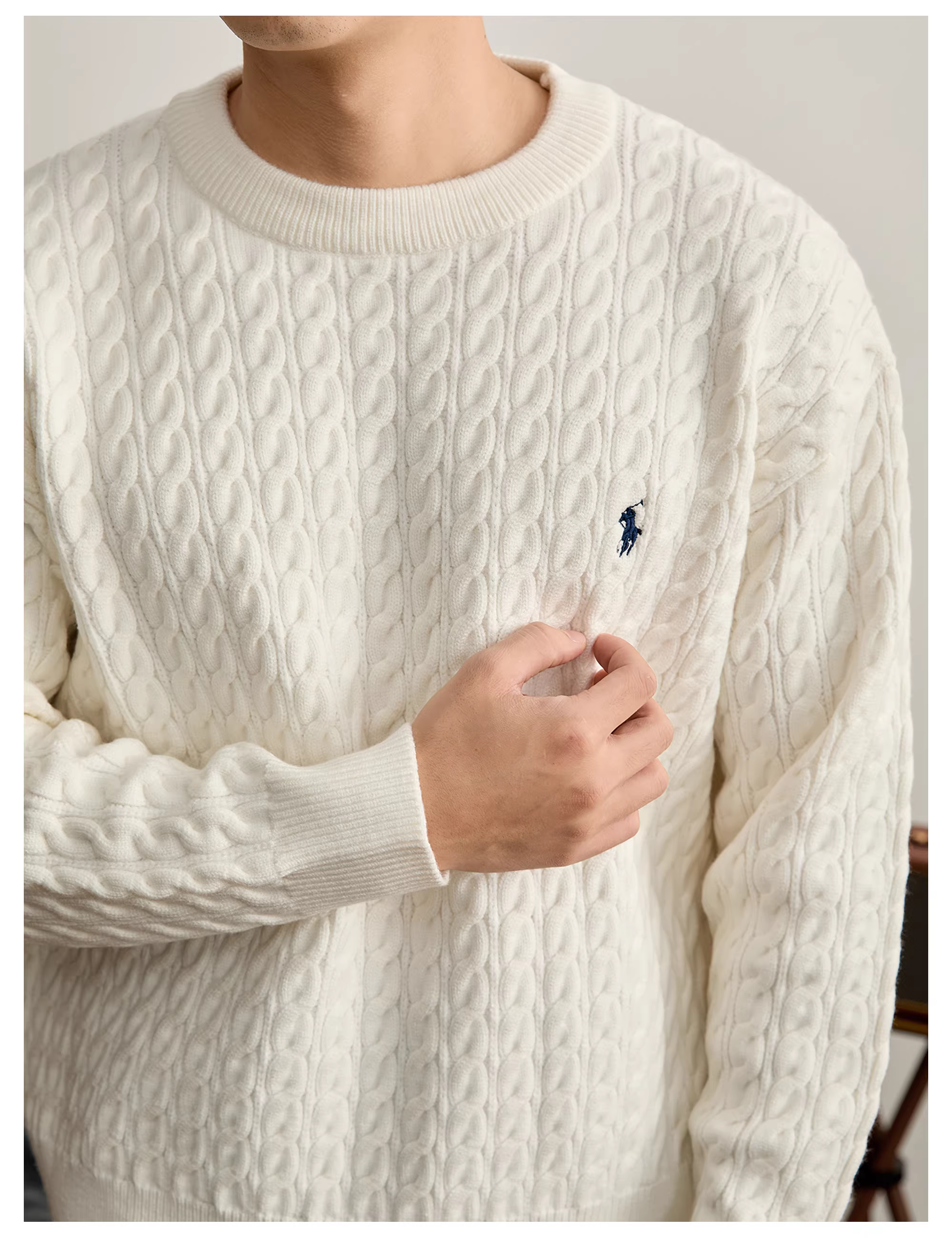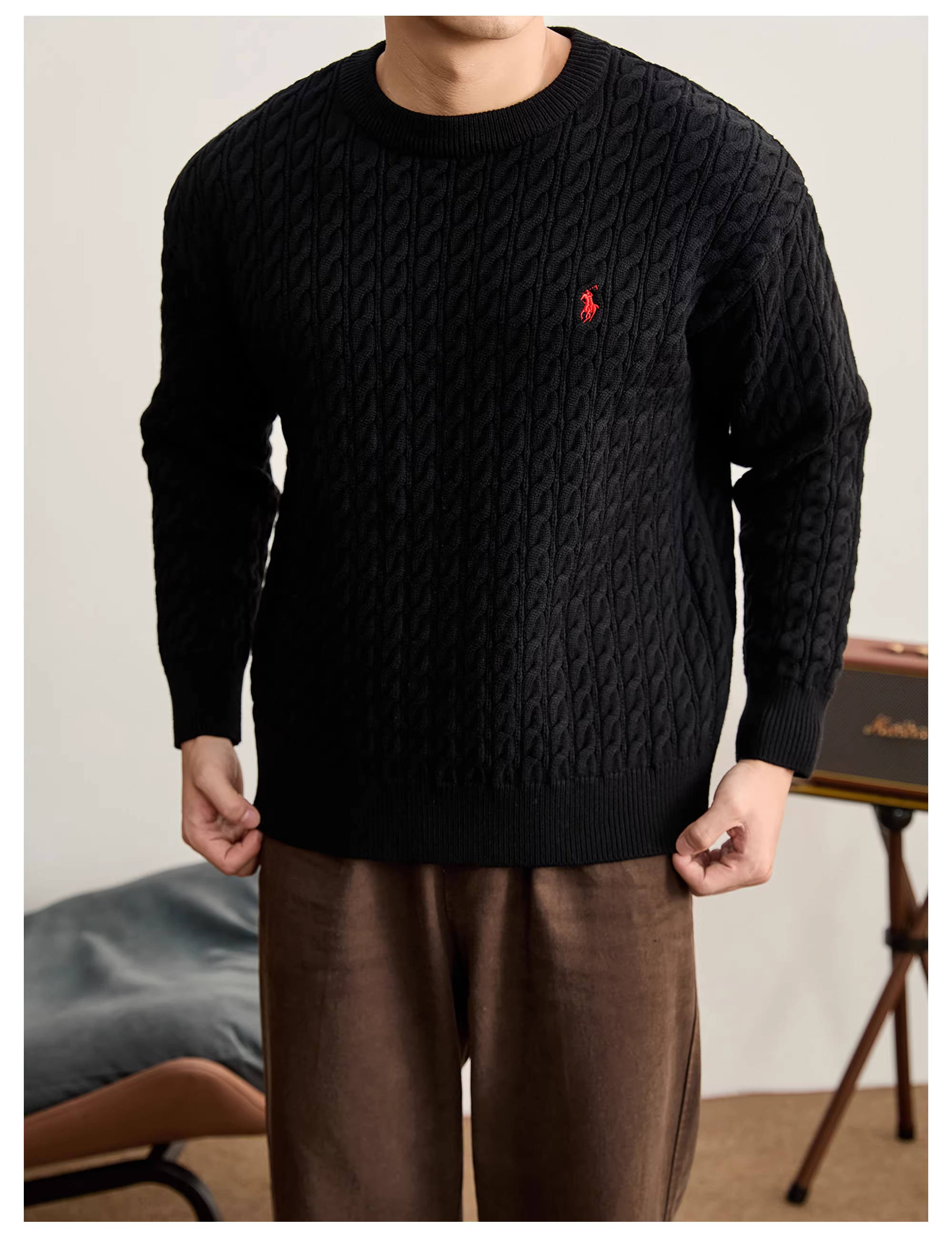 - Áo len dài tay thêu họa tiết hiệp sĩ kiểu Ý thanh lịch của LUUD dành cho nam giới, hàng dệt kim có họa tiết xoắn cổ điển theo phong cách retro