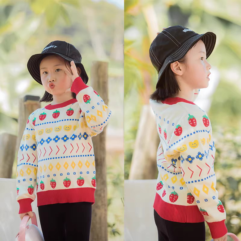 - Áo len dệt kim bé gái xuân 2025 kiểu mới áo hoạt hình trẻ em áo len thời trang hai lớp