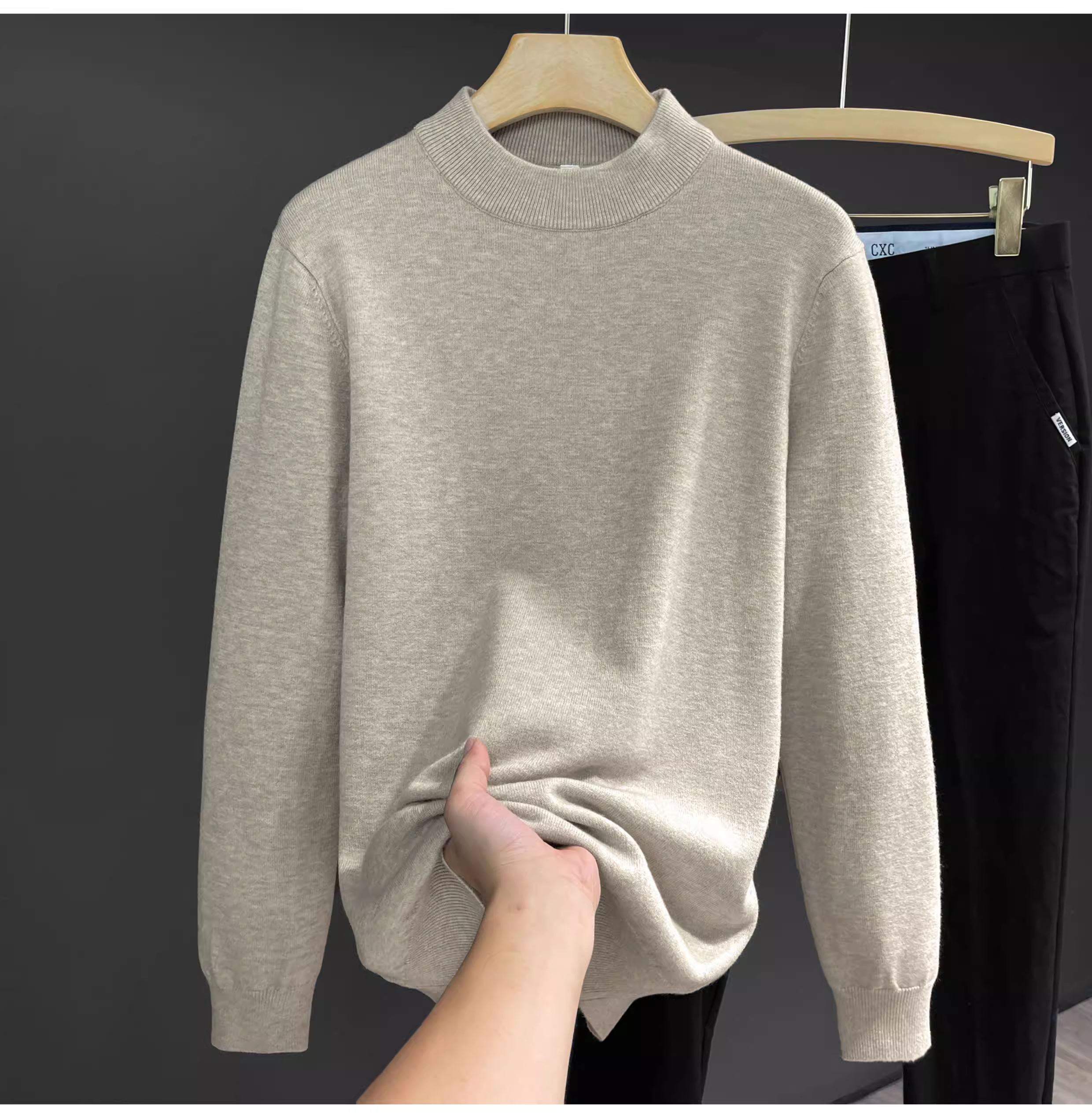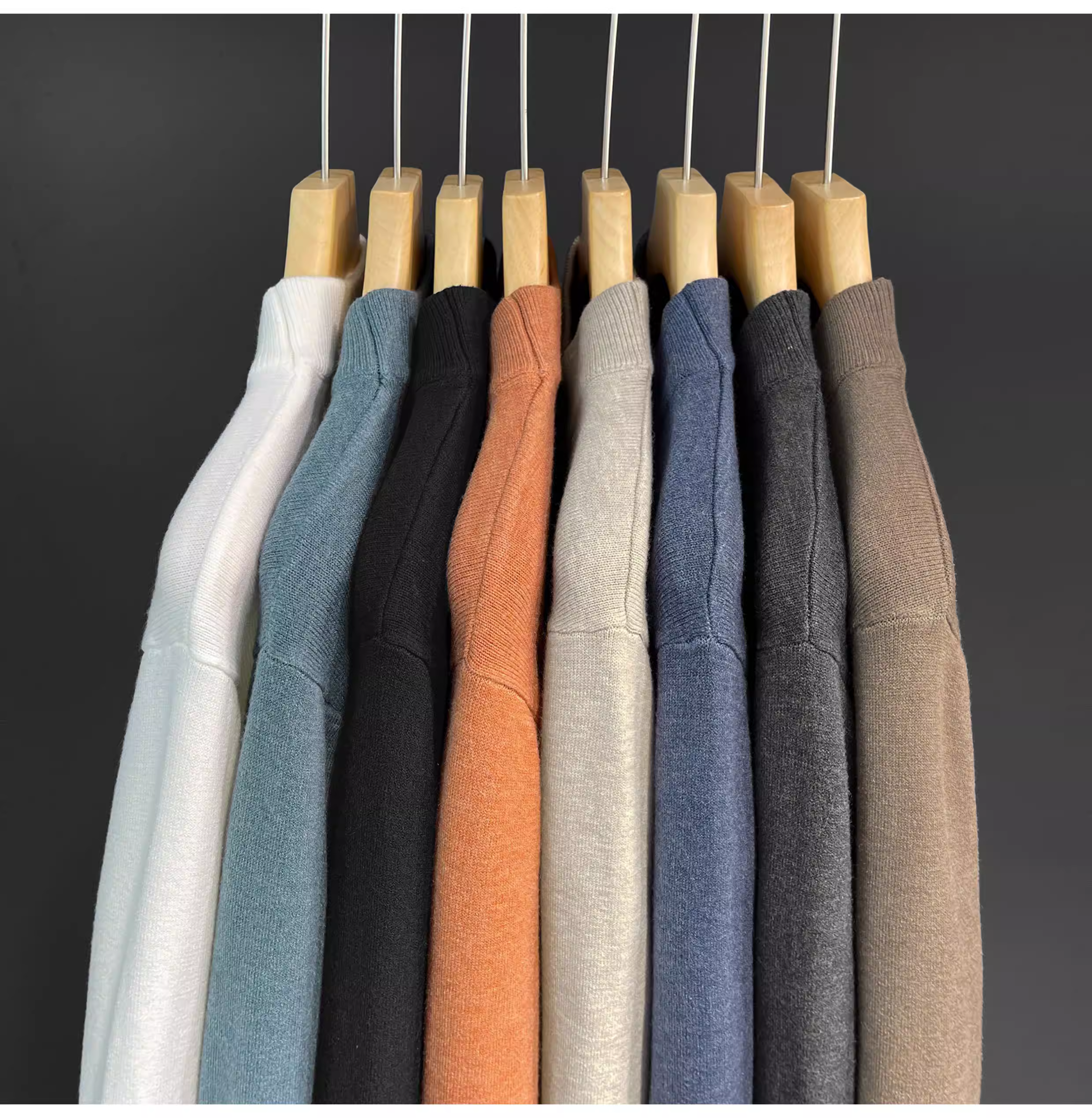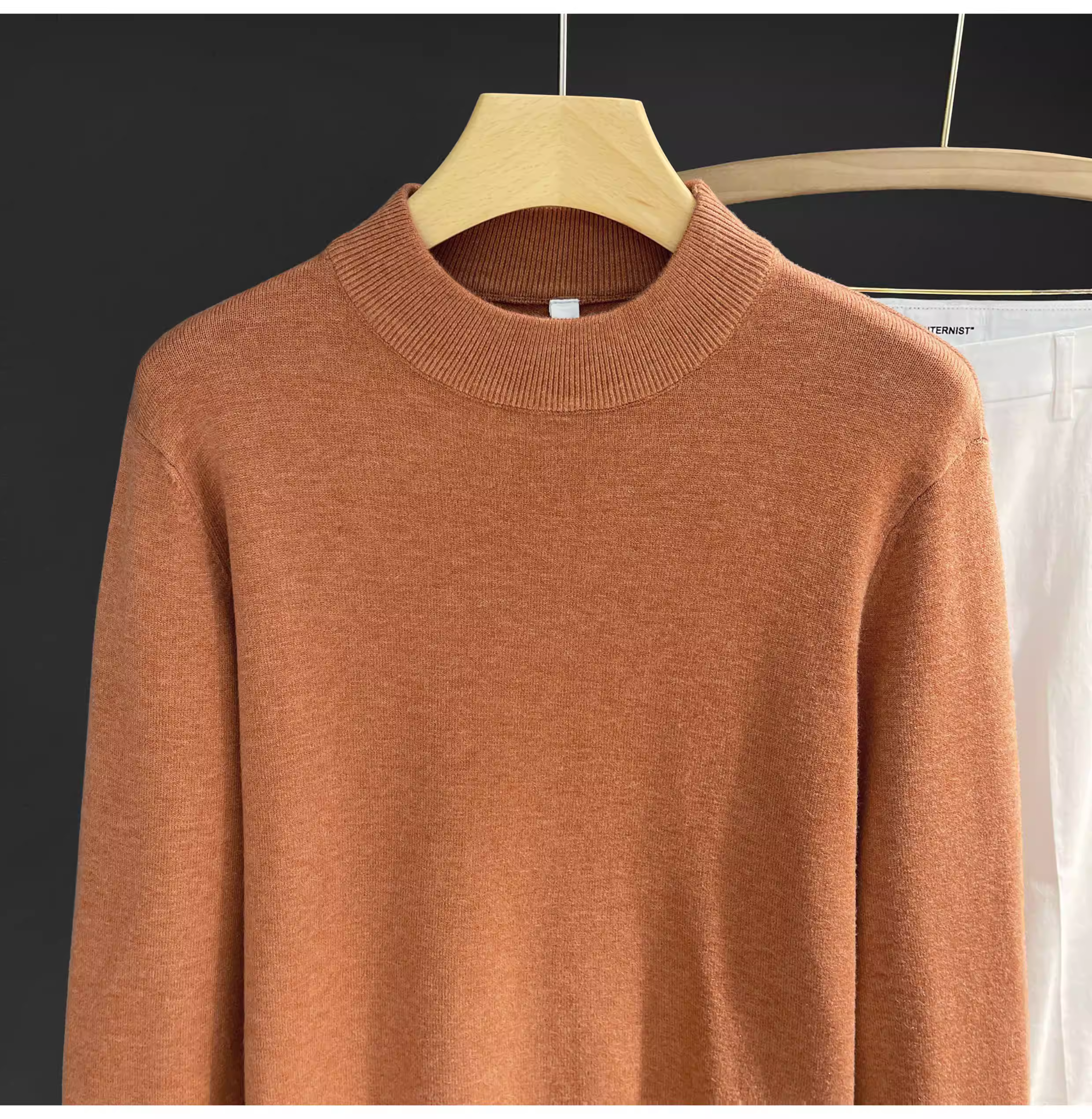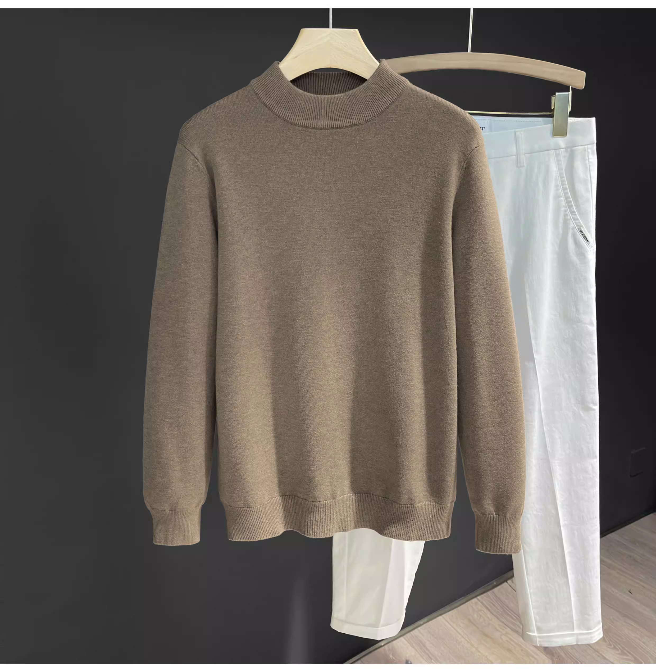 Áo len dệt kim cổ cao nửa cổ màu nâu LUUD dành cho nam, phong cách retro Hàn Quốc, màu trơn, dài tay, giản dị, áo len len cừu ấm áp