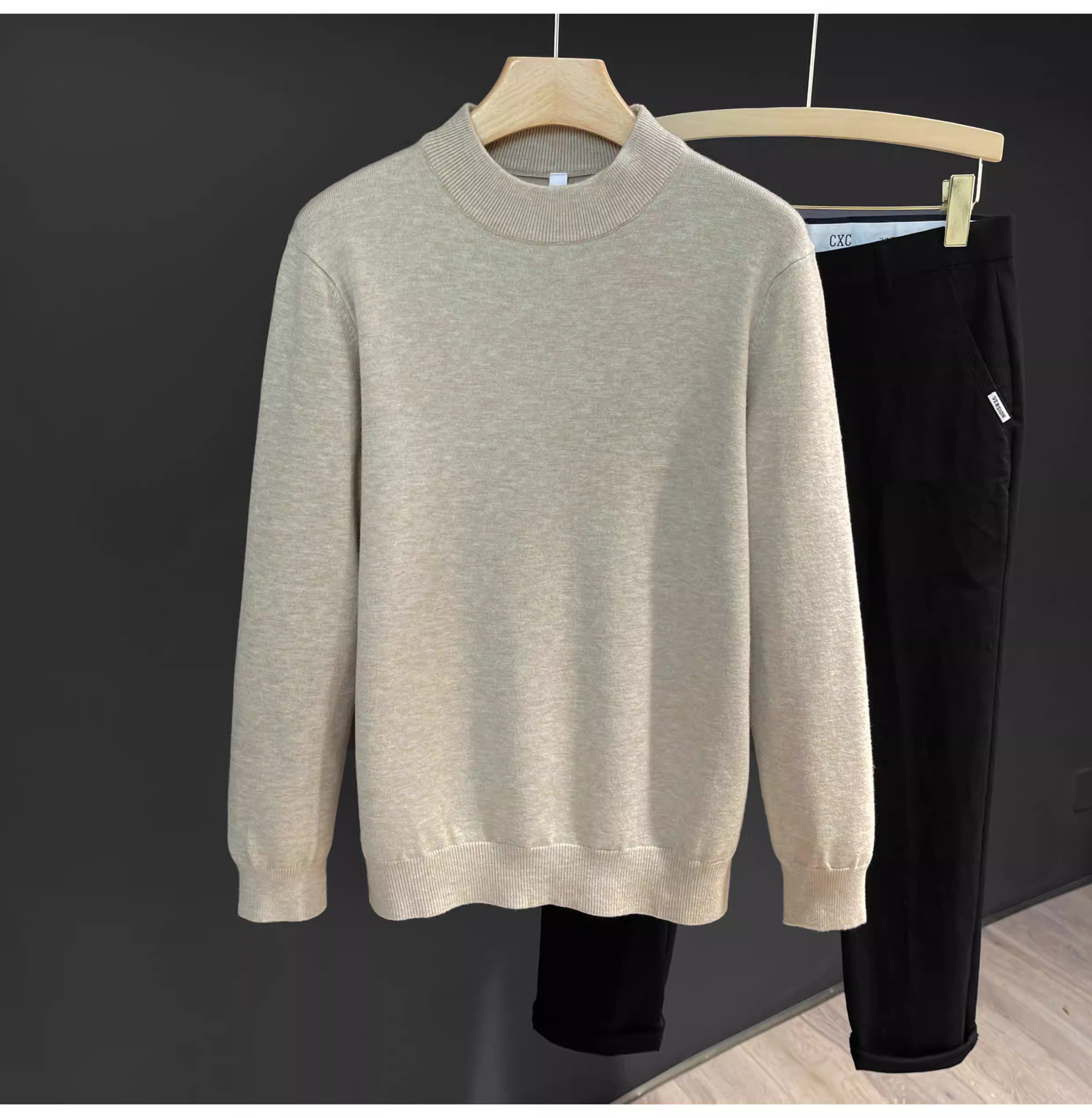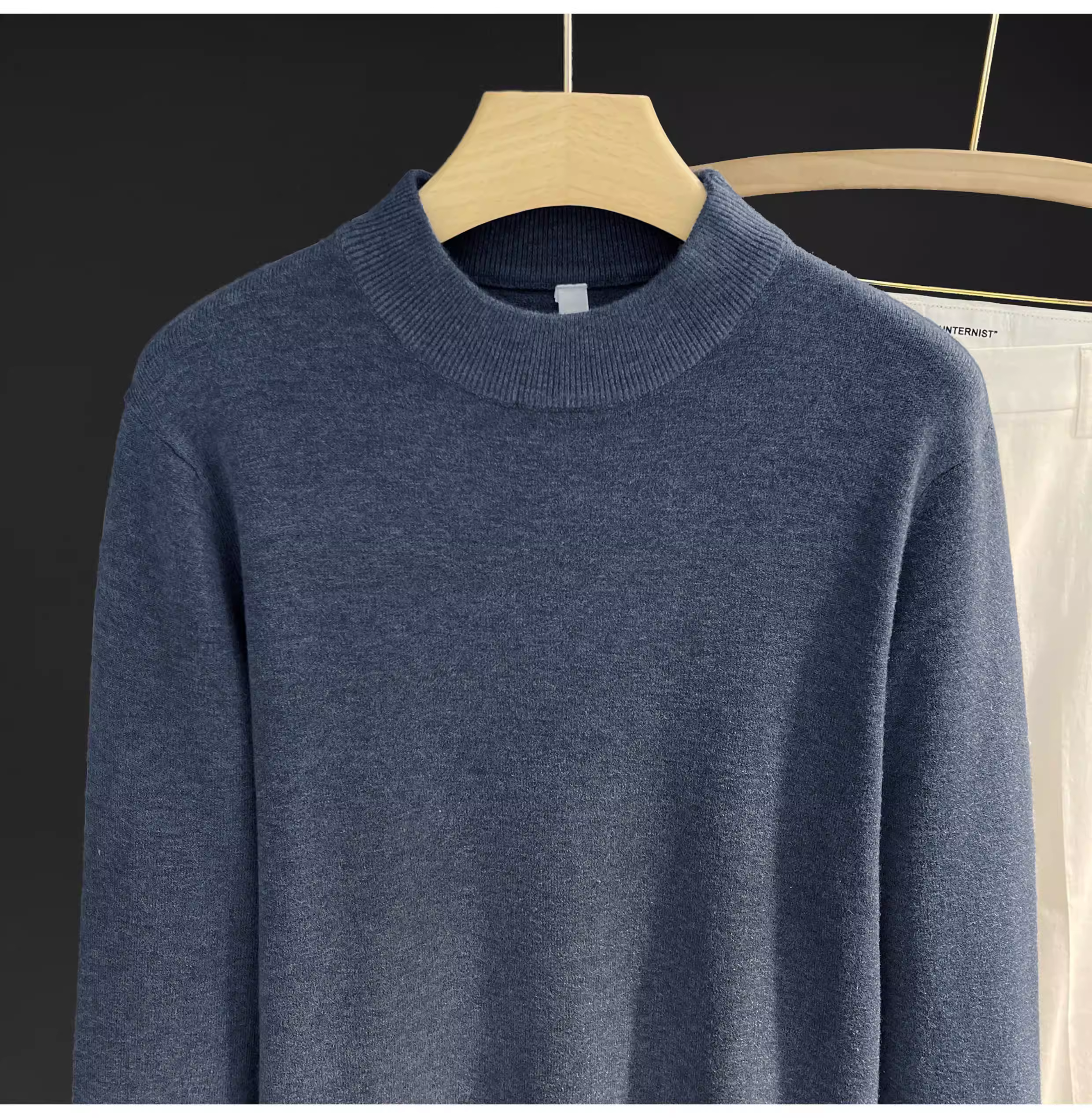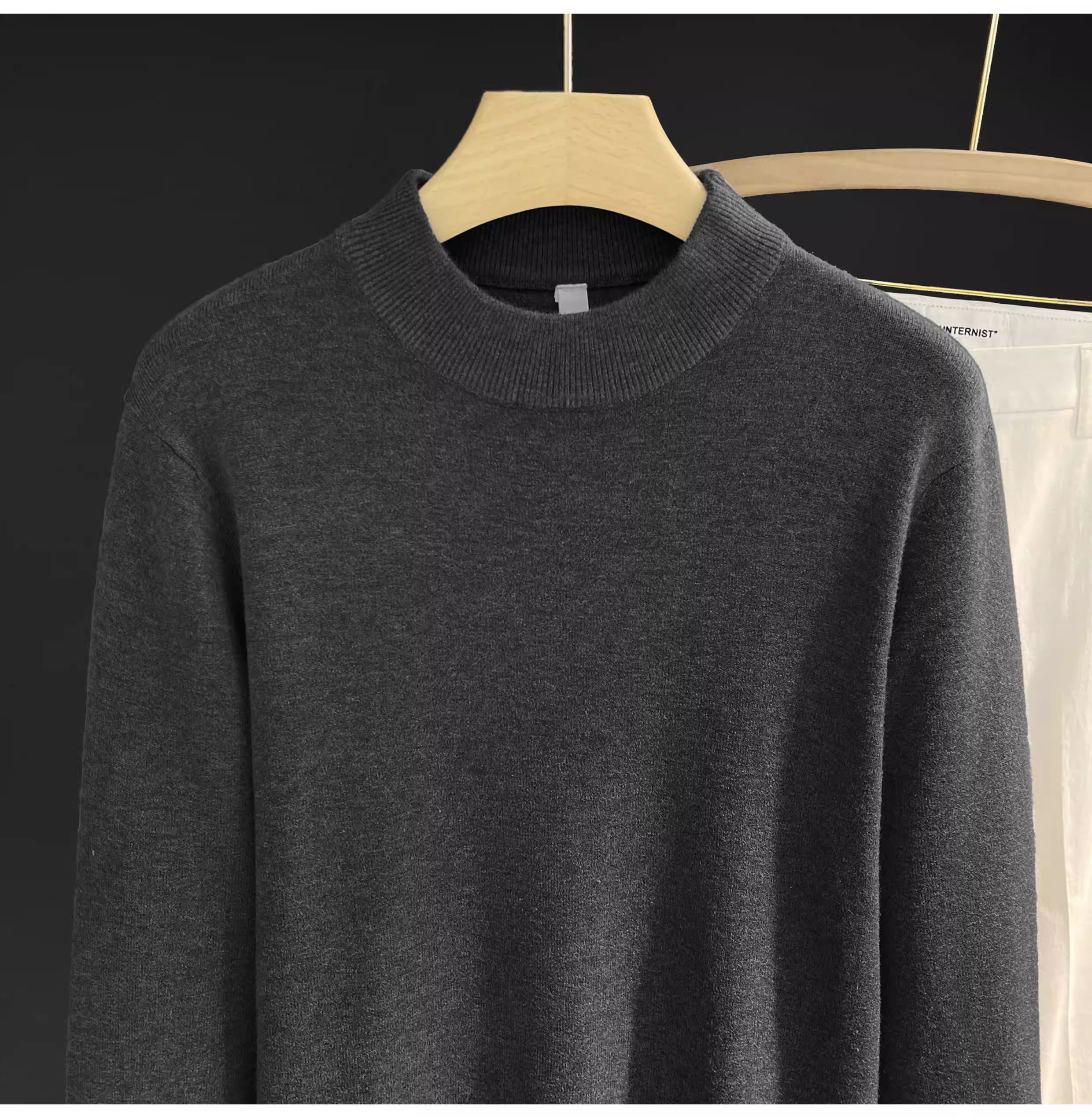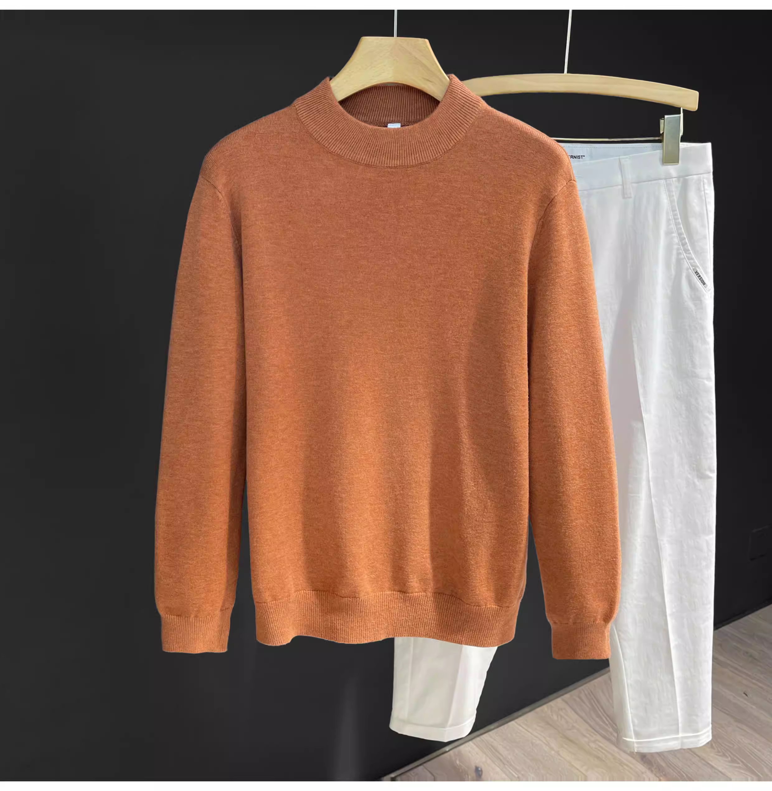 Áo len dệt kim cổ cao nửa cổ màu nâu LUUD dành cho nam, phong cách retro Hàn Quốc, màu trơn, dài tay, giản dị, áo len len cừu ấm áp