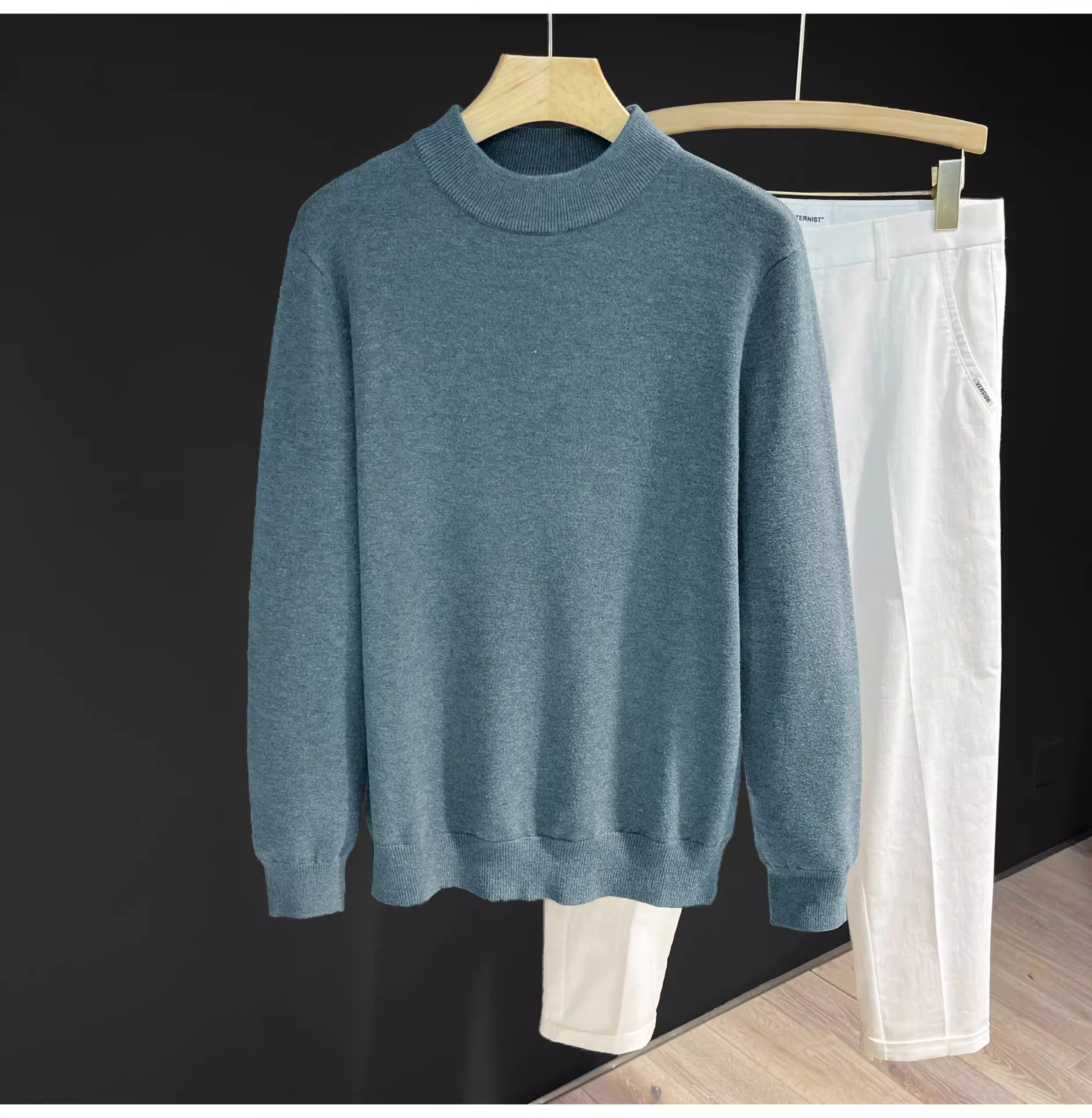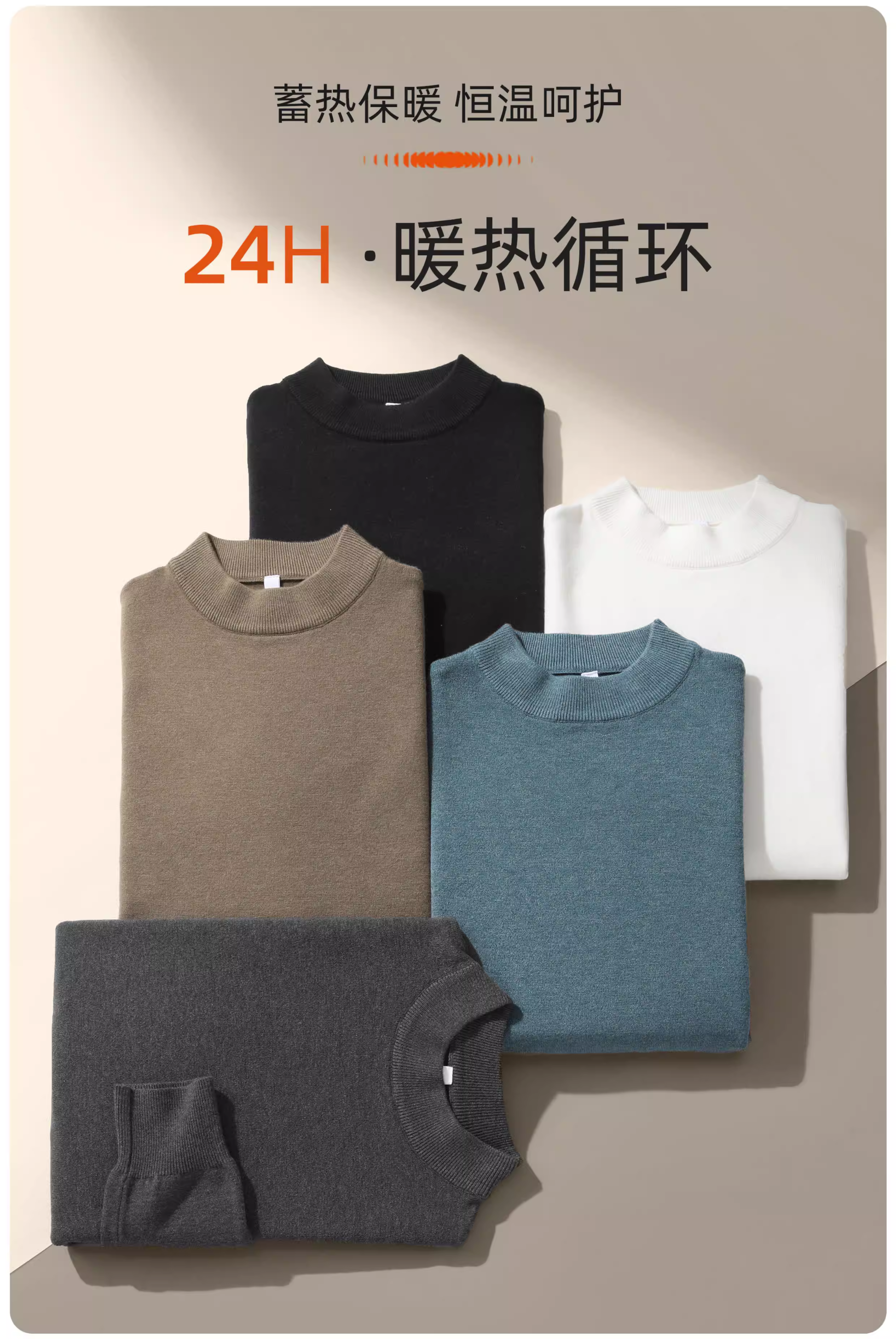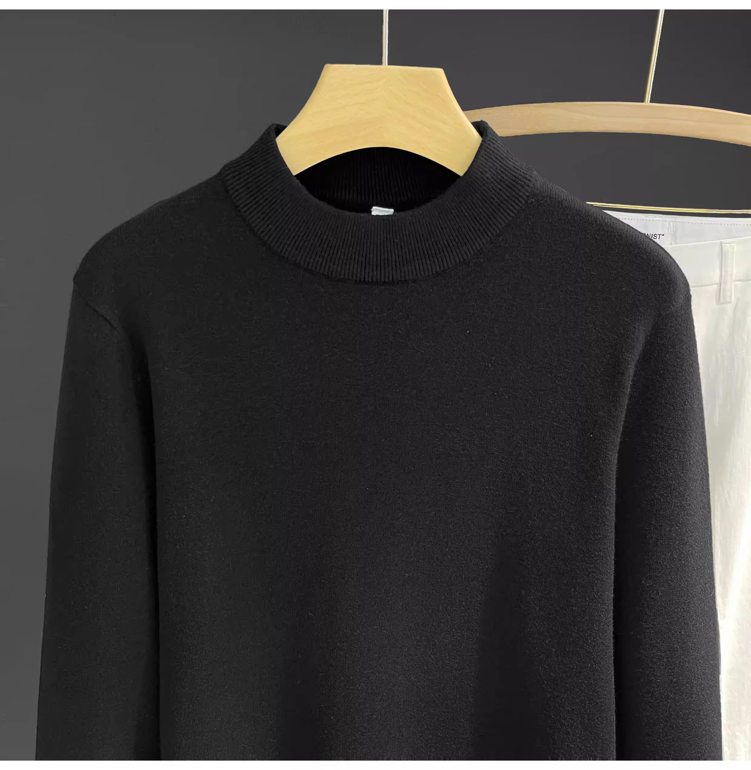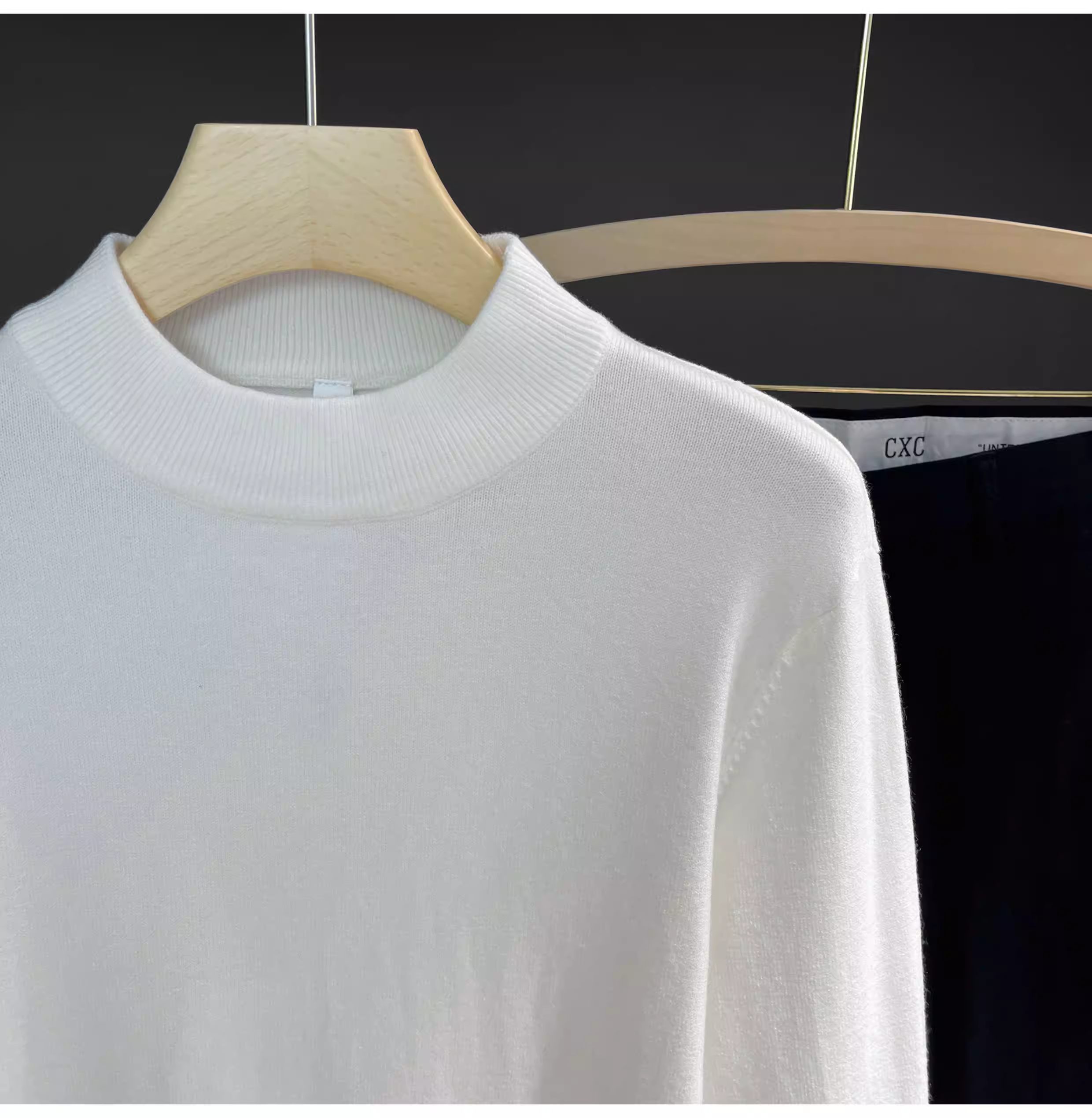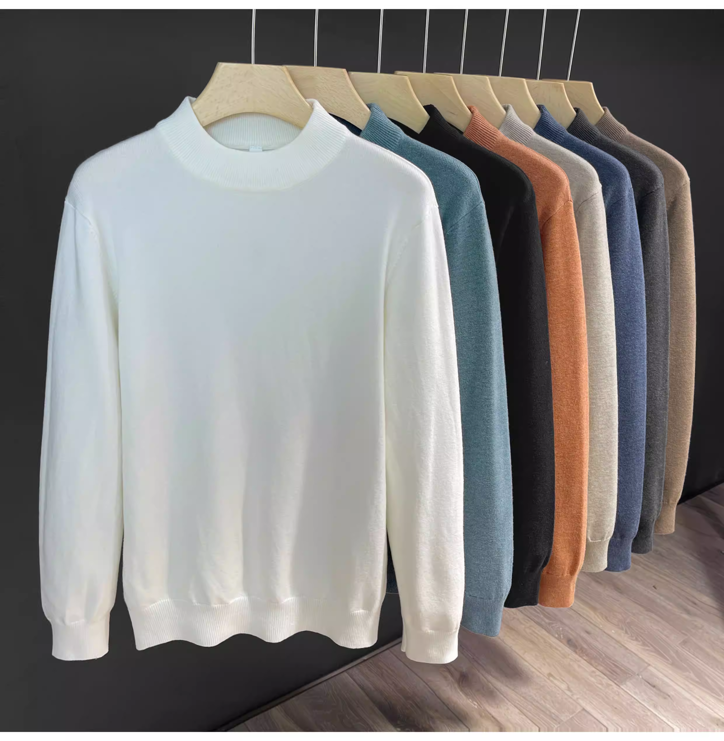 Áo len dệt kim cổ cao nửa cổ màu nâu LUUD dành cho nam, phong cách retro Hàn Quốc, màu trơn, dài tay, giản dị, áo len len cừu ấm áp