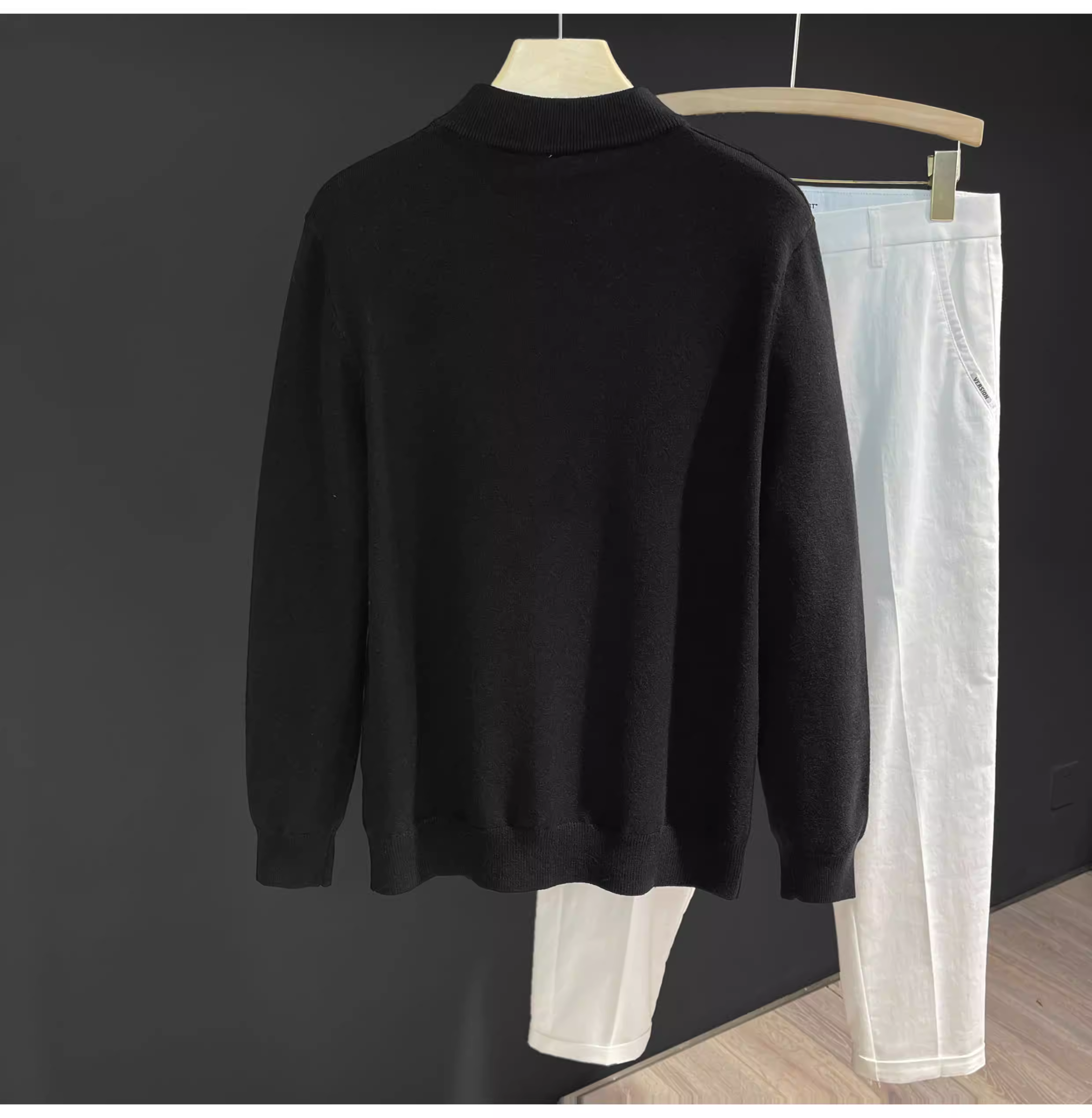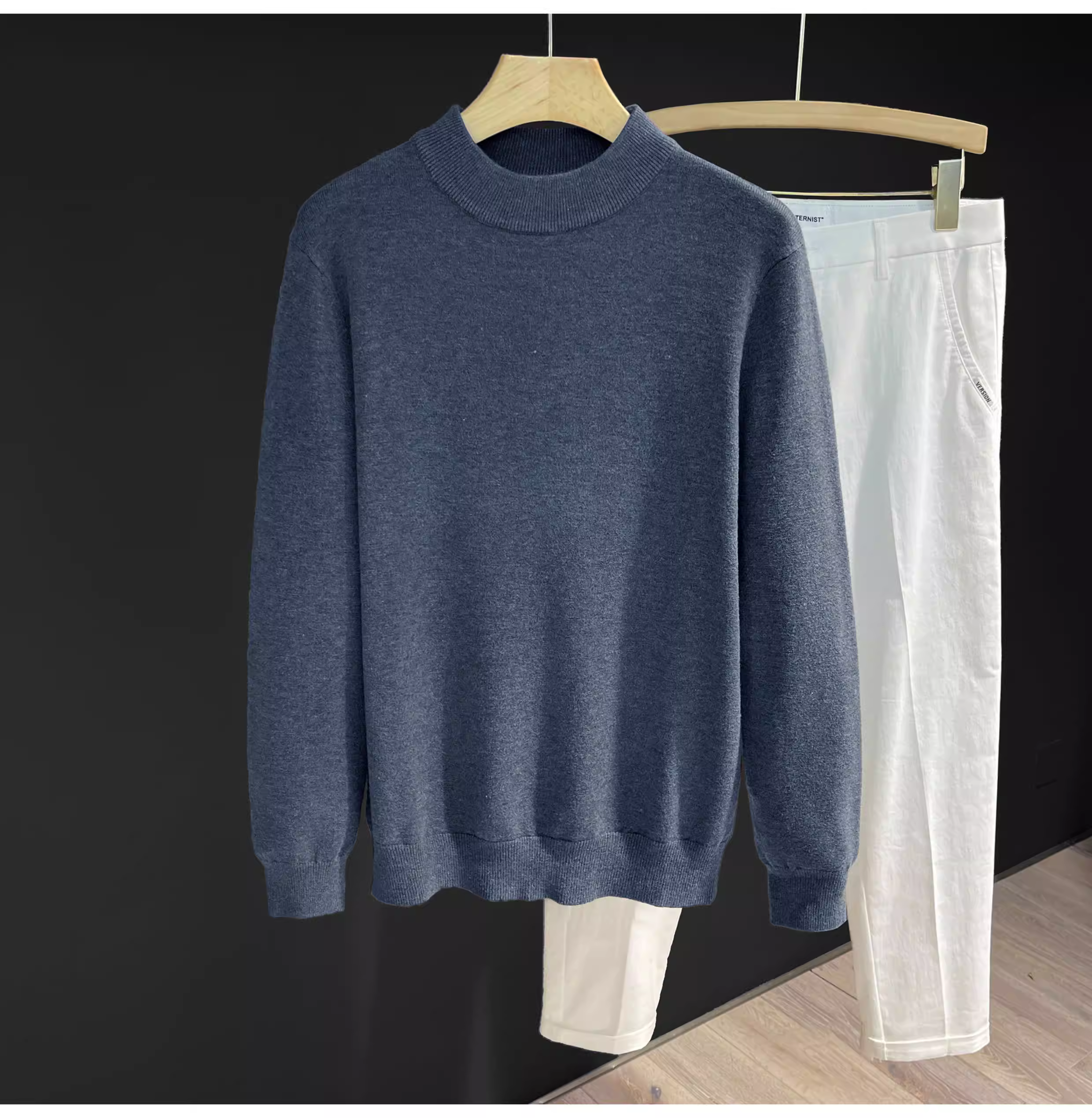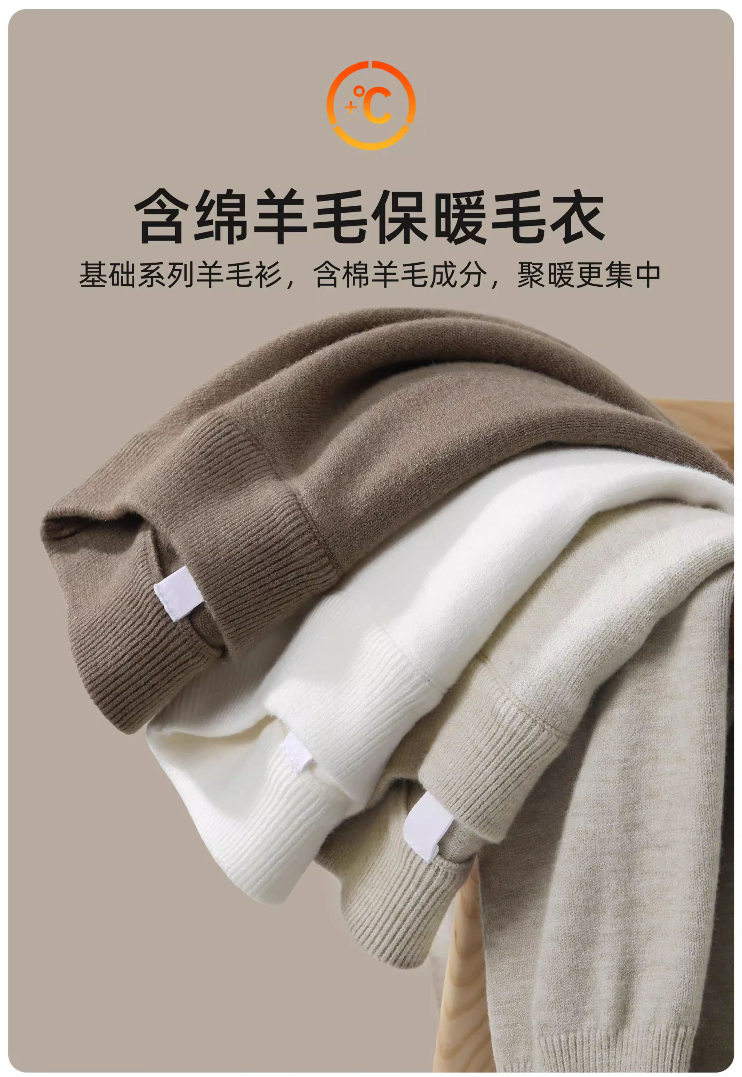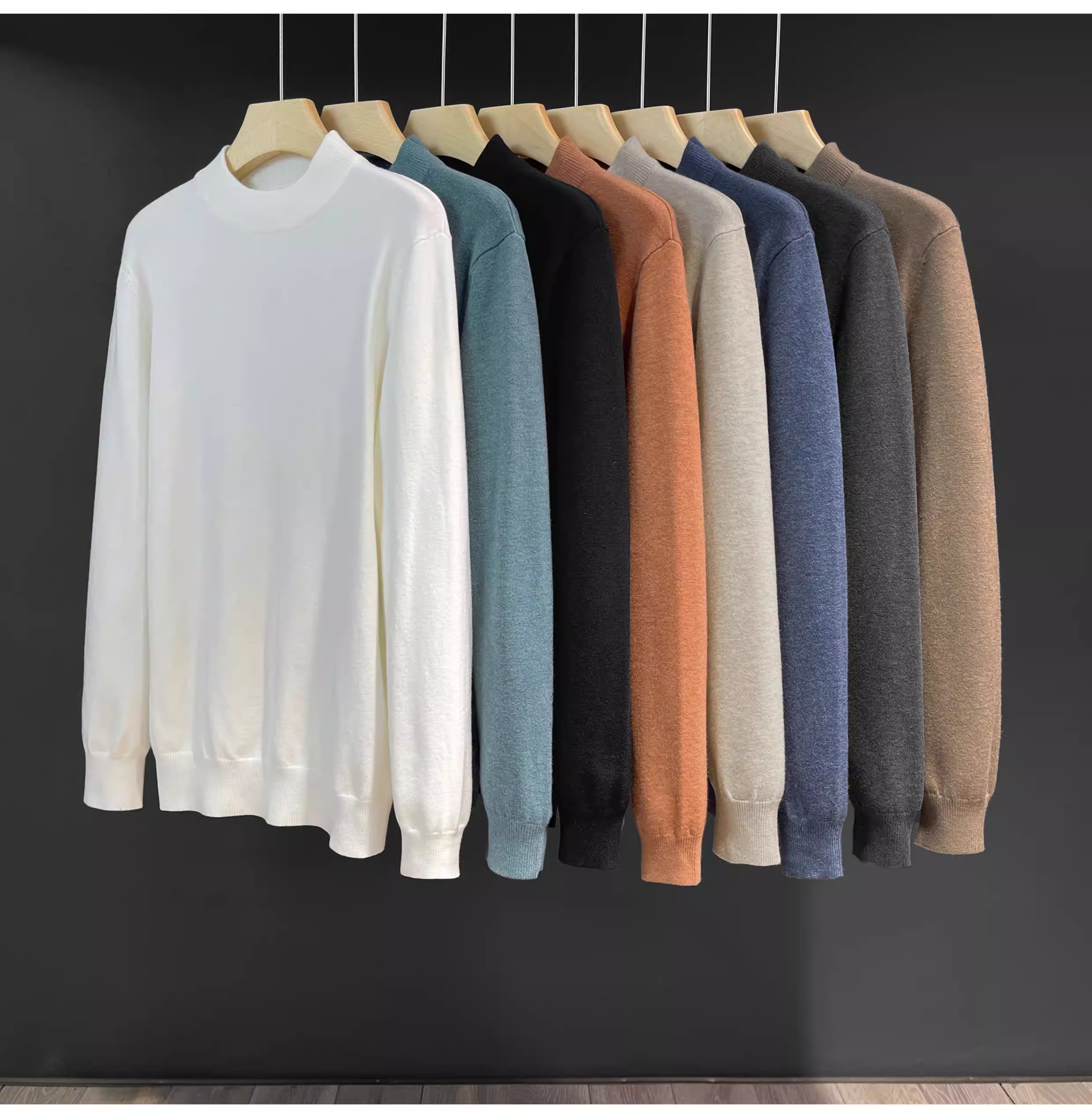 Áo len dệt kim cổ cao nửa cổ màu nâu LUUD dành cho nam, phong cách retro Hàn Quốc, màu trơn, dài tay, giản dị, áo len len cừu ấm áp