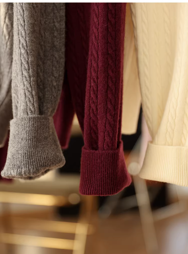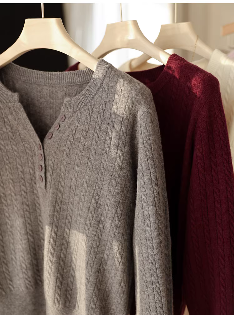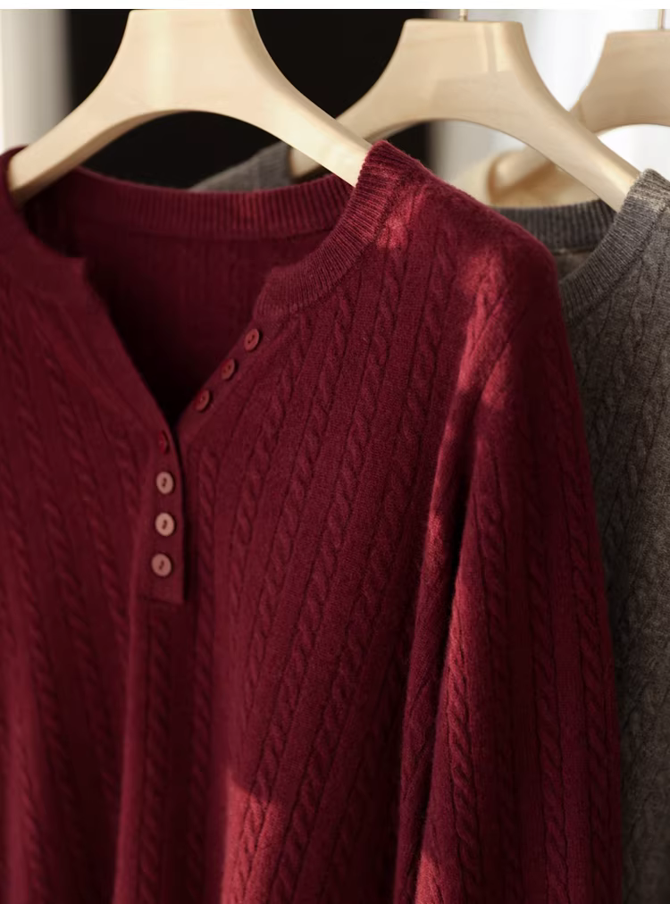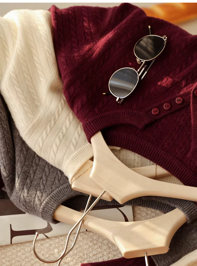 Áo len dệt kim cổ điển 100% len, cổ chữ V, dáng rộng, tôn dáng, áo len chui đầu cổ tròn ngắn dành cho nữ, mùa thu đông.