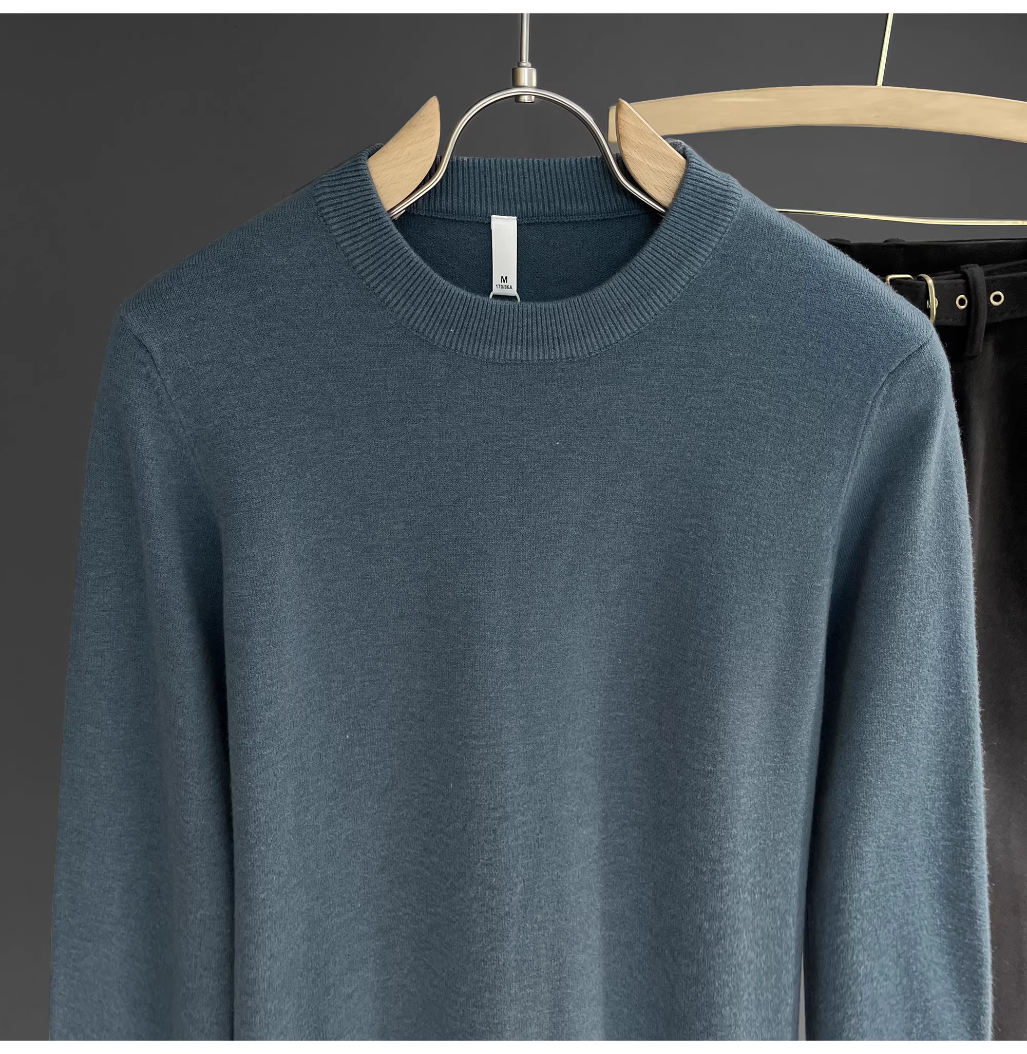 - Áo len dệt kim cổ tròn ấm áp mùa đông LUUD dành cho nam, áo sơ mi ôm sát màu trơn đơn giản.