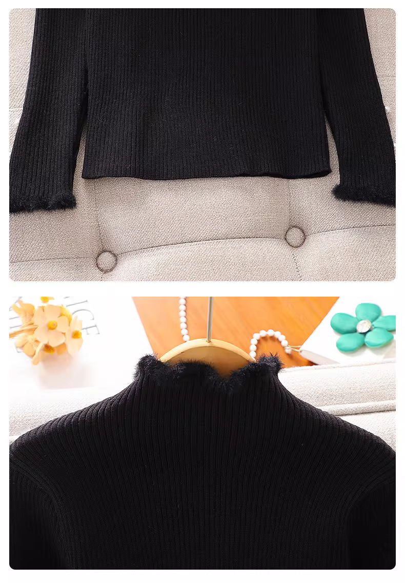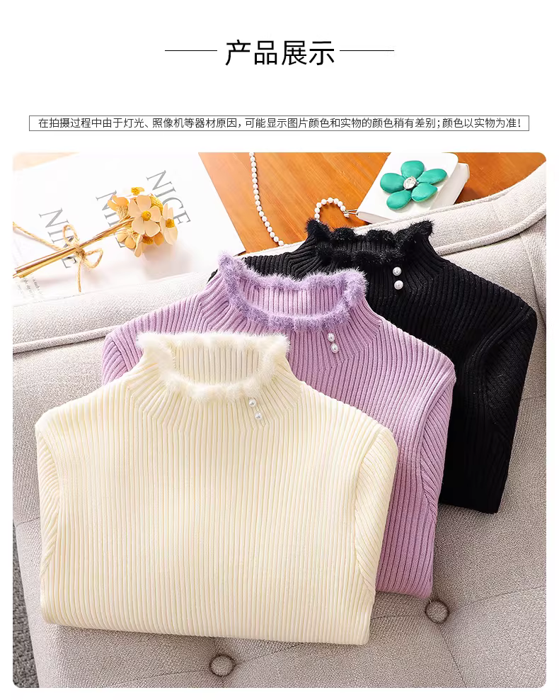 - Áo len dệt kim dành cho nữ lớp nền quần áo mùa đông Áo len dày nửa cổ lọ dành cho bé gái Áo len bên trong ấm áp mùa thu đông dành cho trẻ em