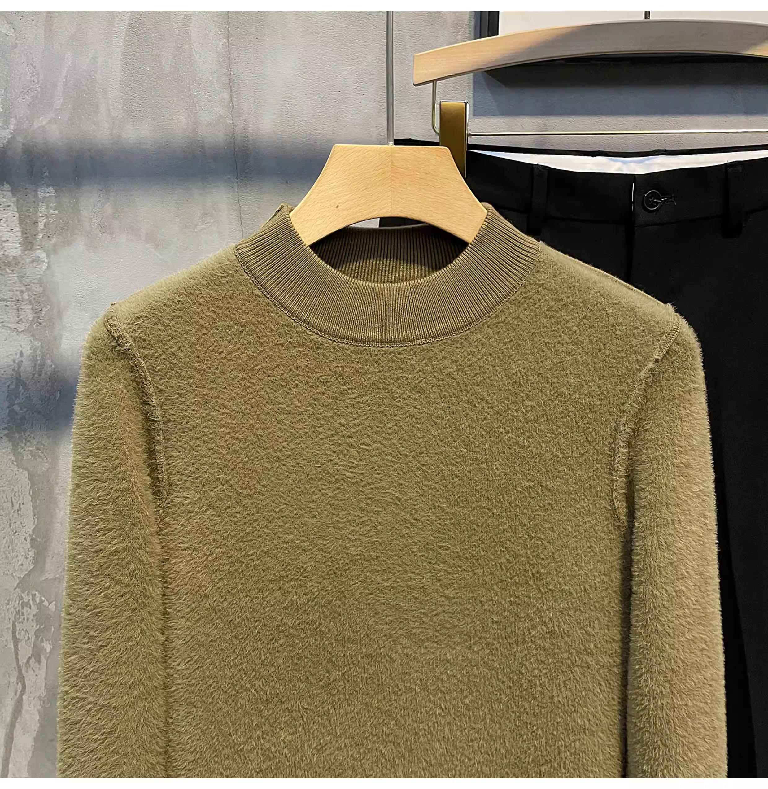 - Áo len dệt kim dày có cổ giữa tích hợp lông cừu LUUD dành cho nam, áo len dệt kim cổ cao nửa cổ mùa đông đa năng, hợp thời trang.