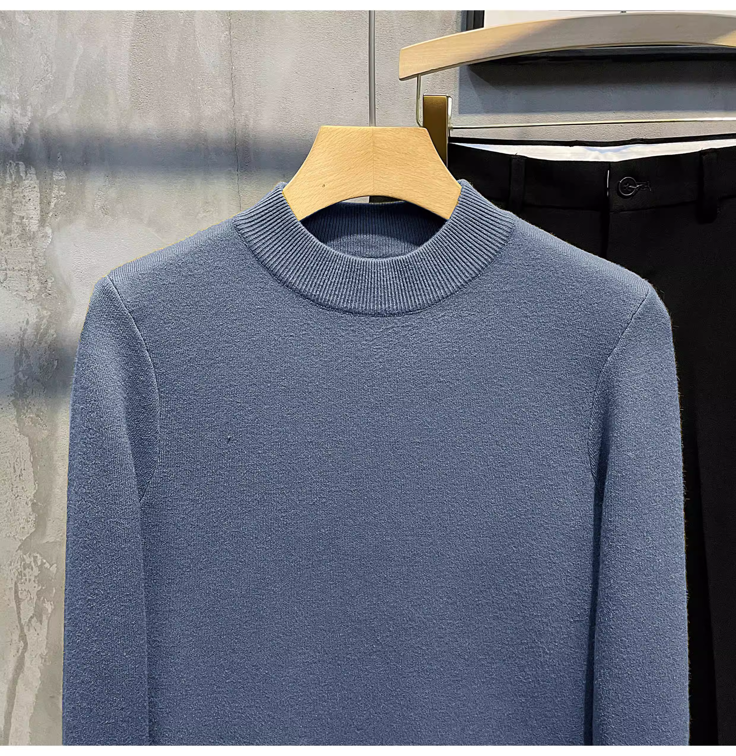 Áo len dệt kim dày có cổ giữa tích hợp lông cừu LUUD dành cho nam, áo len dệt kim cổ cao nửa cổ mùa đông đa năng, hợp thời trang.
