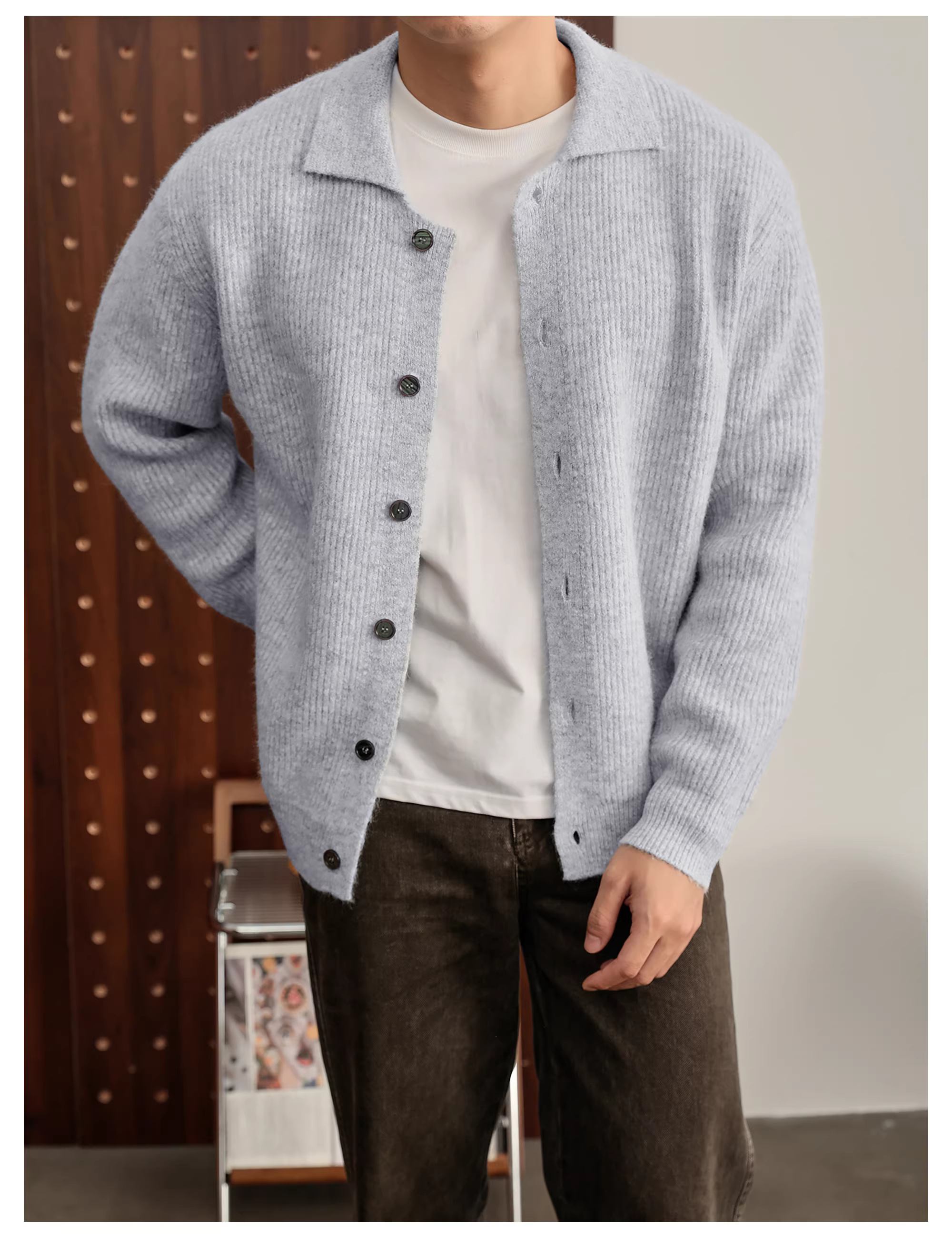 - Áo len dệt kim dày dặn pha len mềm mại và thân thiện với da LUUD dành cho nam, áo khoác len có cổ phối màu thông thường