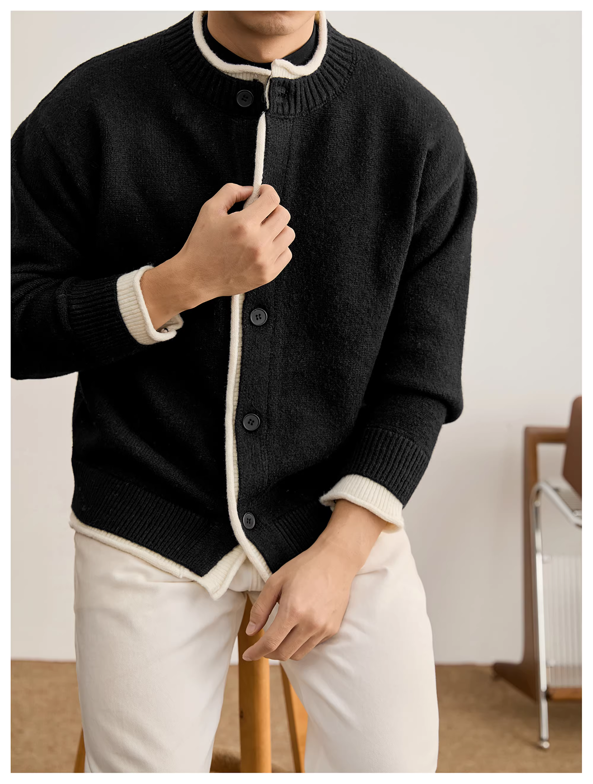 Áo len dệt kim giả hai mảnh viền cuốn LUUD dành cho nam, áo khoác len dày dặn, chất liệu lông cừu