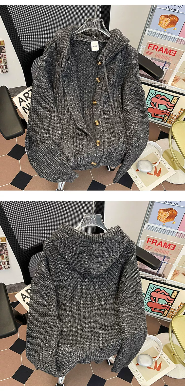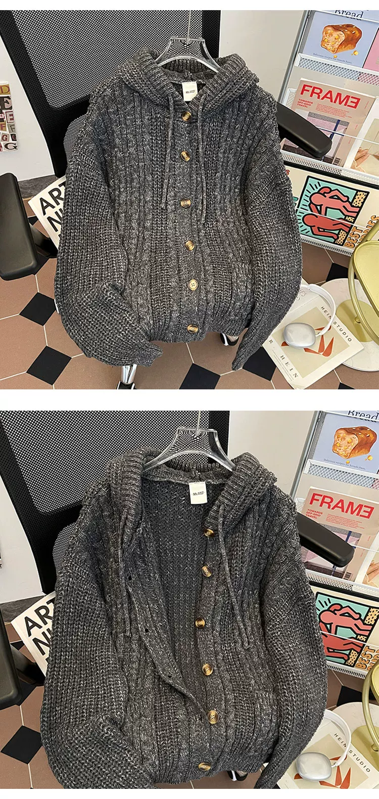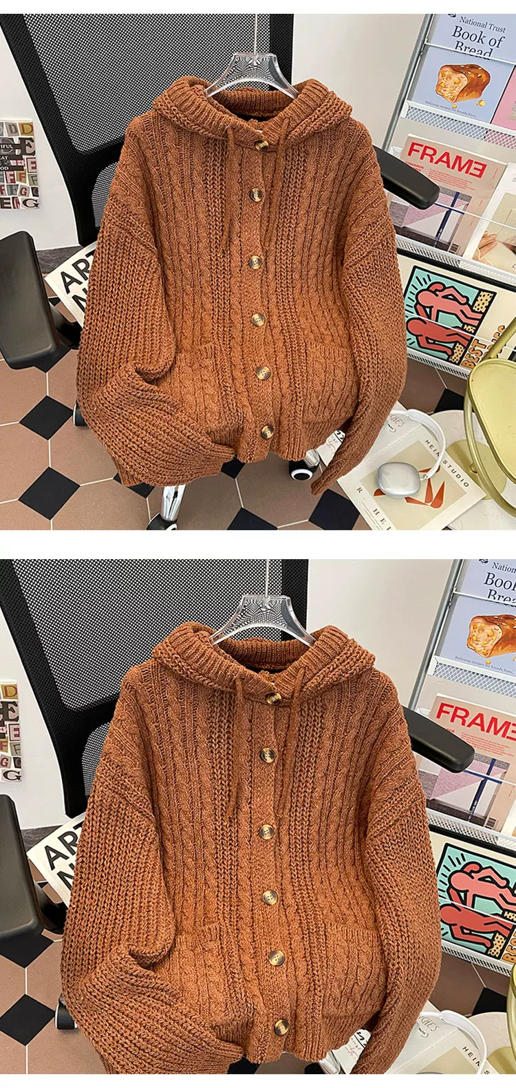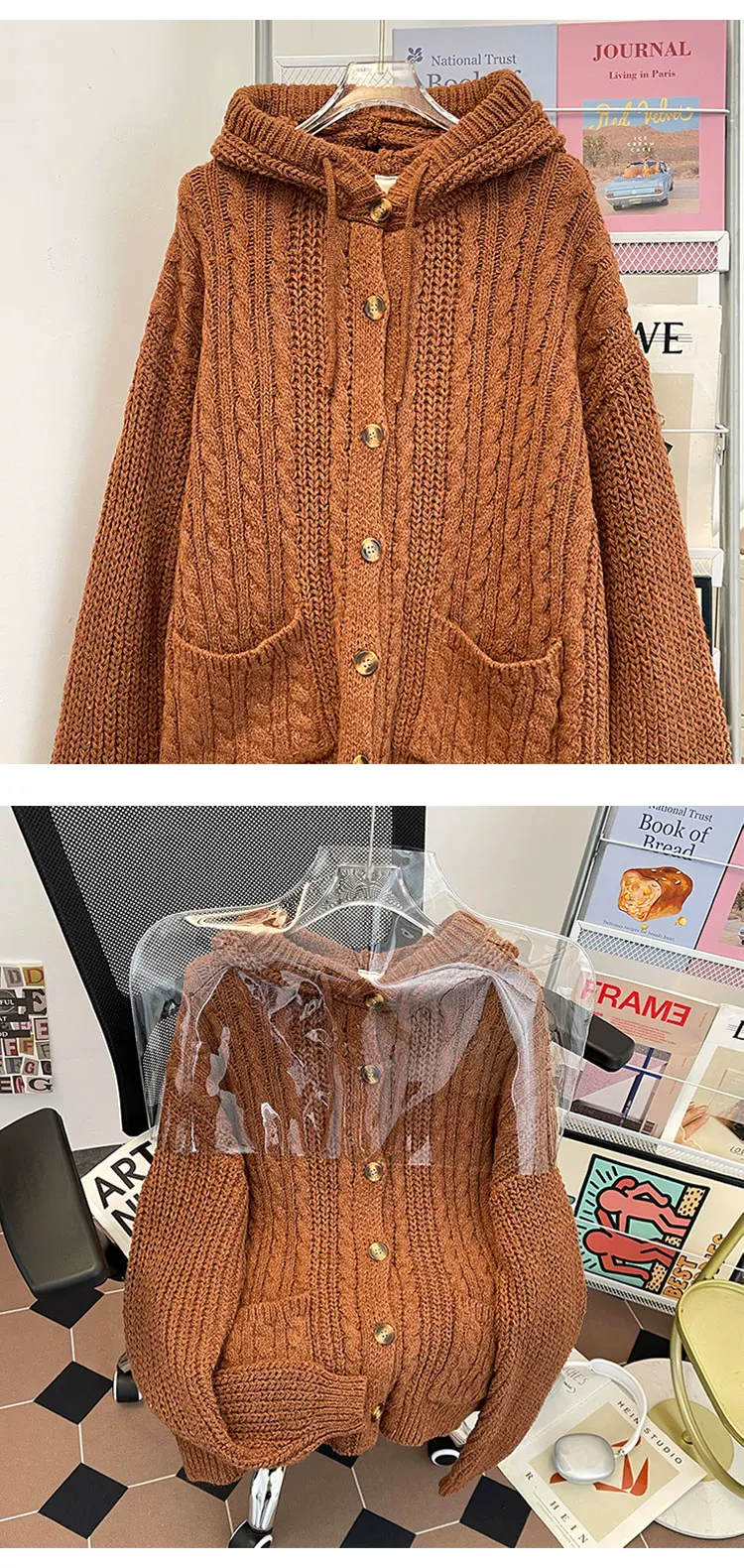 - Áo len dệt kim kiểu Mỹ cổ điển dành cho nam, áo len có mũ thời trang mùa thu dày dặn, áo cardigan dày phong cách thoải mái.