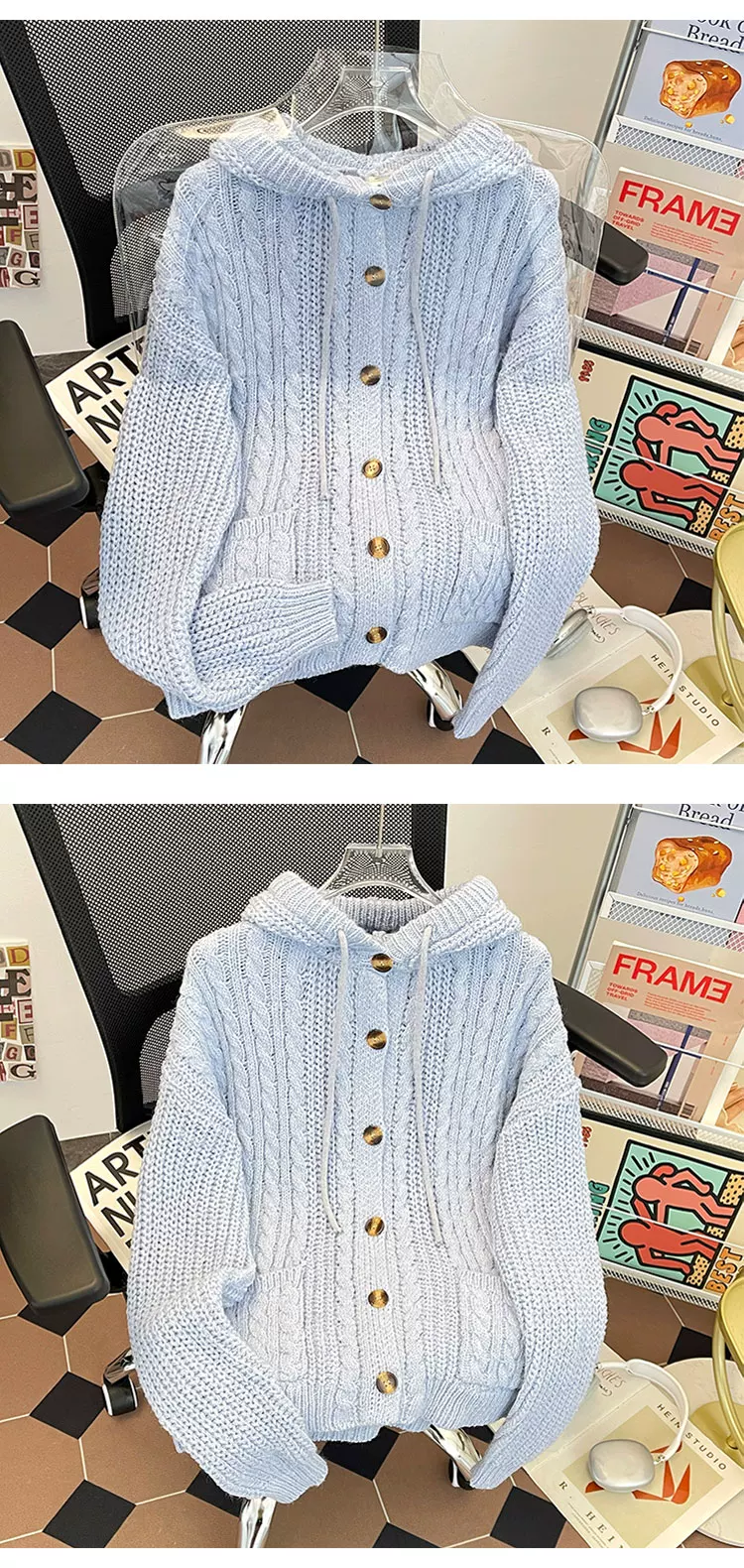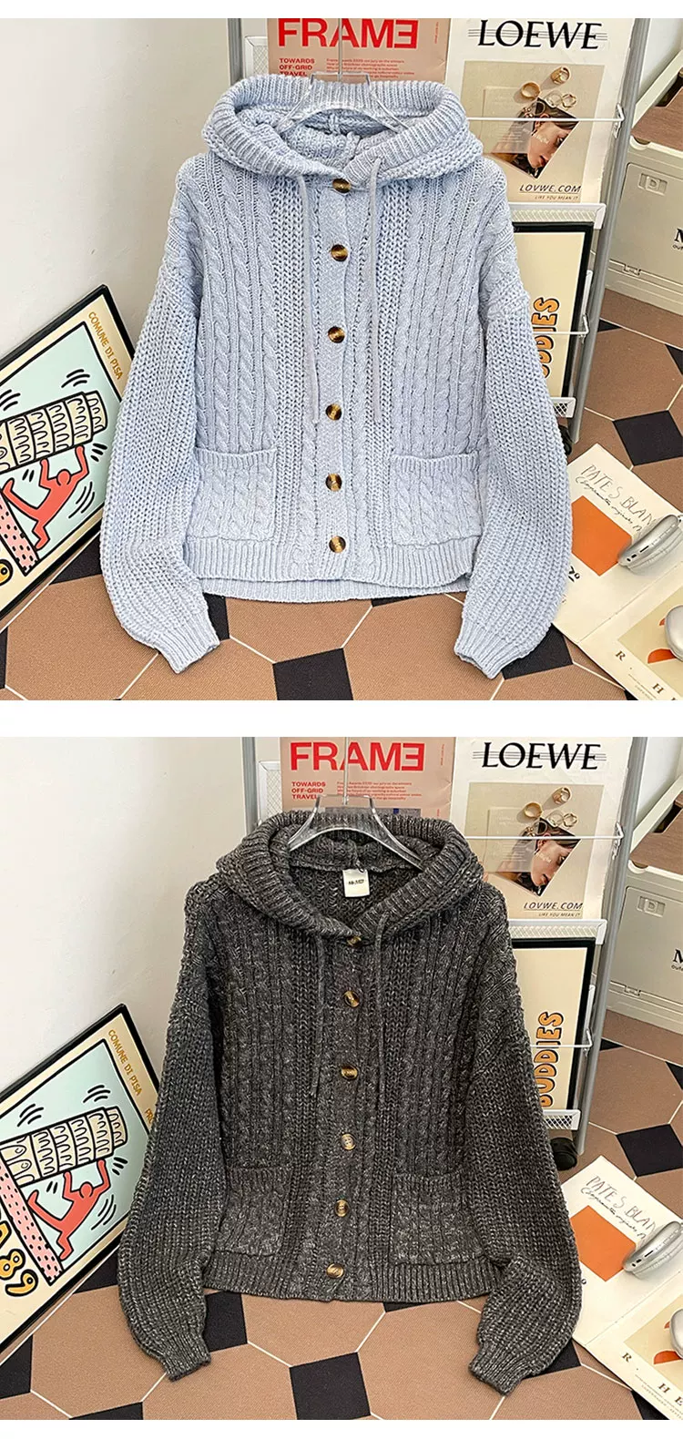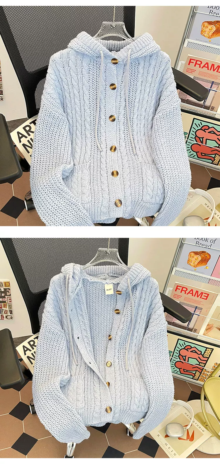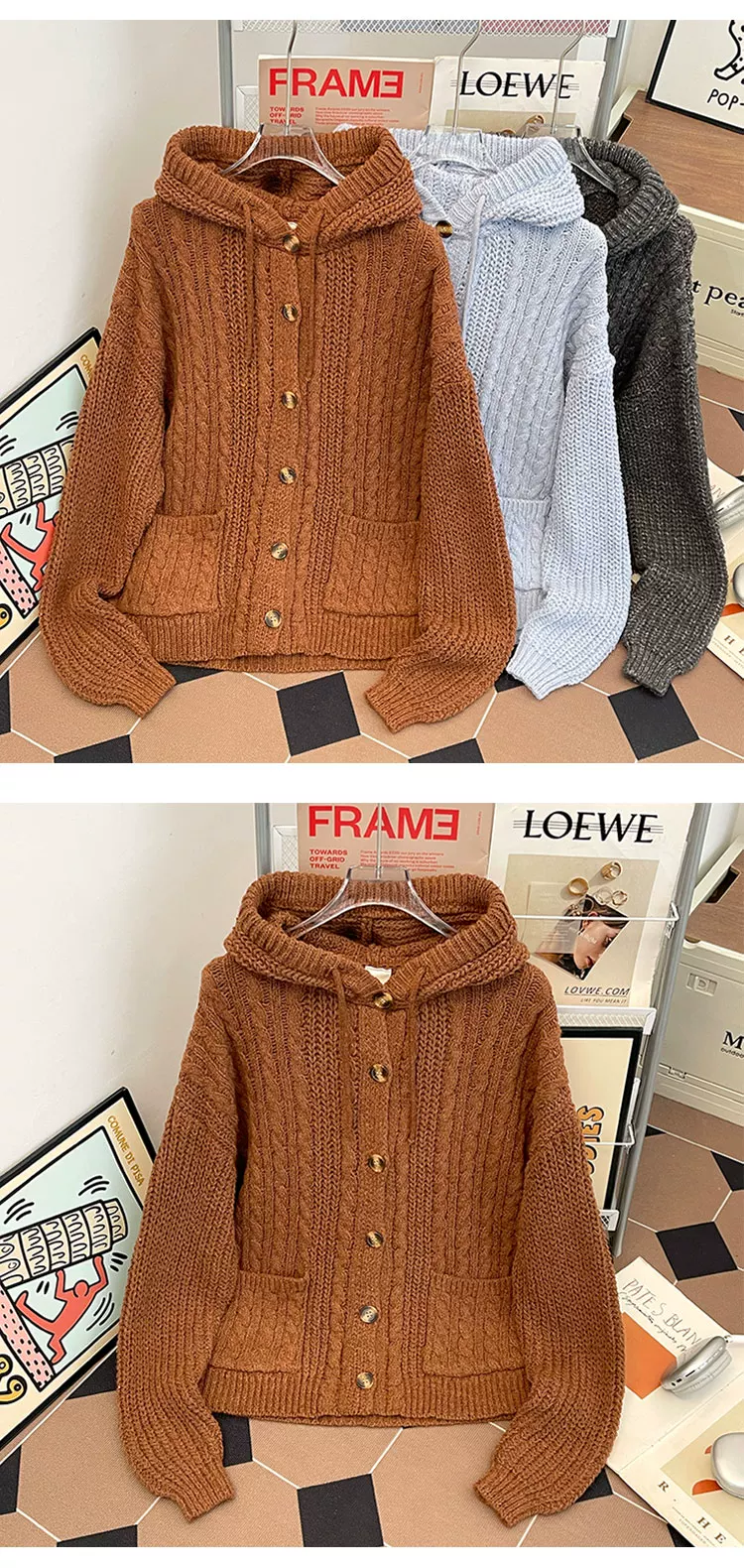 - Áo len dệt kim kiểu Mỹ cổ điển dành cho nam, áo len có mũ thời trang mùa thu dày dặn, áo cardigan dày phong cách thoải mái.