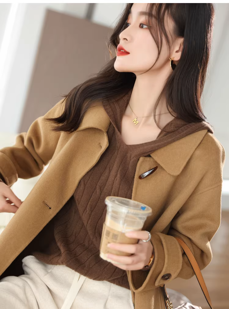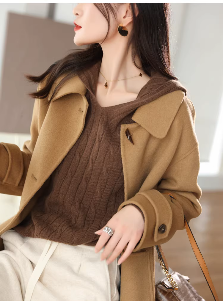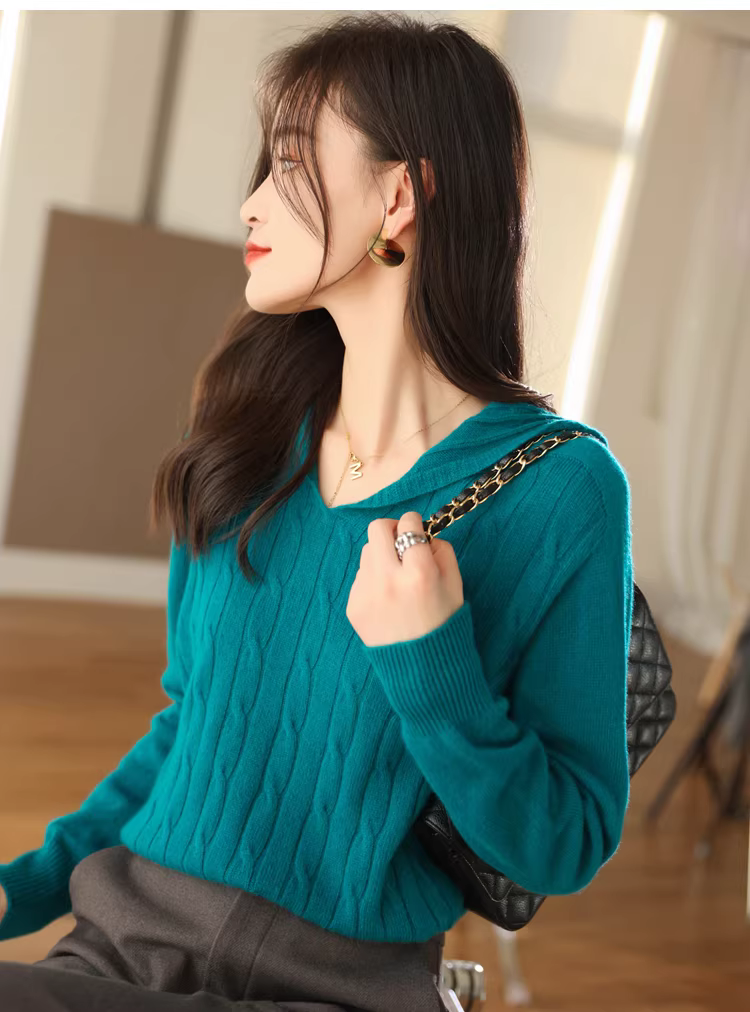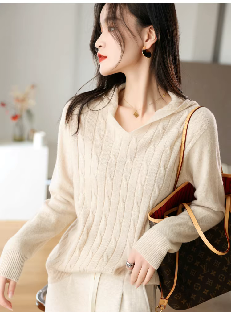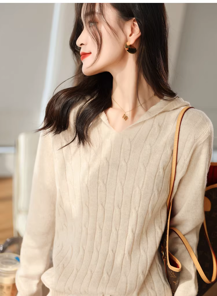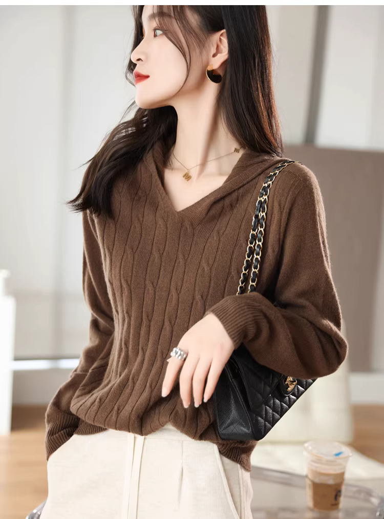 - Áo len dệt kim liền mạch có mũ trùm đầu bằng len hoàn toàn dành cho nữ trong mùa thu đông.