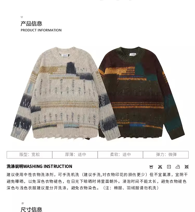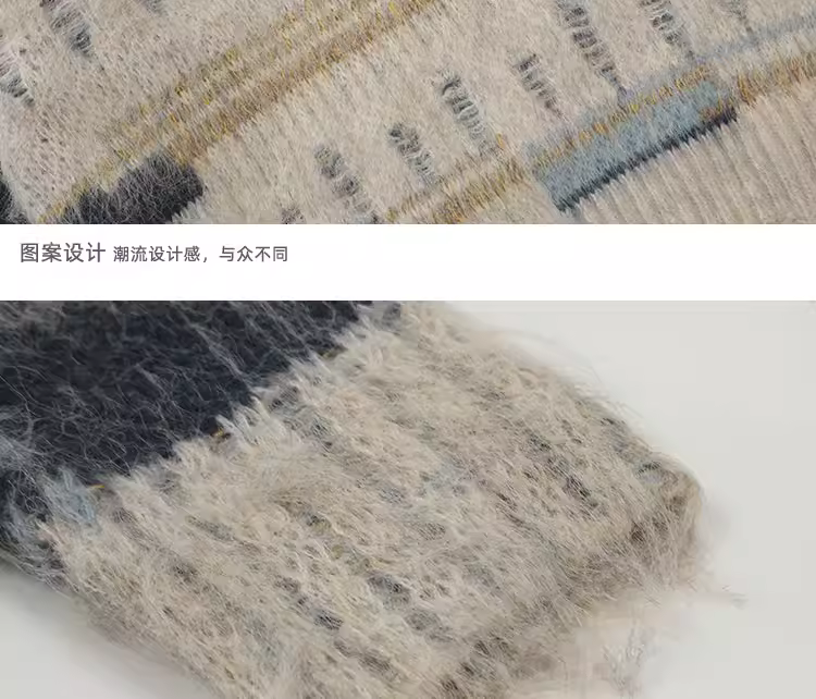 - Áo len dệt kim màu phối phong cách retro Mỹ của KKyesiou dành cho nam và nữ, áo len cặp đôi đa năng phong cách dân tộc