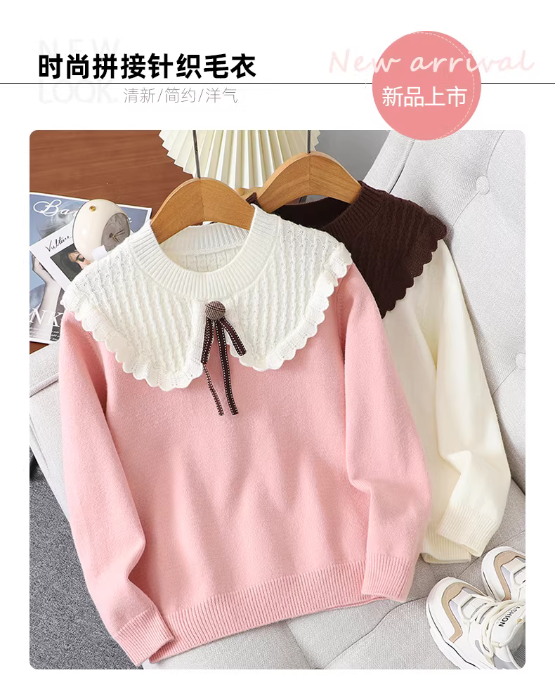 - Áo len dệt kim nữ bé gái thu đông 2025 kiểu mới dành cho trẻ lớn, áo kiểu cổ búp bê thời trang, áo mùa đông
