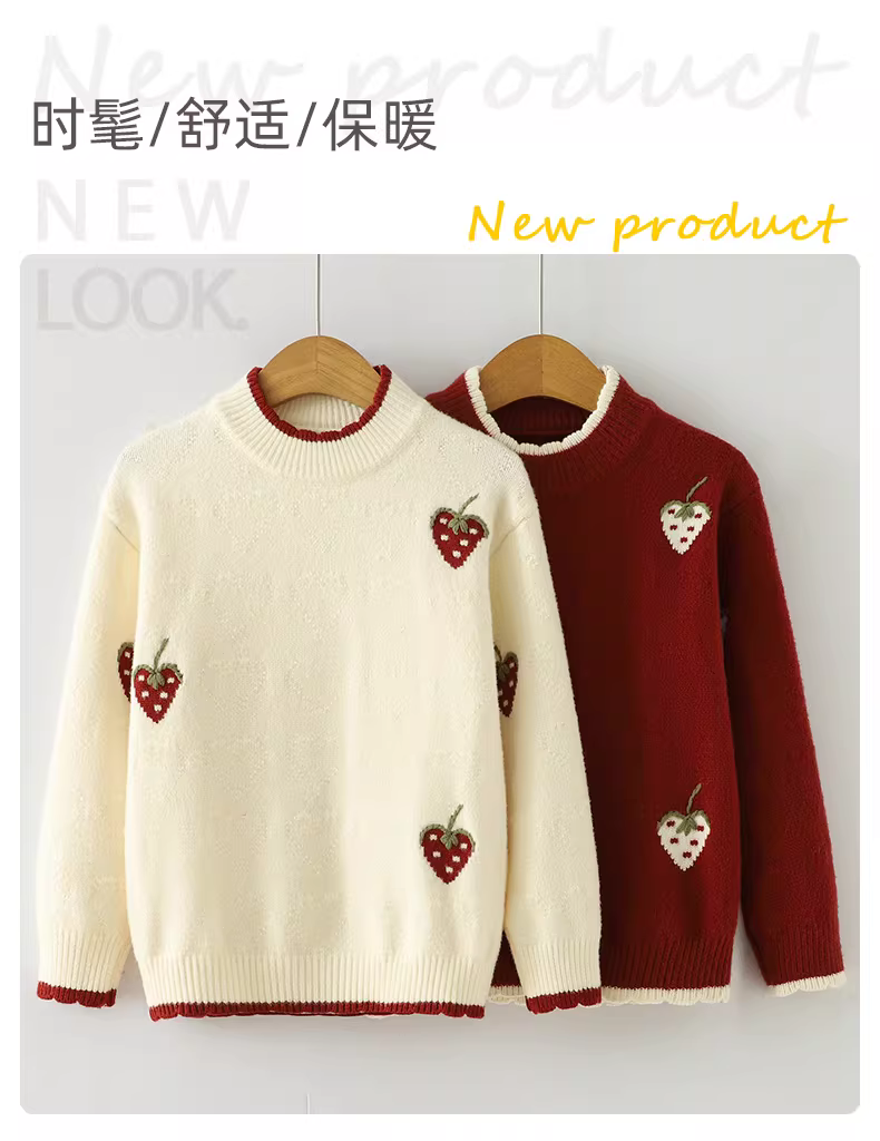 - Áo len đỏ mùa đông cho bé gái 2025, chất liệu dệt kim dày dặn mới, áo mặc mùa thu đông, áo lót Giáng sinh cho bé gái