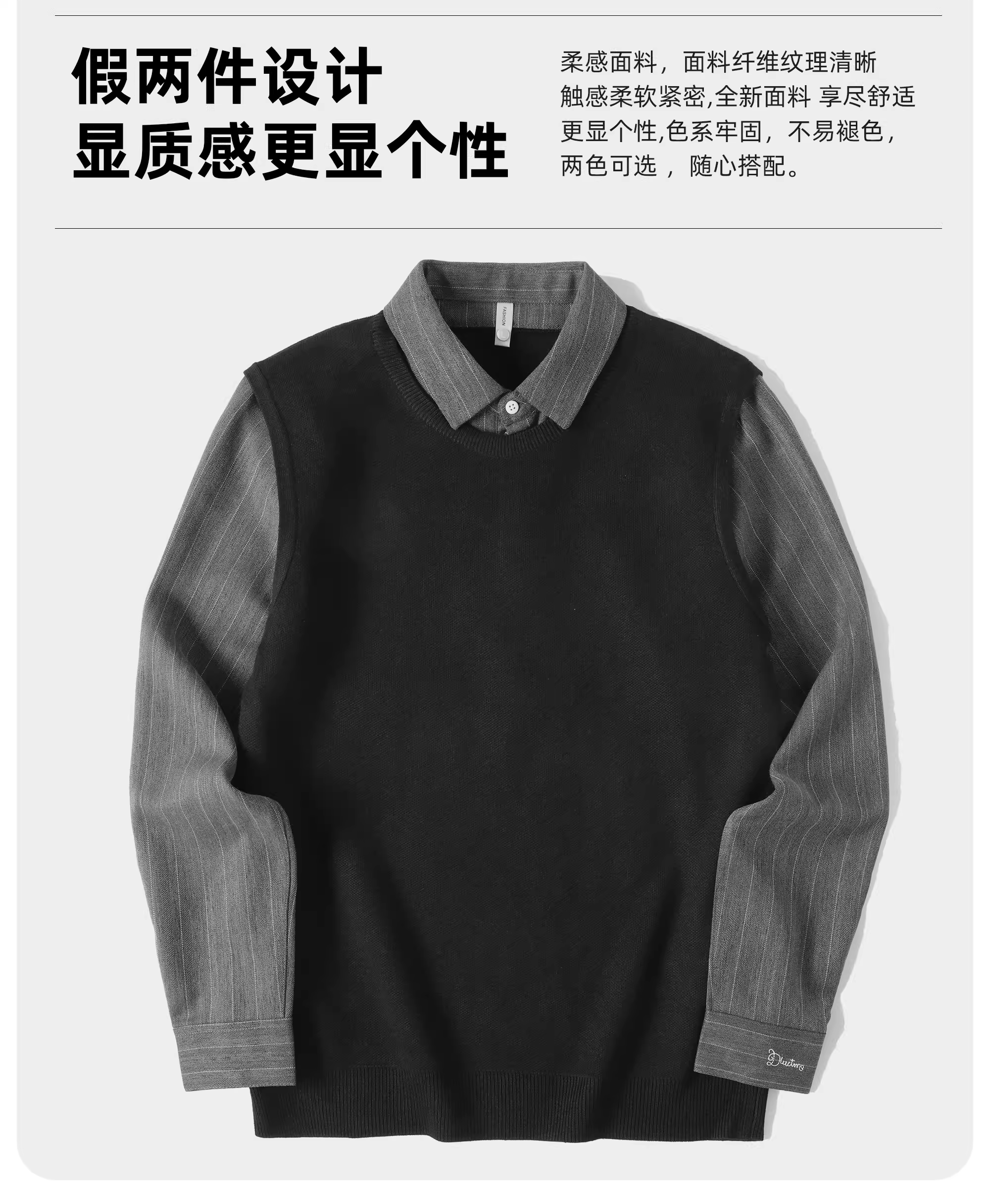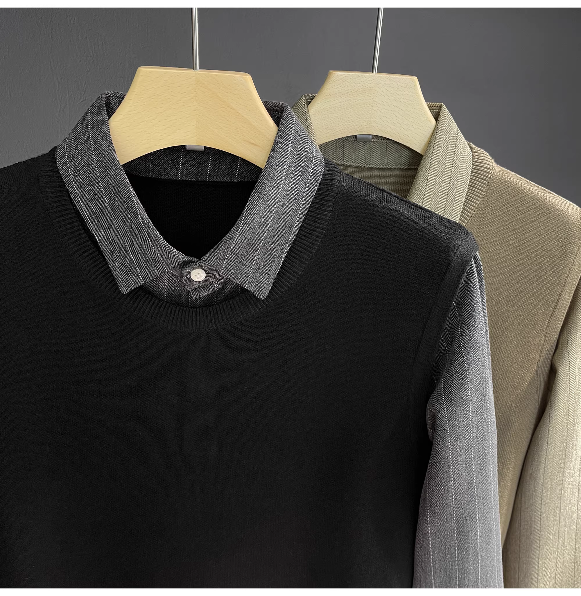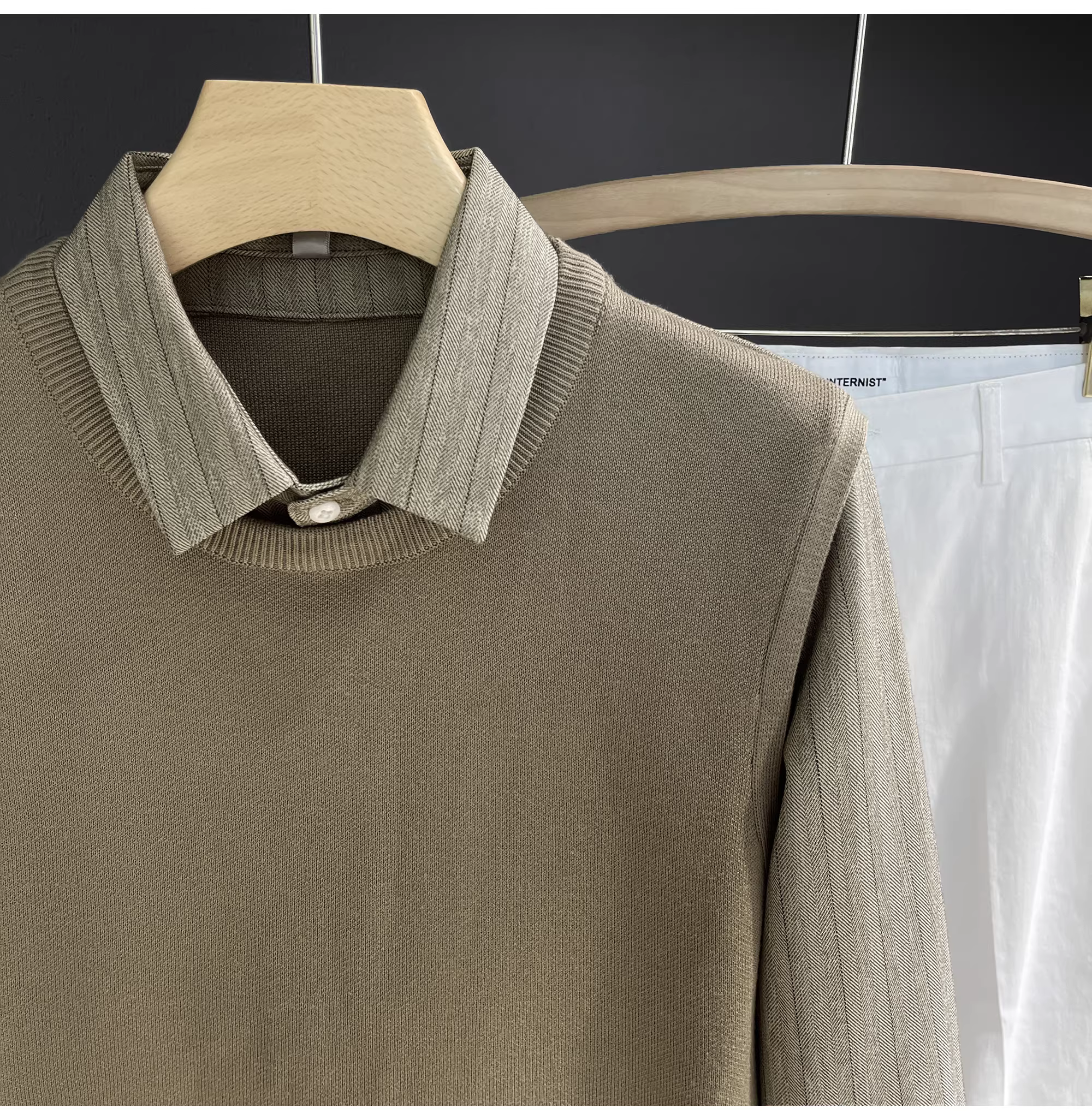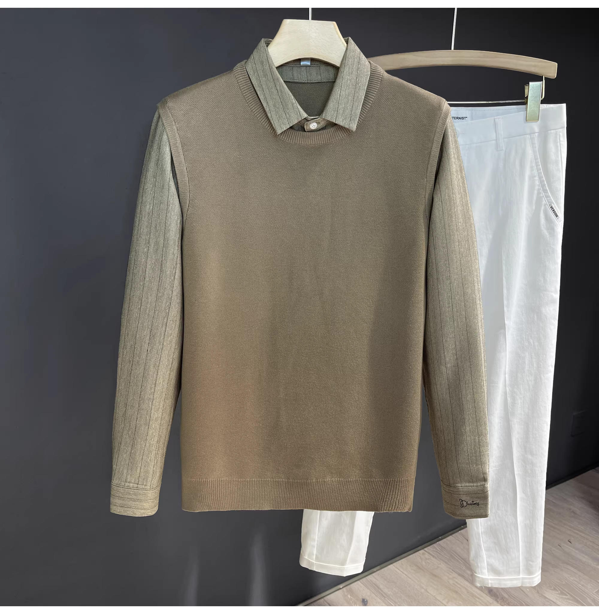 - Áo len hai mảnh cổ điển sang trọng LUUD mang lại cảm giác cao cấp, áo sơ mi dệt kim phối màu phong cách quý ông với cổ áo lật, áo khoác nỉ dành cho nam.
