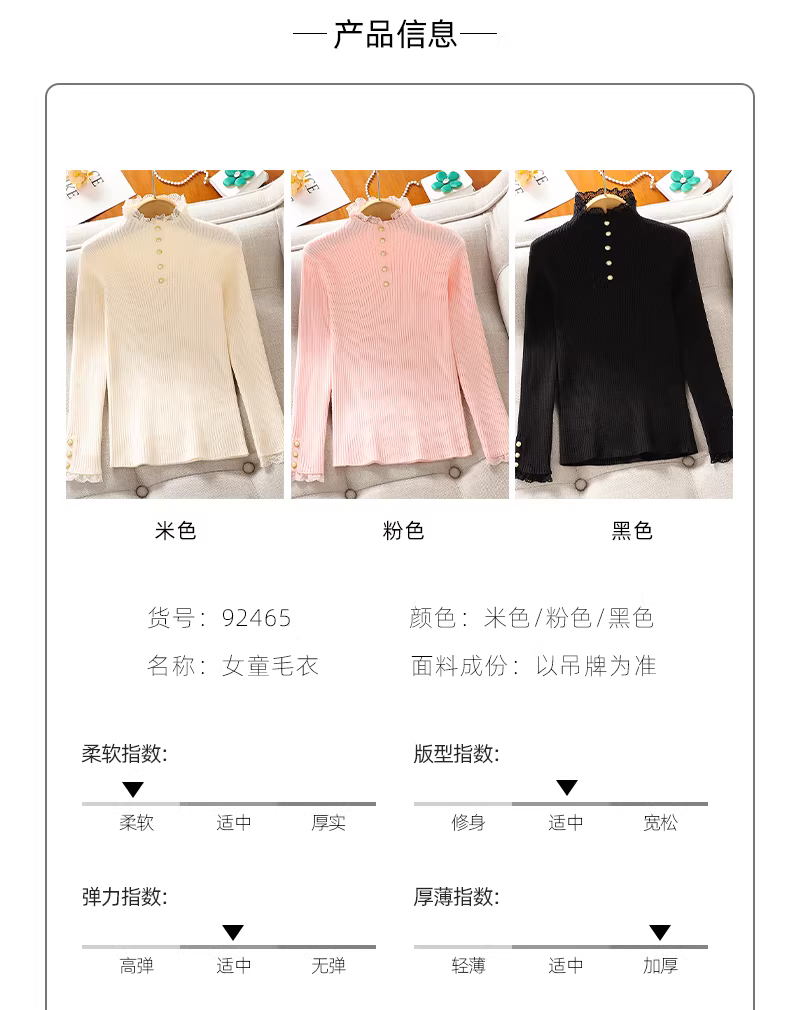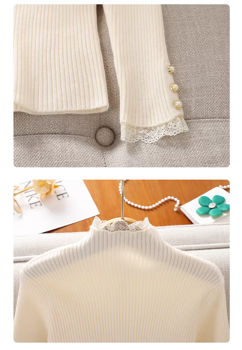 Áo len lót trong cho bé gái 2025, mẫu mới thu đông, viền ren, chất liệu dệt kim, kiểu dáng thời trang
