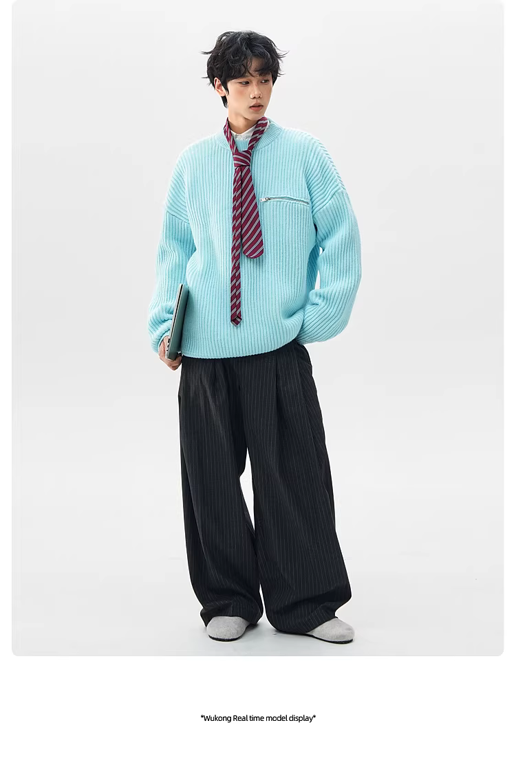 - Áo len nam cổ tròn có khóa kéo, chất liệu dệt kim, kiểu dáng cổ điển mùa đông của Ngộ Không, thương hiệu thời thượng, dáng rộng, áo len giữ ấm cho cặp đôi.