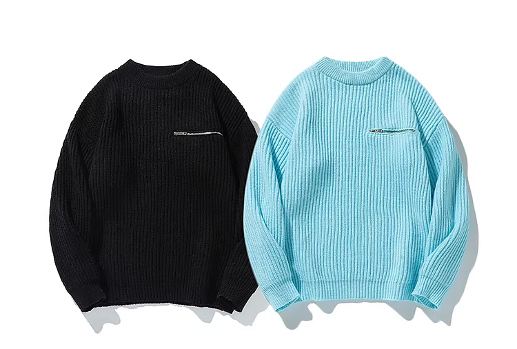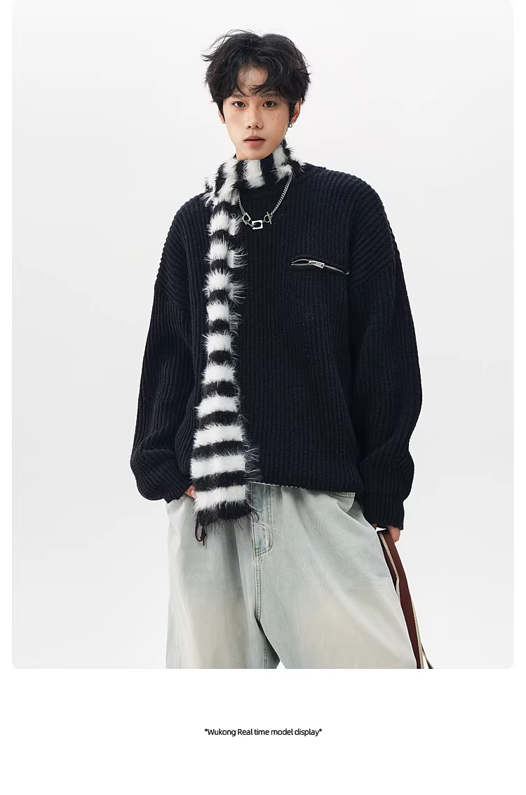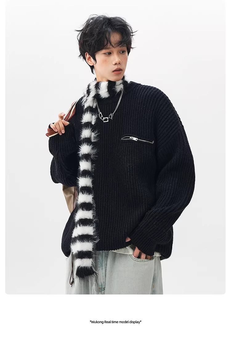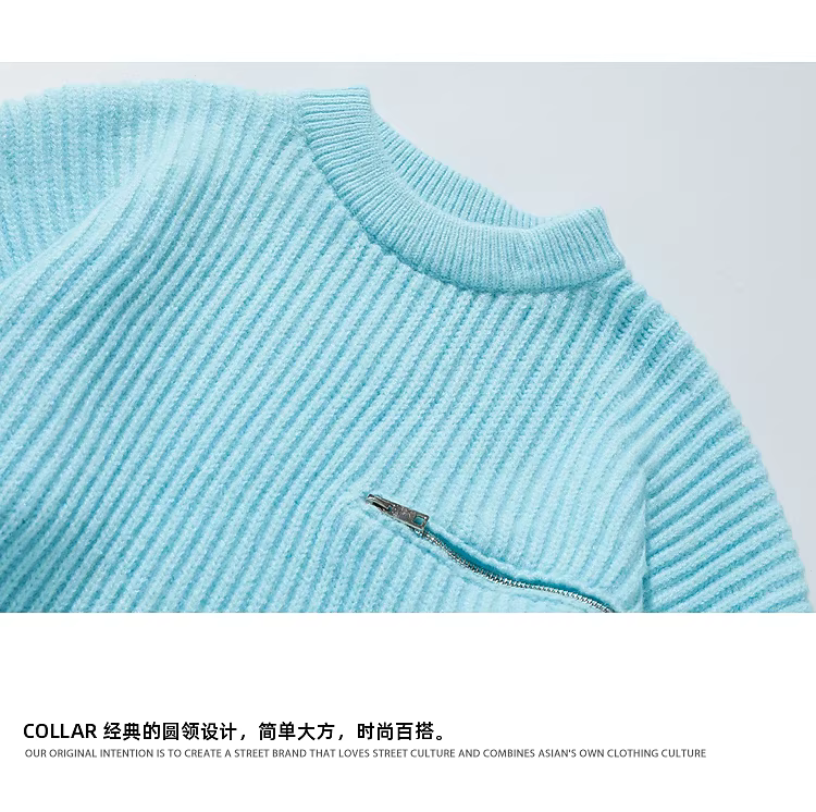 Áo len nam cổ tròn có khóa kéo, chất liệu dệt kim, kiểu dáng cổ điển mùa đông của Ngộ Không, thương hiệu thời thượng, dáng rộng, áo len giữ ấm cho cặp đôi.