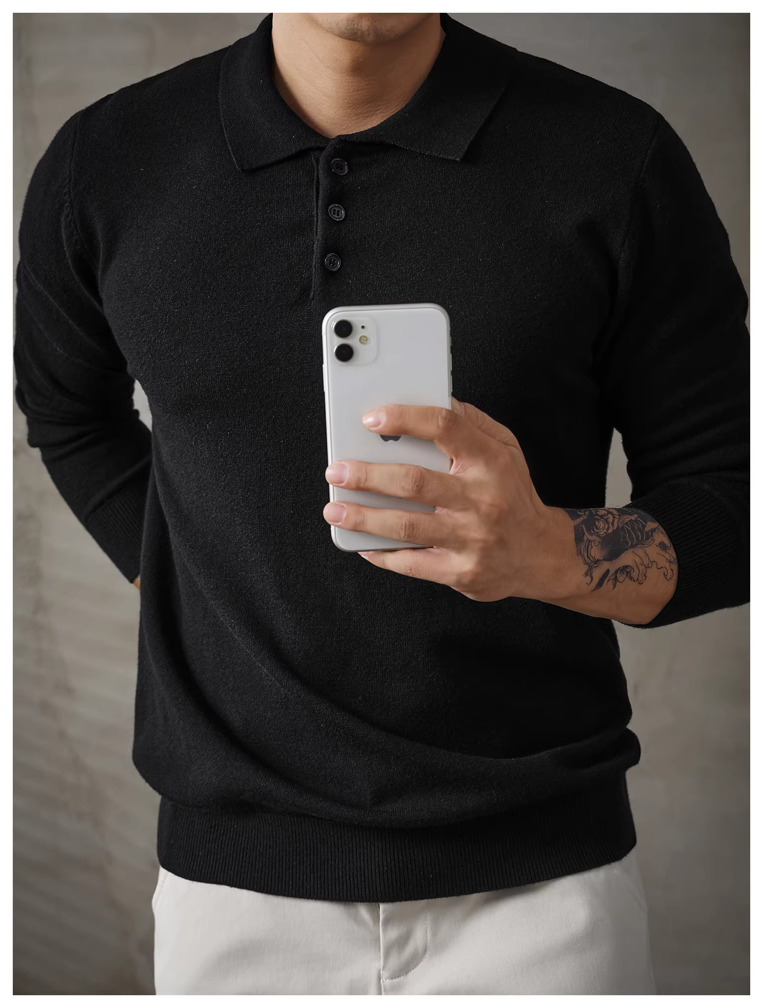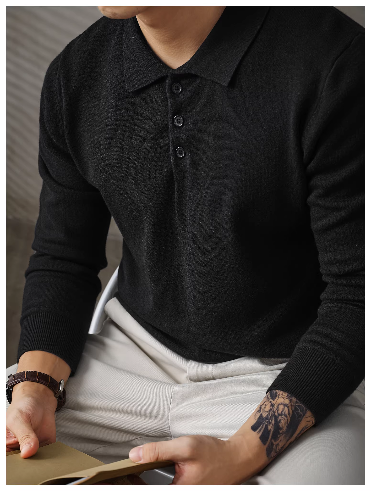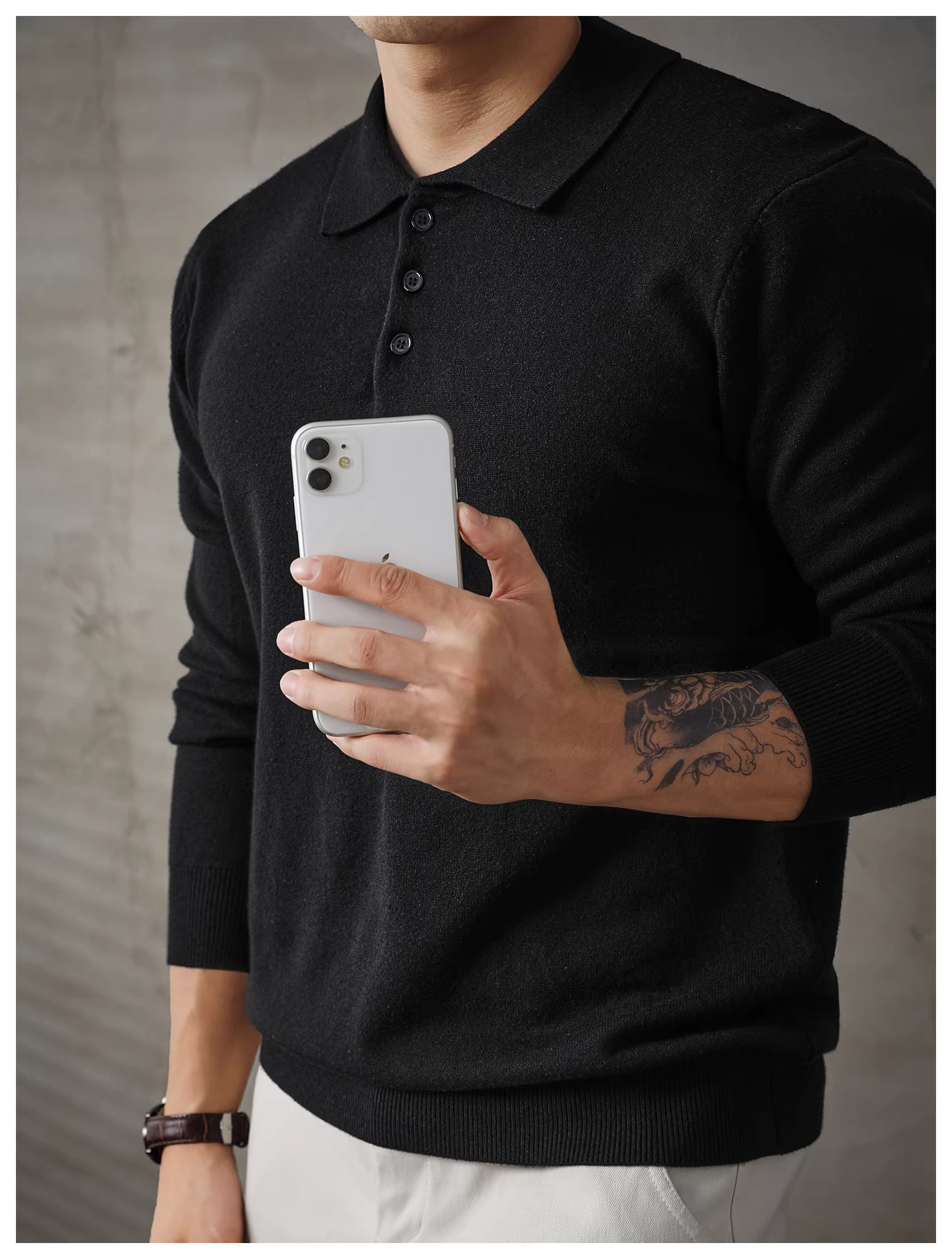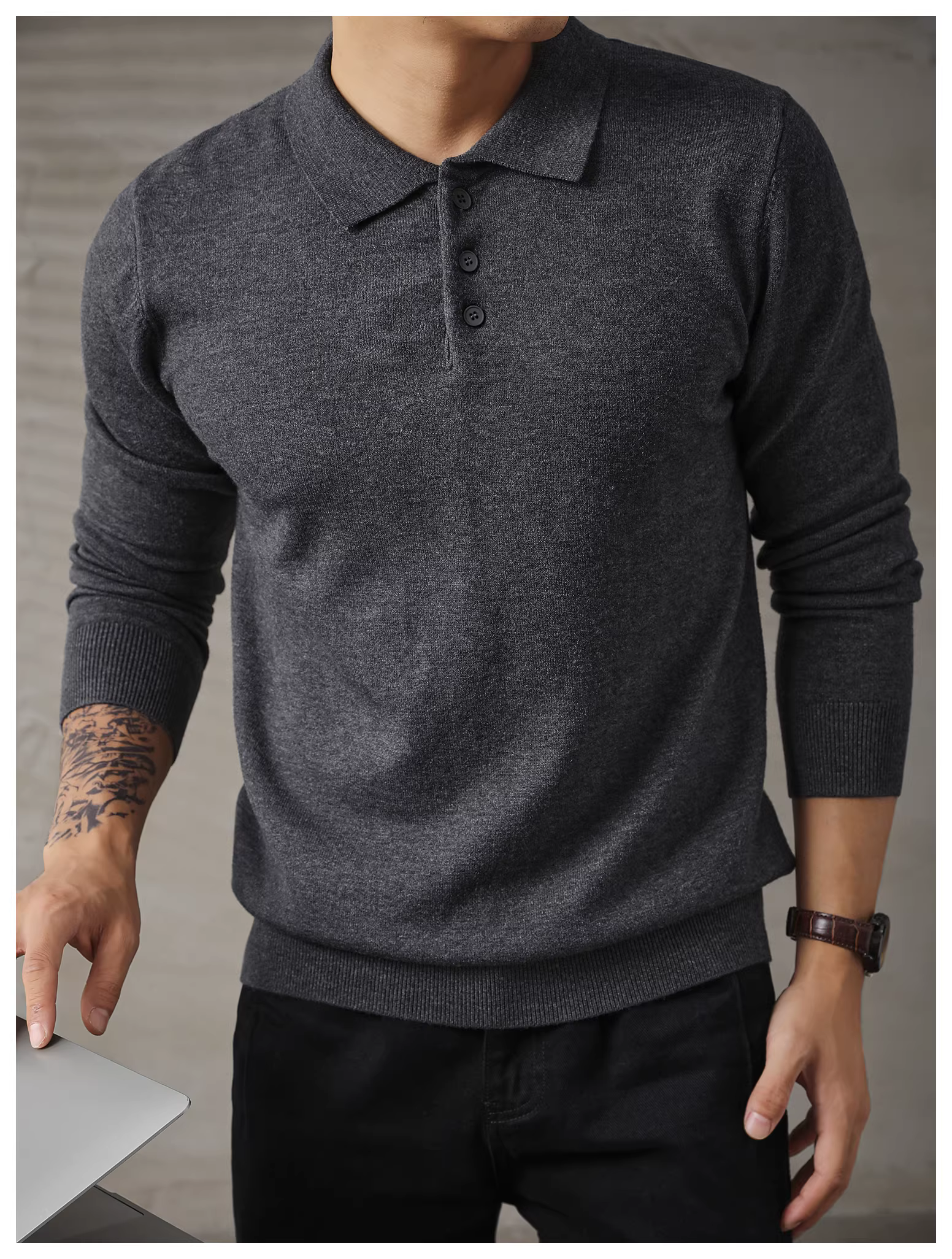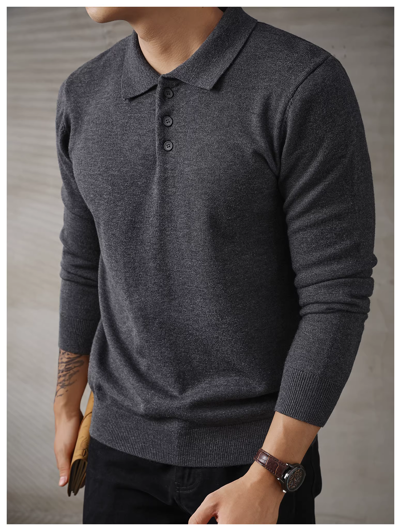 - Áo len nam dài tay phong cách đi làm đô thị LUUD, áo len mùa thu đông ấm áp, kiểu dáng ôm sát, áo POLO