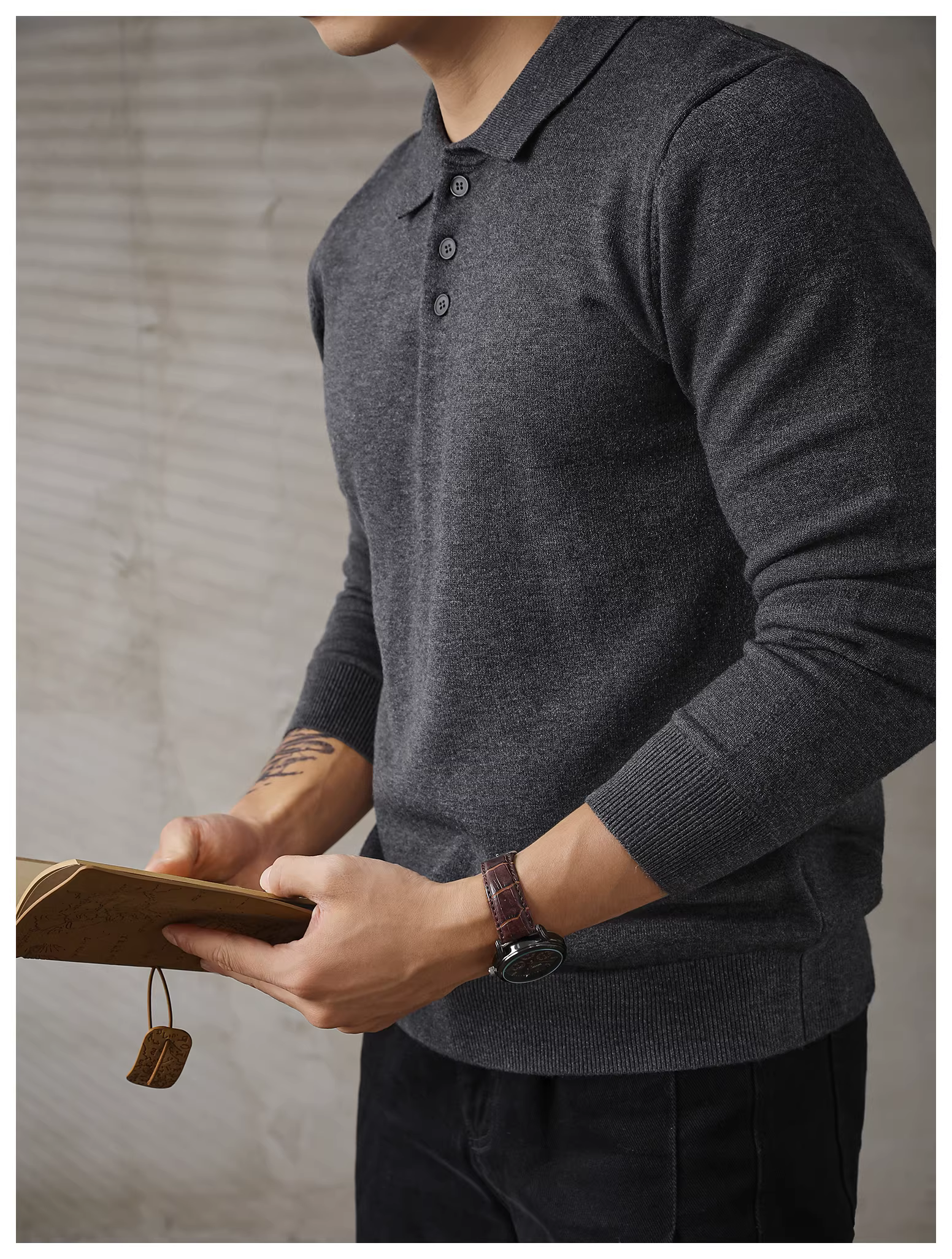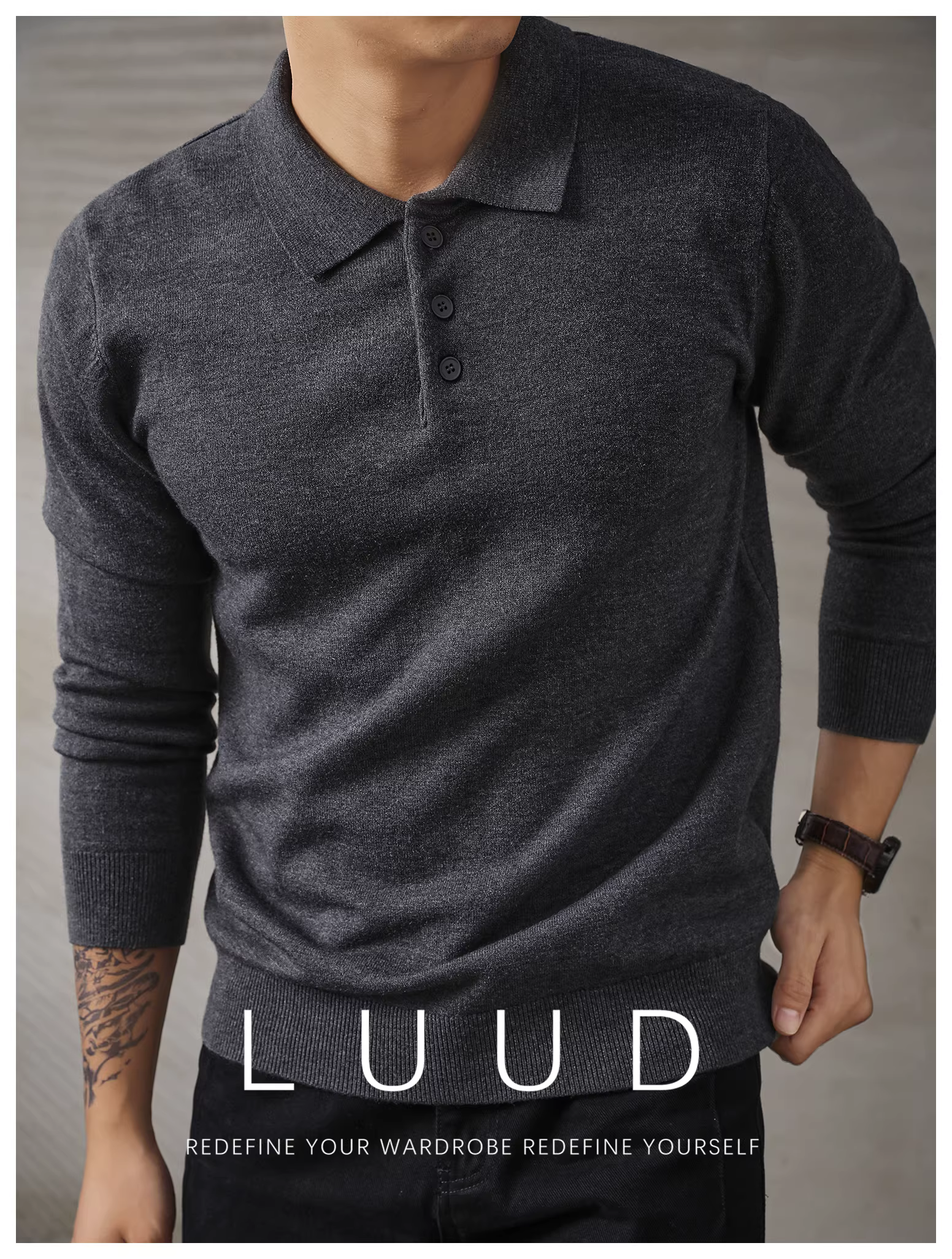Áo len nam dài tay phong cách đi làm đô thị LUUD, áo len mùa thu đông ấm áp, kiểu dáng ôm sát, áo POLO