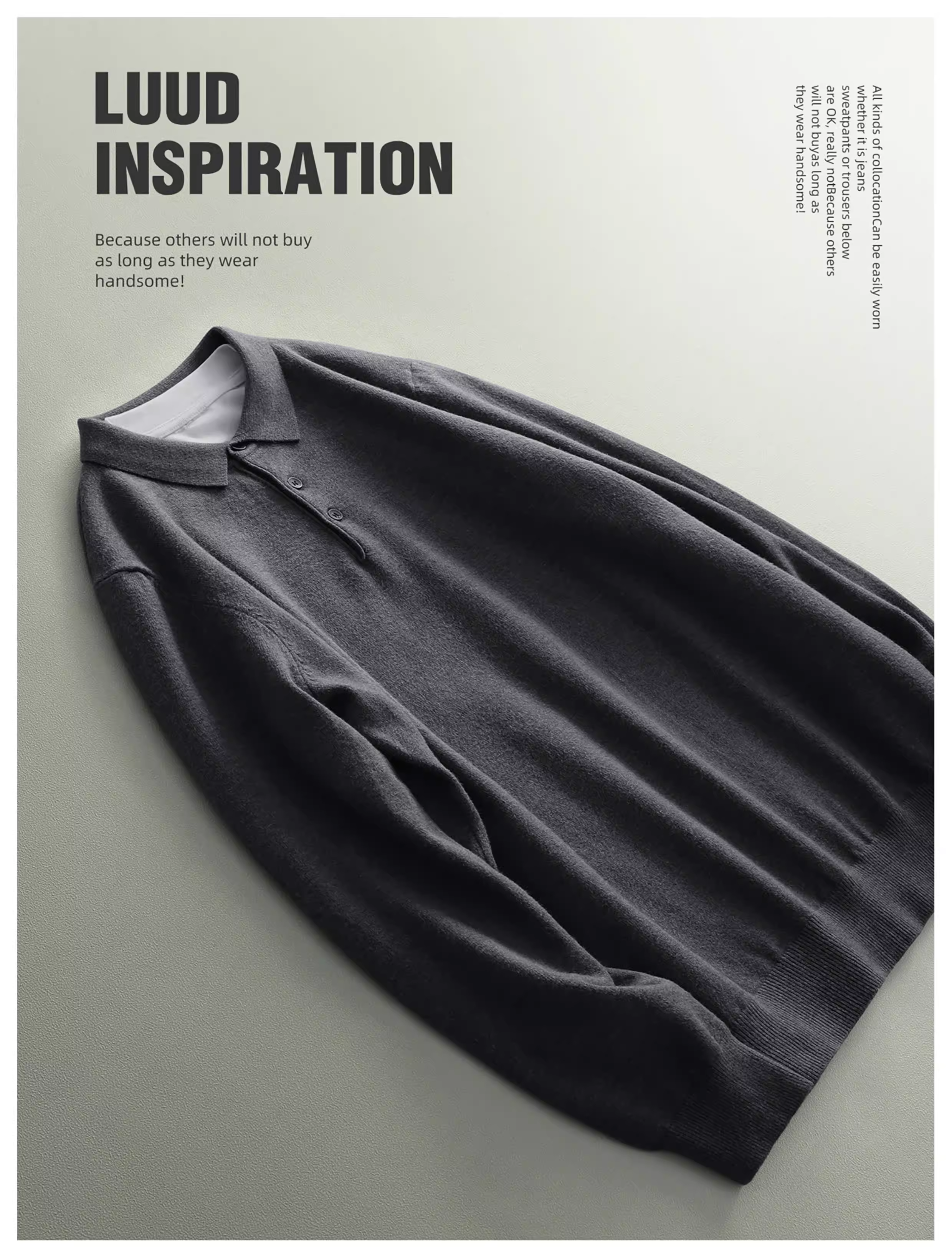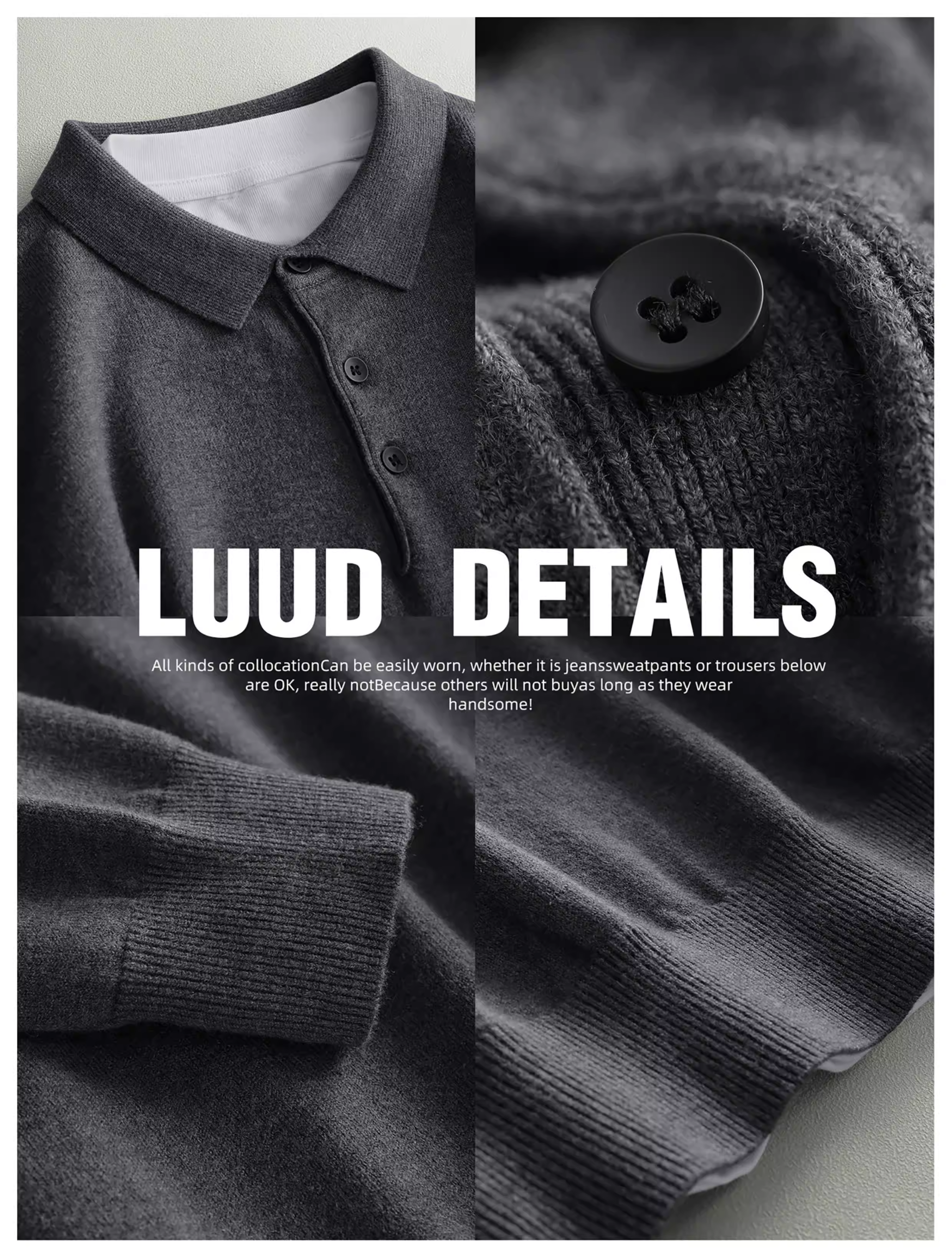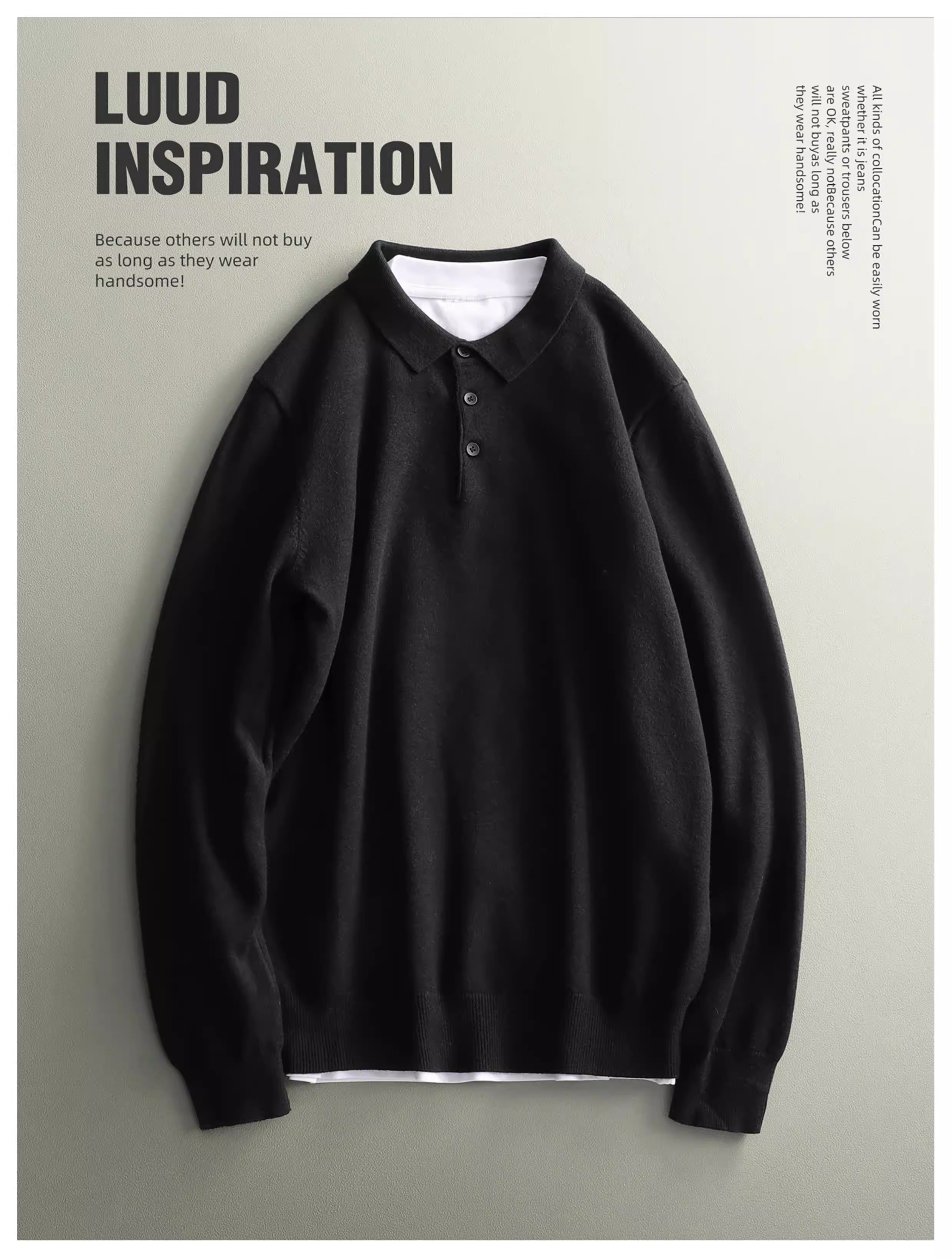 - Áo len nam LUUD mềm mại và ấm áp bằng len cừu, kiểu dáng ôm sát, tay dài, màu trơn, cổ áo chải kỹ, phong cách mùa đông