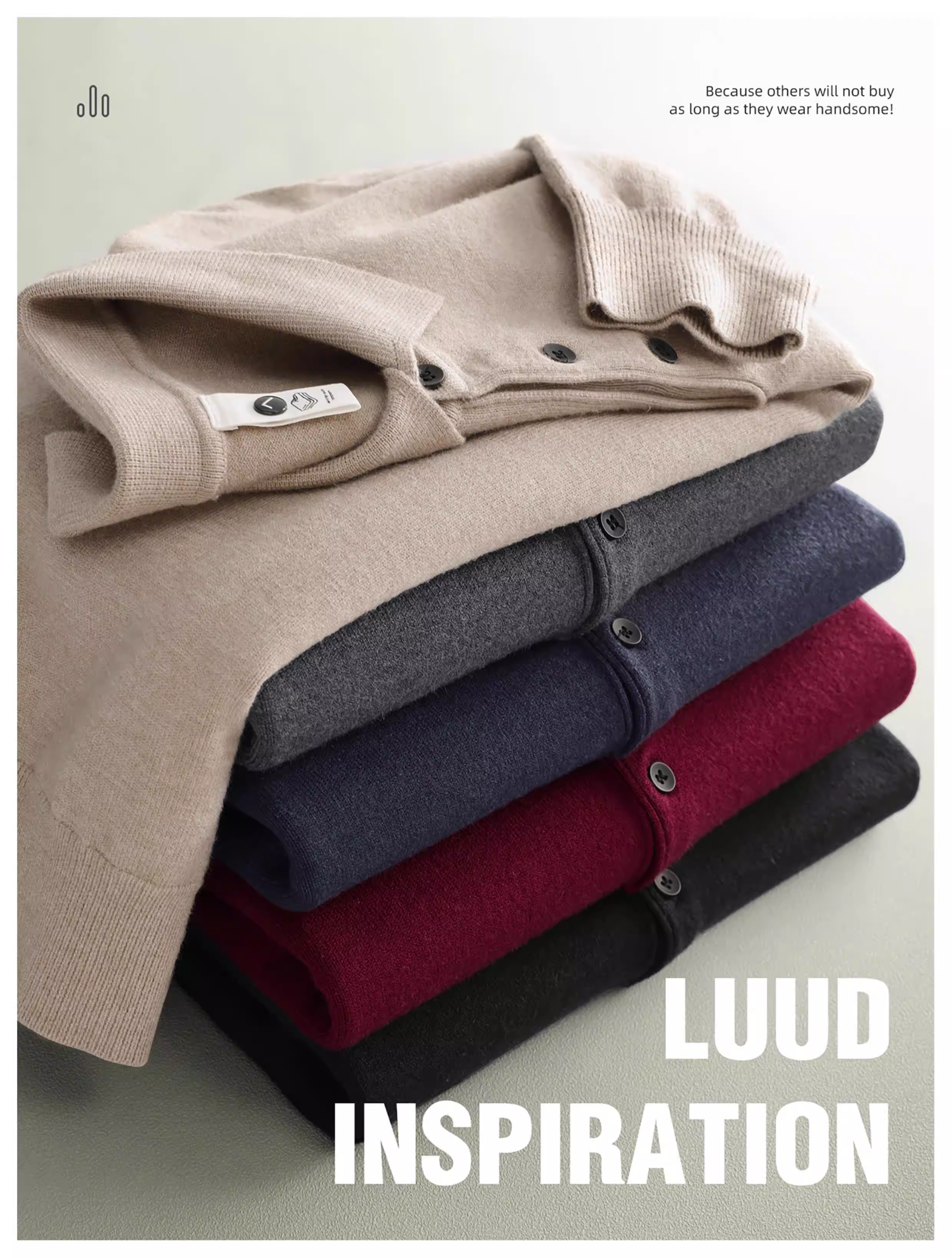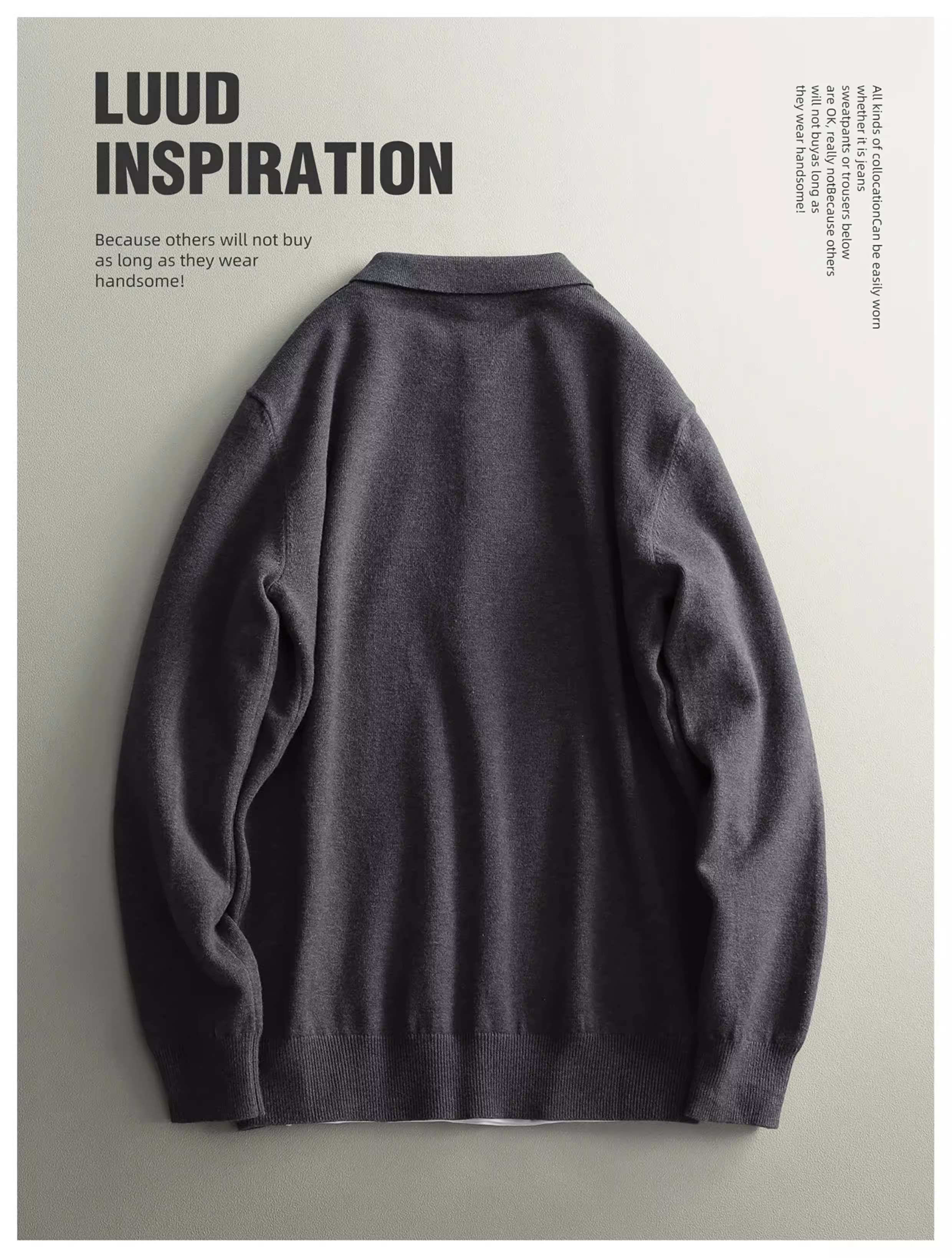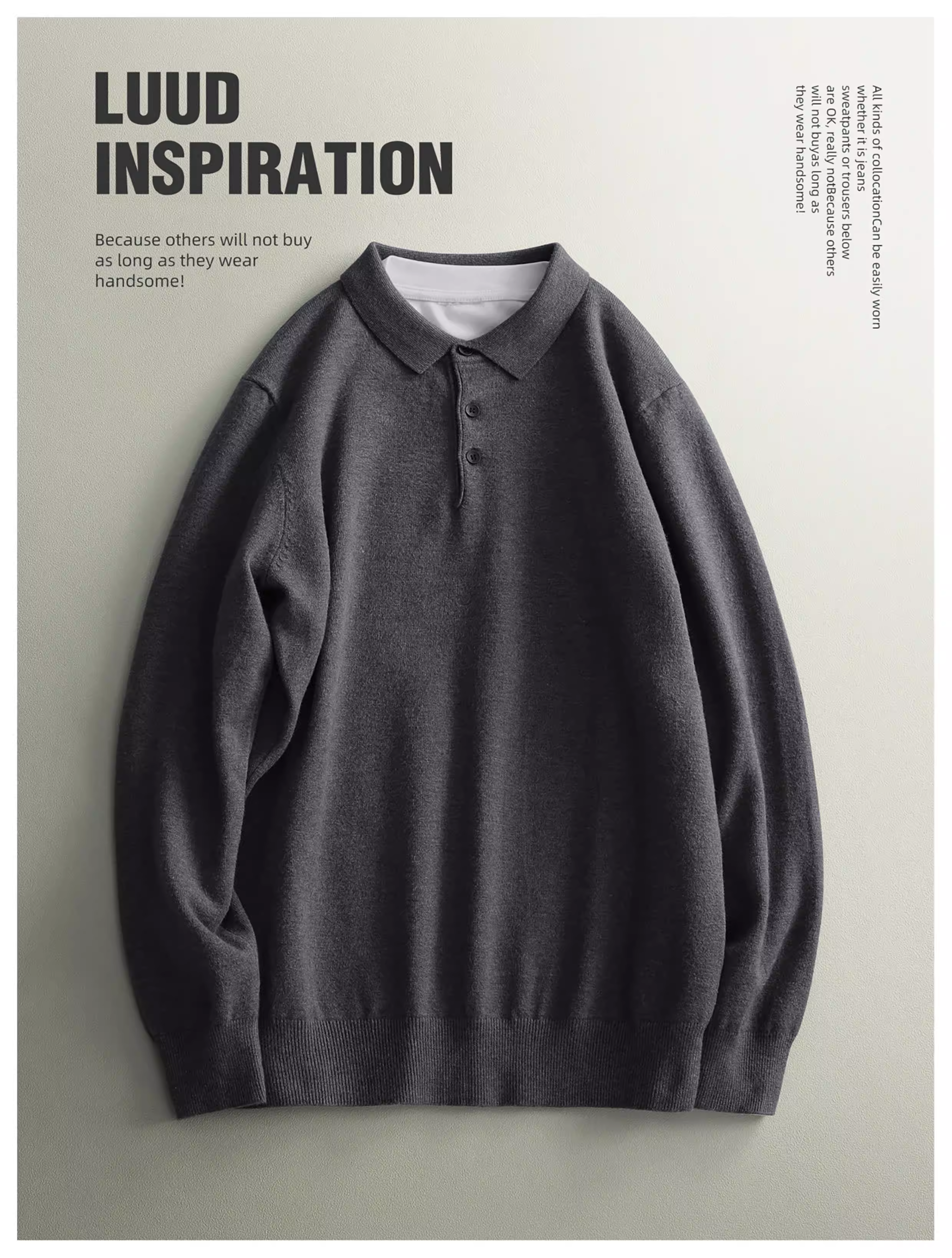 - Áo len nam LUUD mềm mại và ấm áp bằng len cừu, kiểu dáng ôm sát, tay dài, màu trơn, cổ áo chải kỹ, phong cách mùa đông